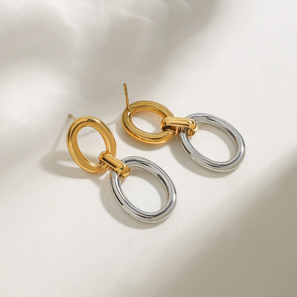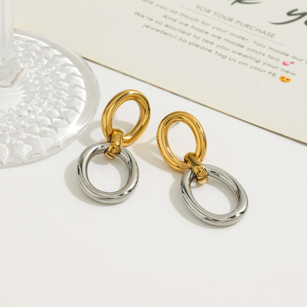 Boucle d'oreille goutte inox, Acier inoxydable 304, Placage, pour femme & deux tons & creux, Vendu par paire