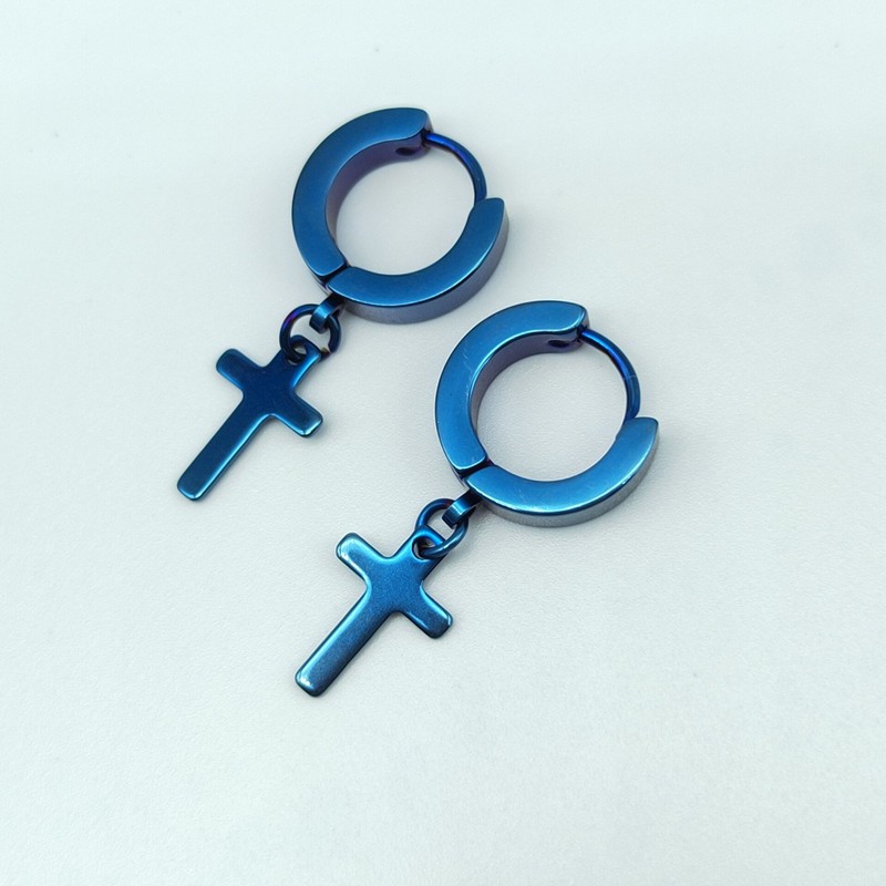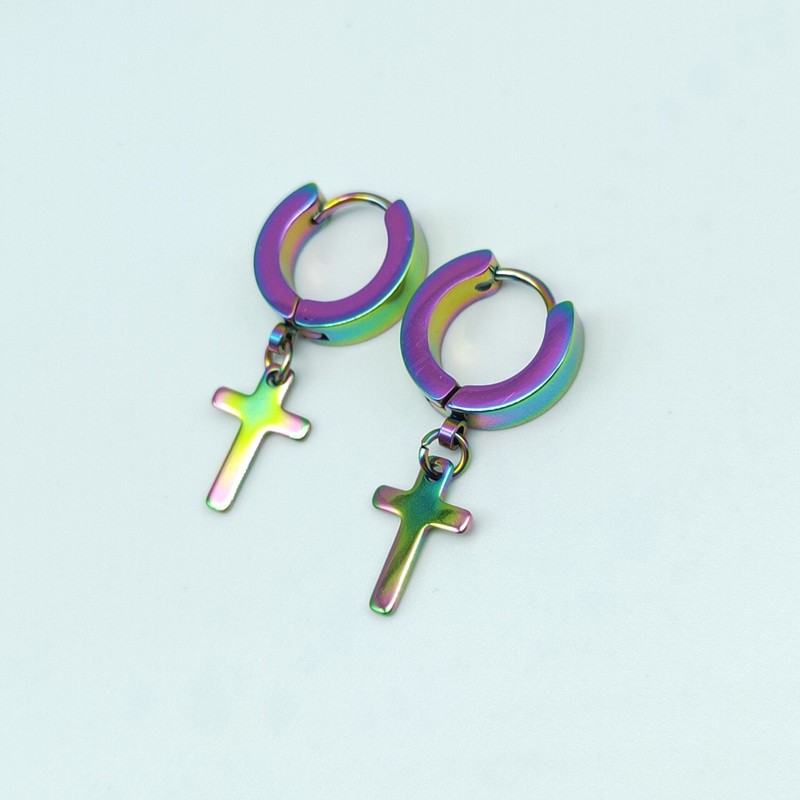 Acier titane Boucle d'oreille goutte, acier inoxydable puce boucle d'oreille, croix, Placage, unisexe, plus de couleurs à choisir, 6mm, Vendu par PC