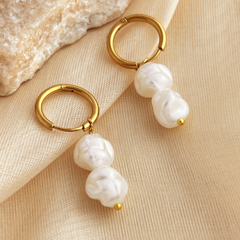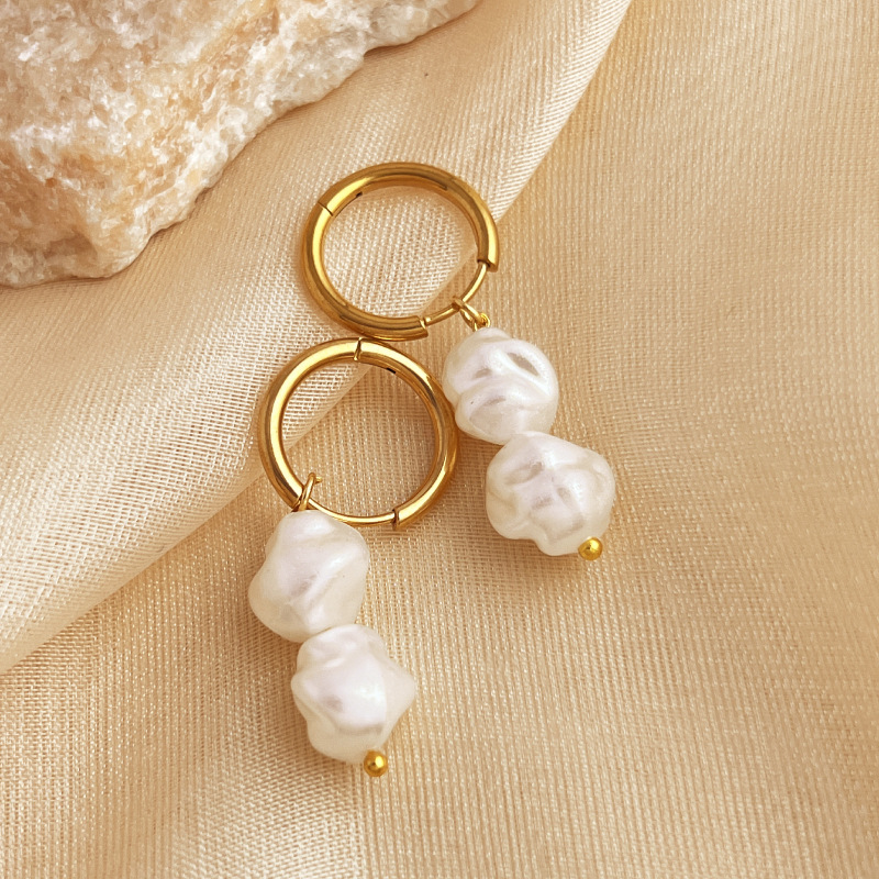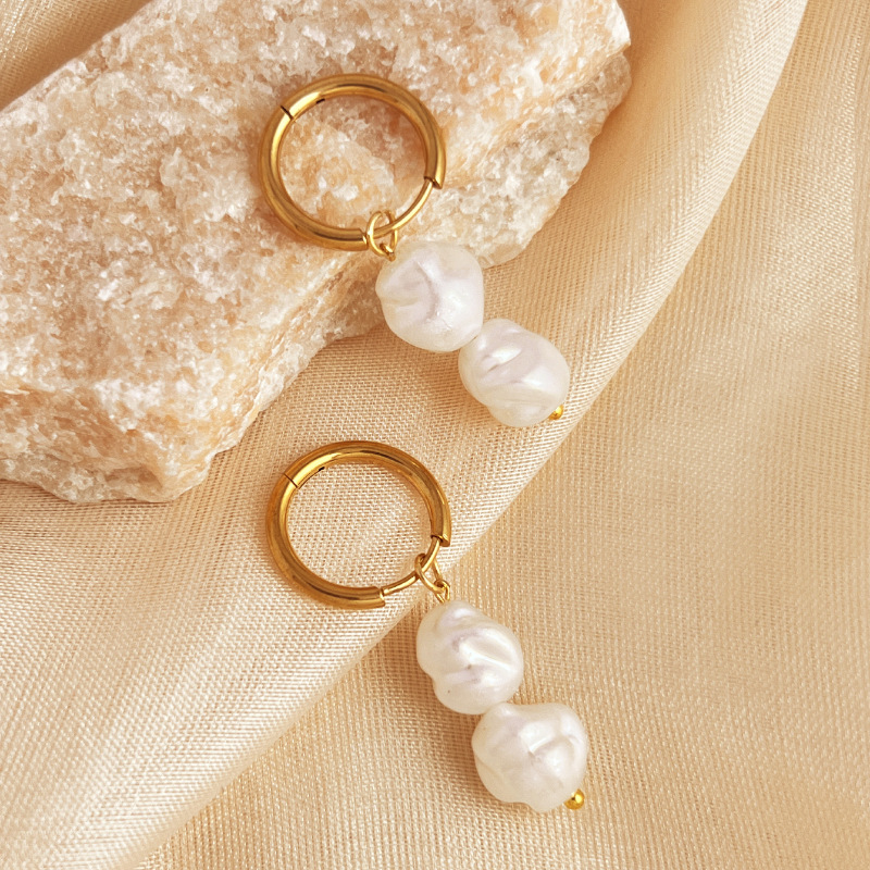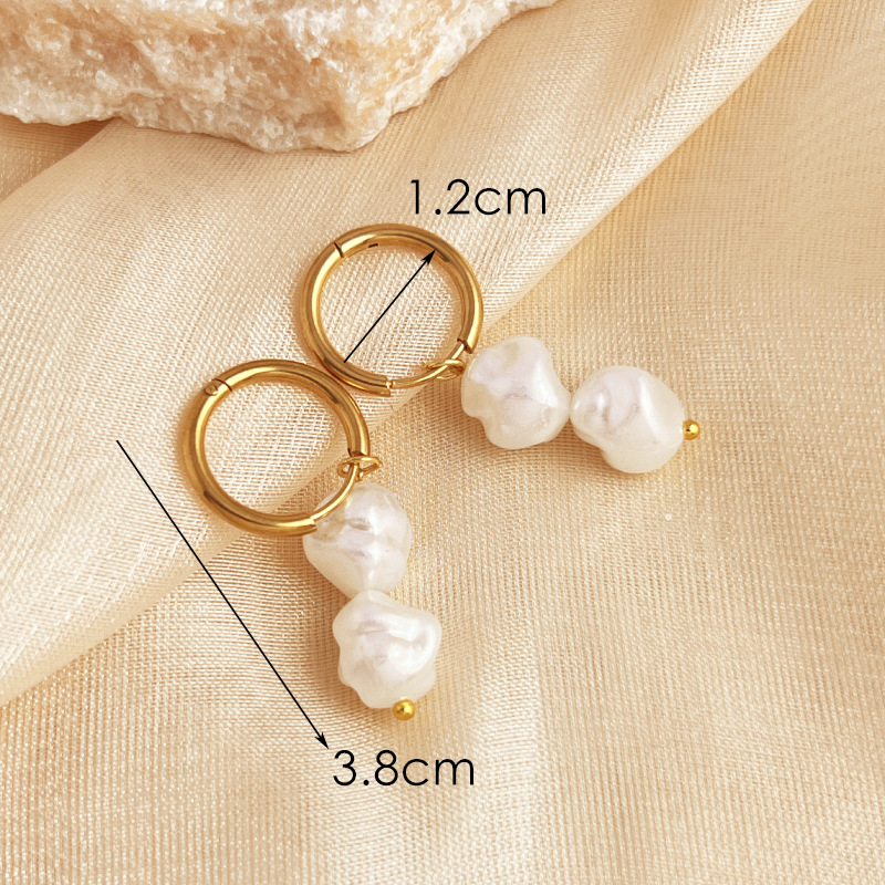 Boucle d'oreille goutte inox, Acier inoxydable 304, avec perle de plastique, Placage, bijoux de mode & pour femme, doré, Vendu par paire