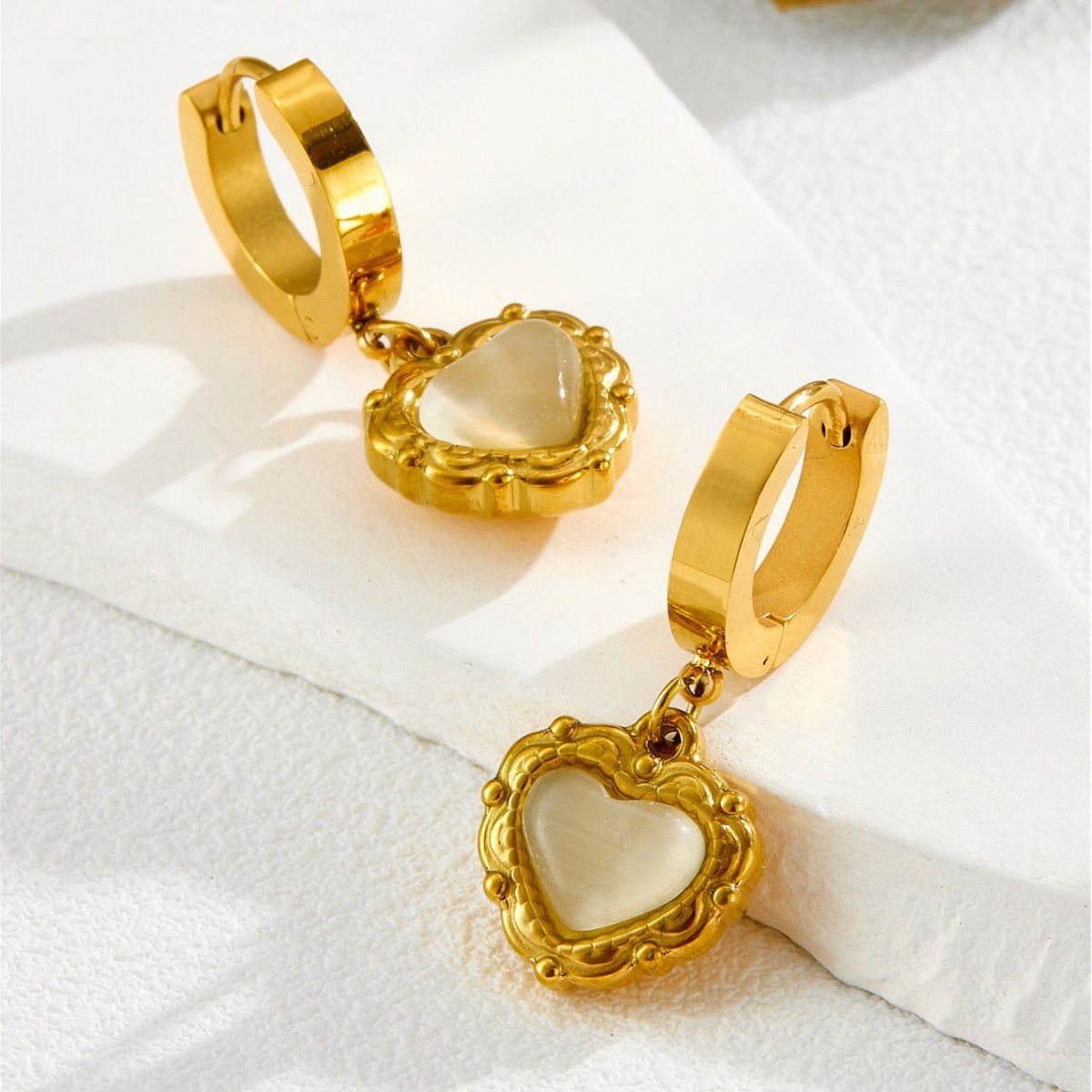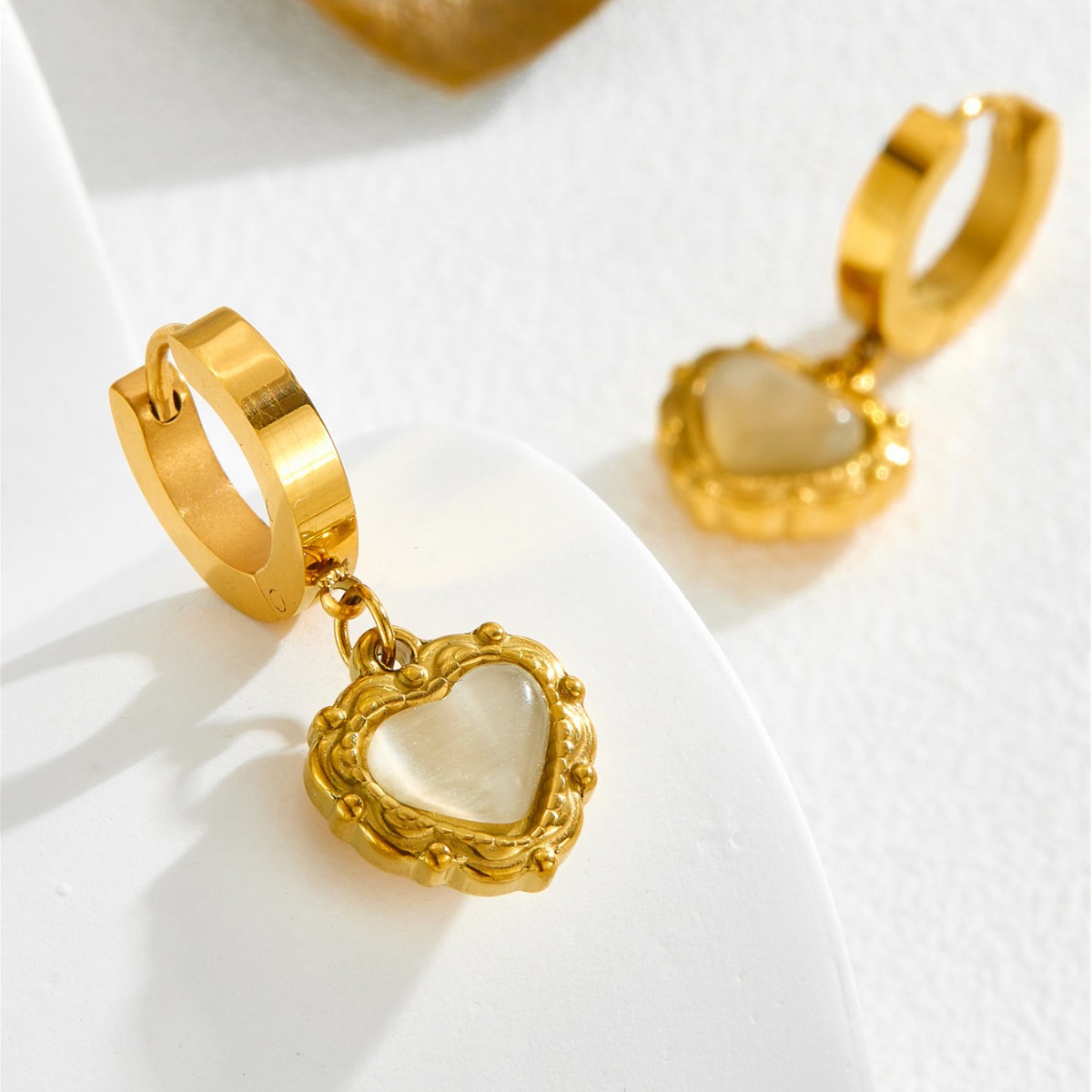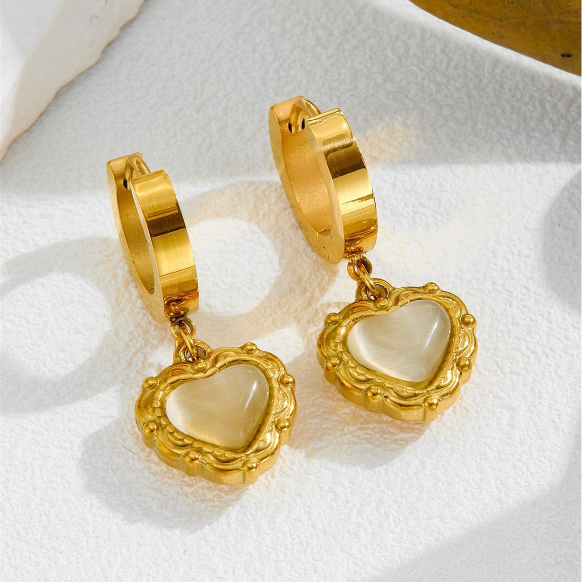 Boucle d'oreille goutte inox, Acier inoxydable 304, avec coquille blanche, coeur, Placage, bijoux de mode & pour femme, doré, 10x10x10mm, Vendu par paire