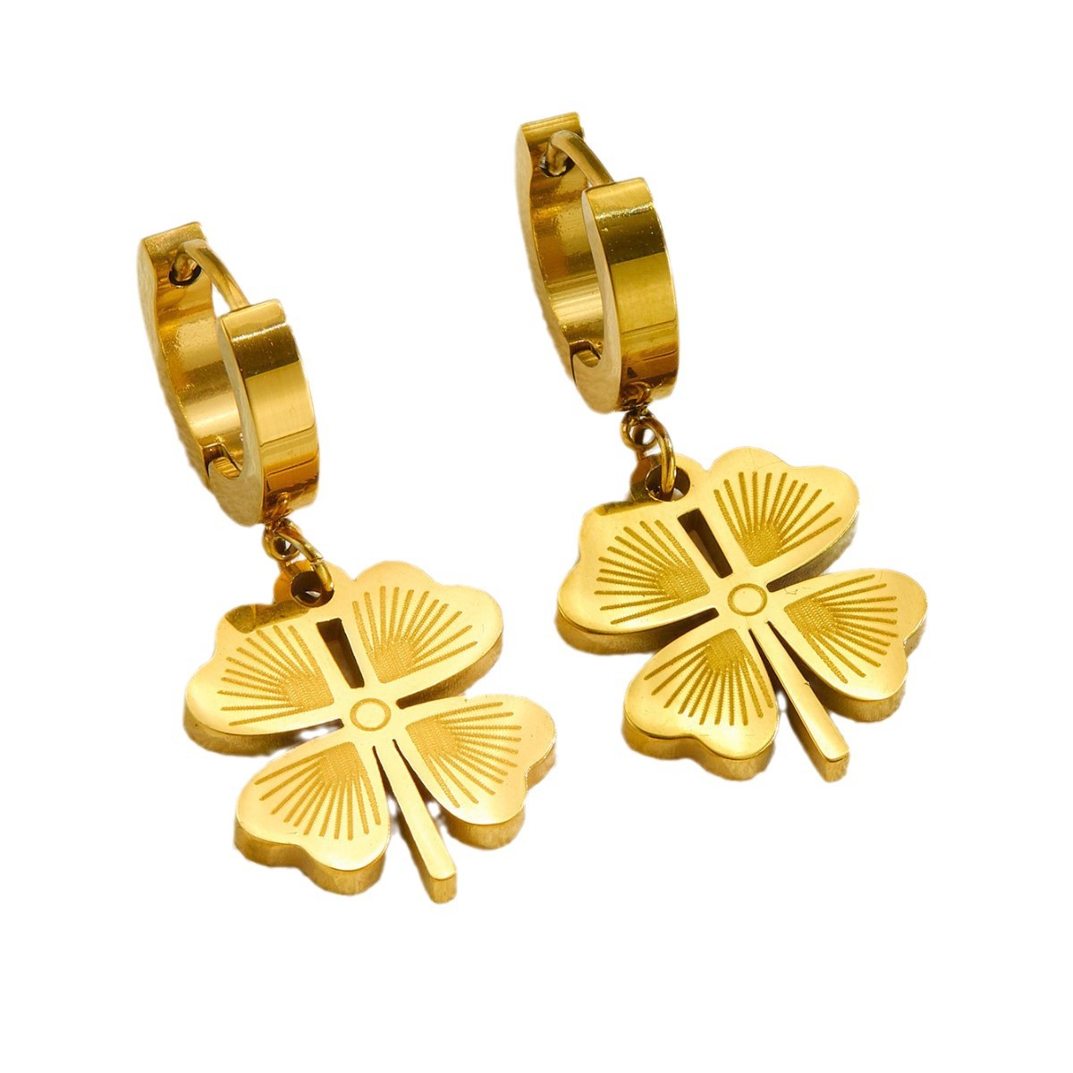 Boucle d'oreille goutte inox, Acier inoxydable 304, Trèfle à quatre feuilles, Placage, bijoux de mode & pour femme, plus de couleurs à choisir, 10x10x10mm, Vendu par paire