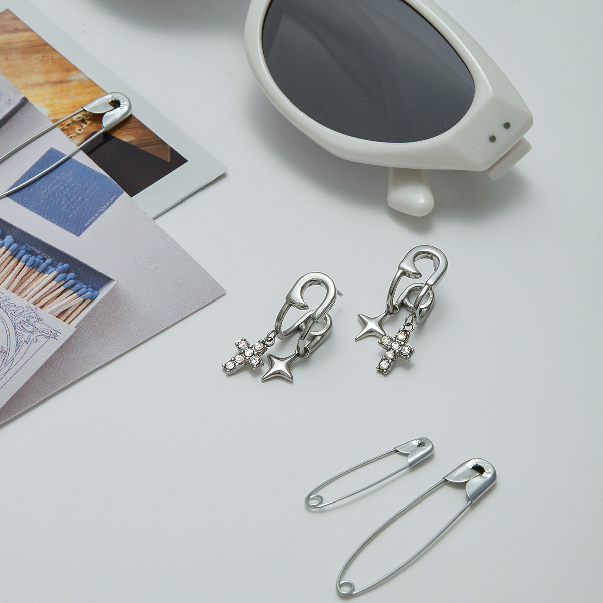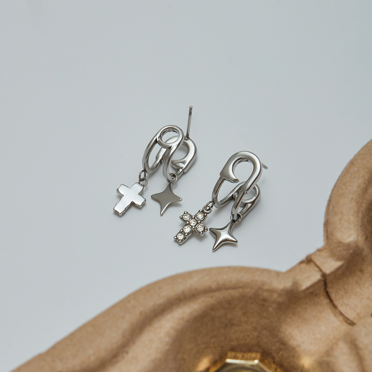Boucle d'oreille goutte inox, acier inoxydable, avec strass, couleur originale  0.8mm, Vendu par paire