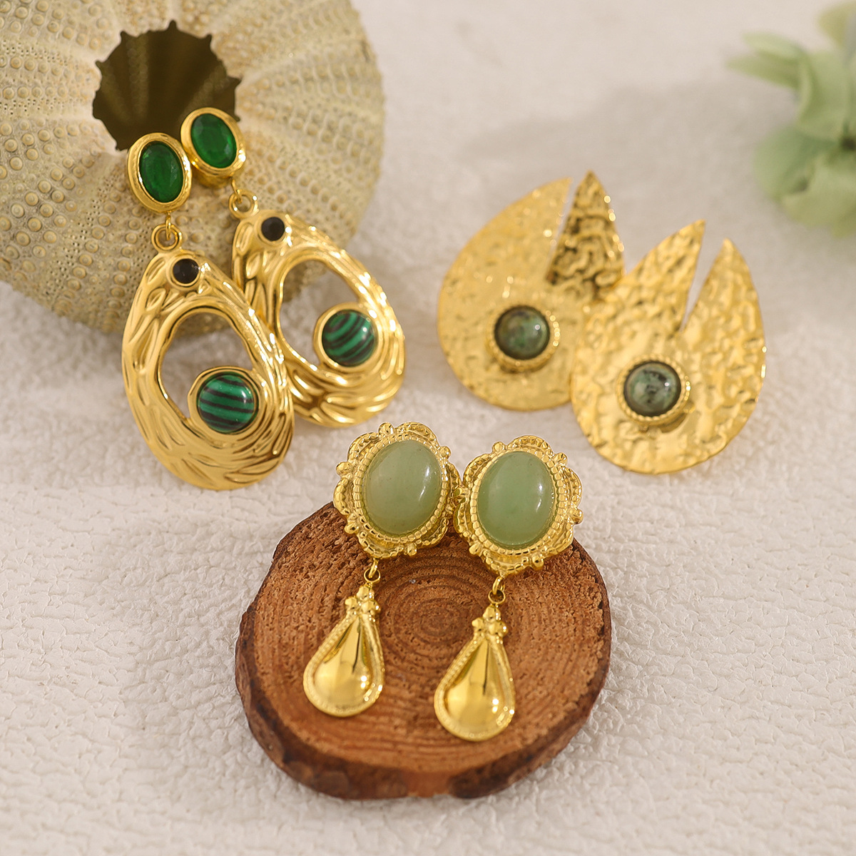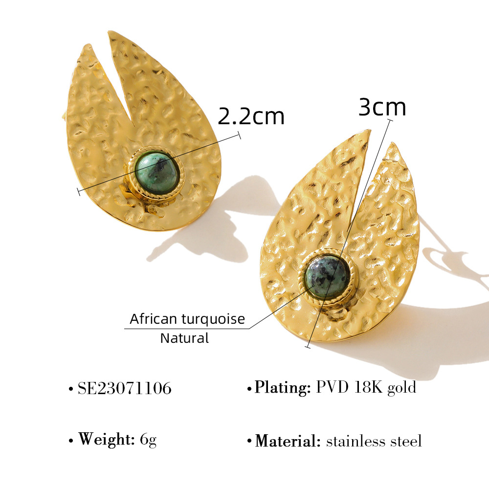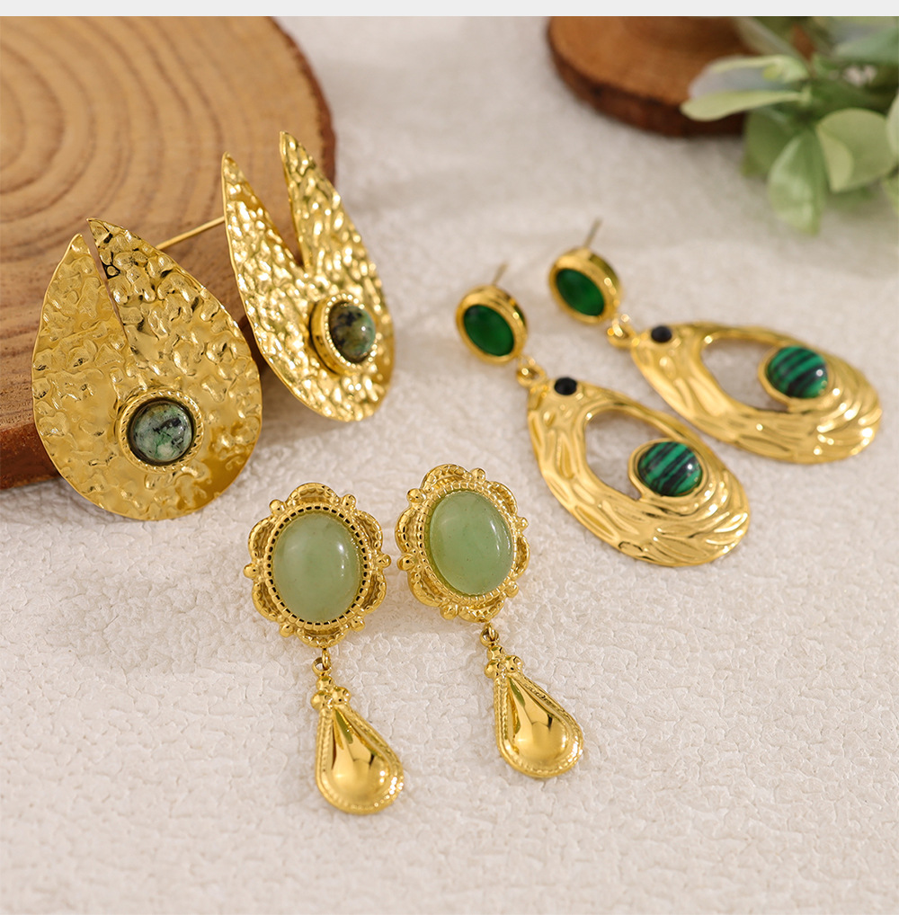 Boucle d'oreille goutte inox, Acier inoxydable 304, avec Pierre naturelle, Plaqué or 18K, bijoux de mode & styles différents pour le choix & pour femme, Vendu par paire