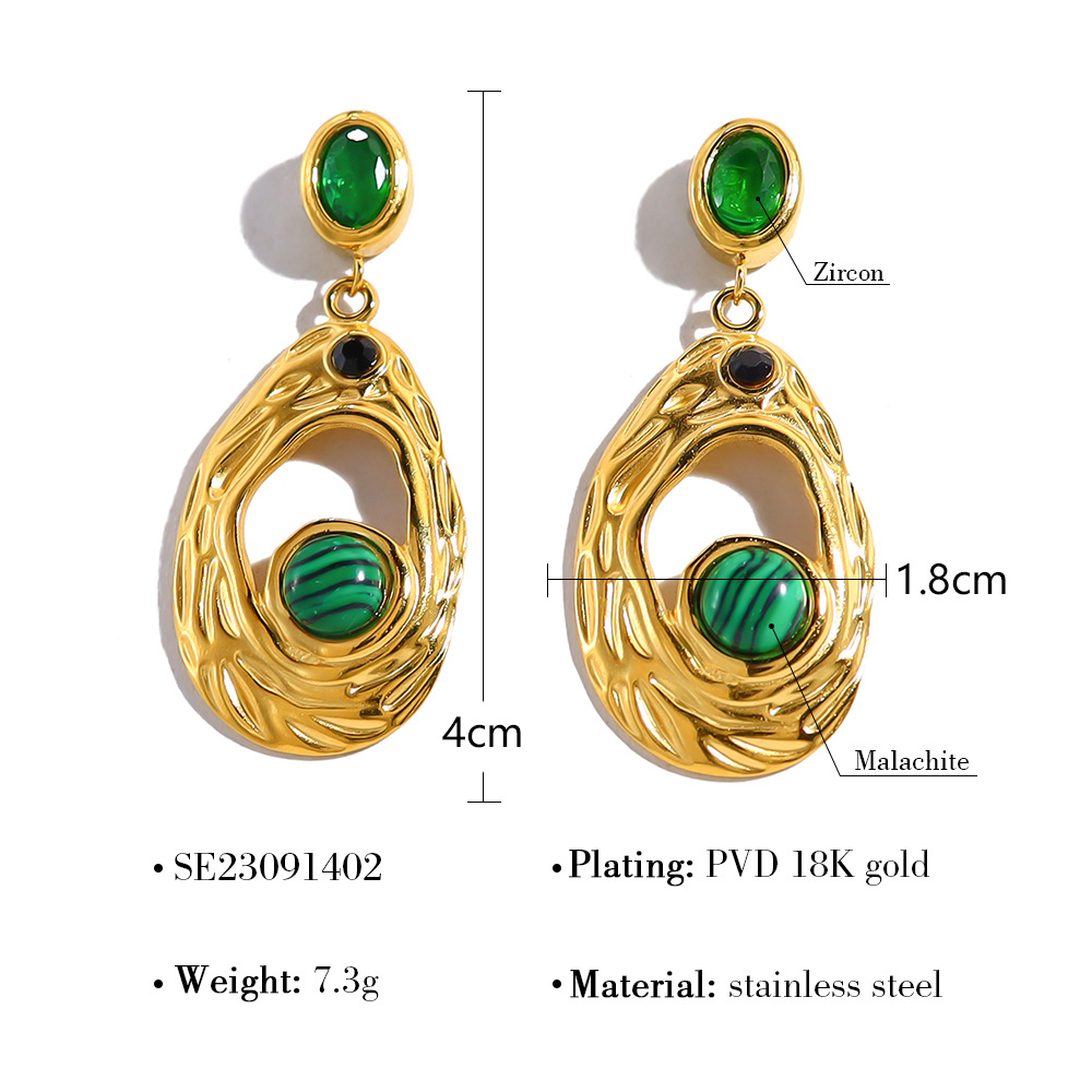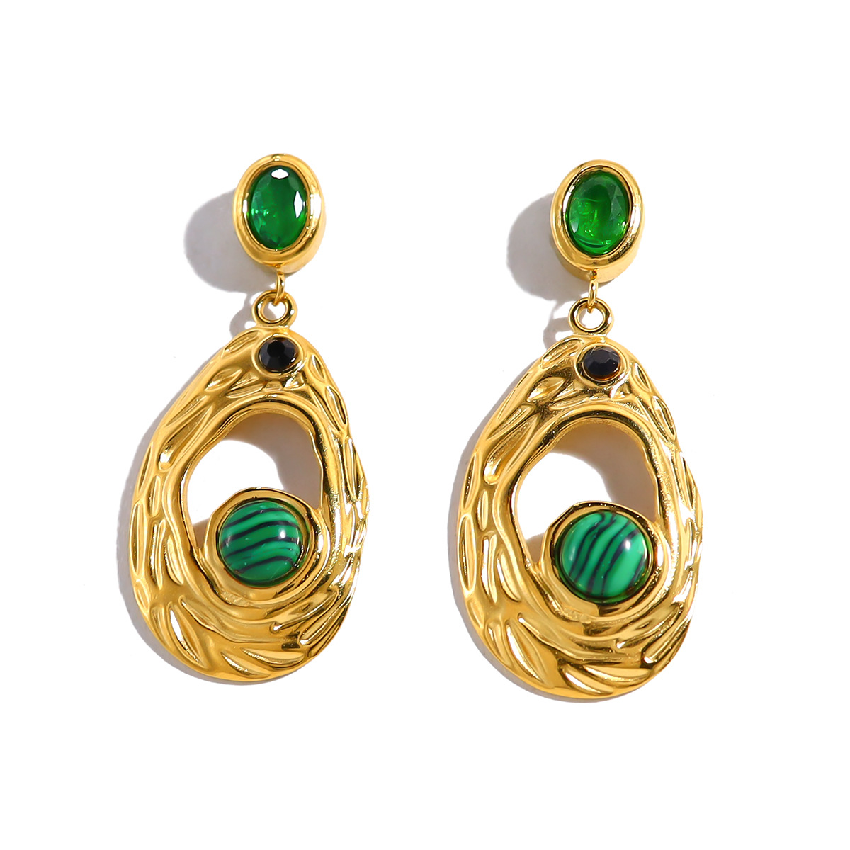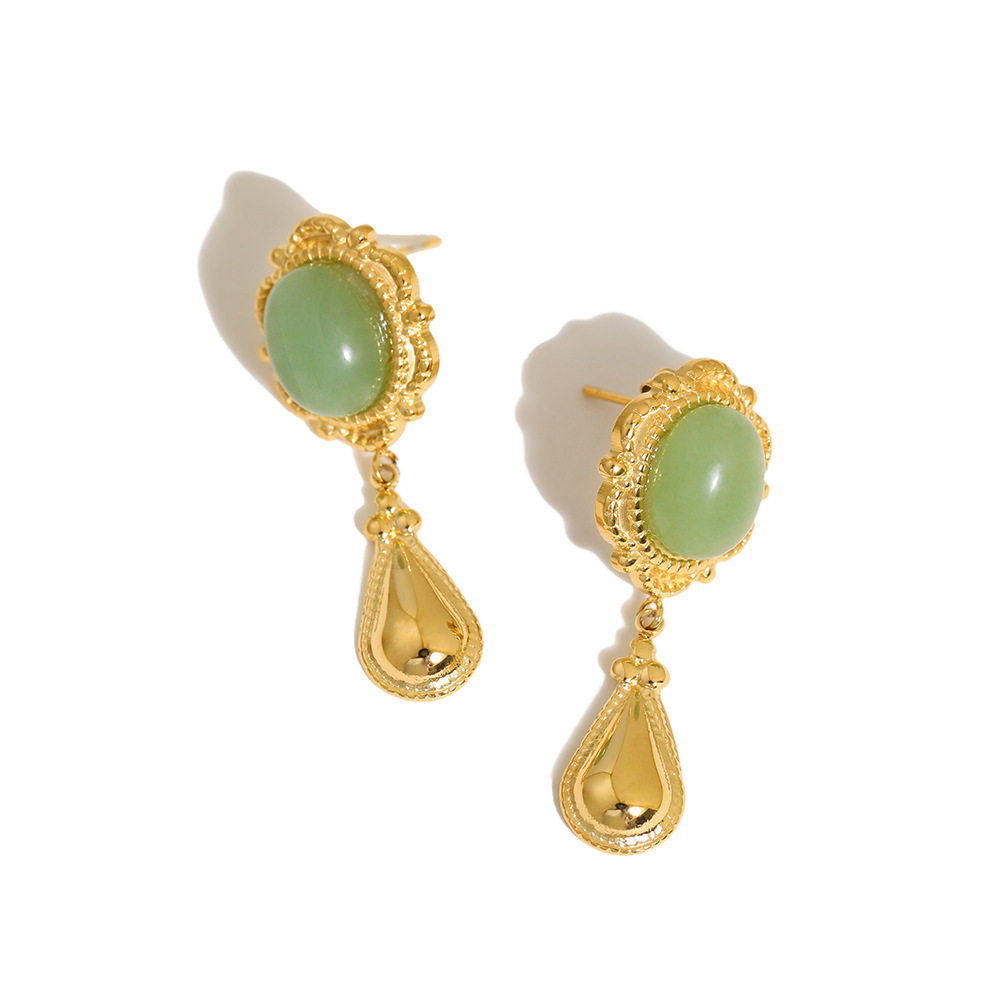 Boucle d'oreille goutte inox, Acier inoxydable 304, avec Pierre naturelle, Plaqué or 18K, bijoux de mode & styles différents pour le choix & pour femme, Vendu par paire