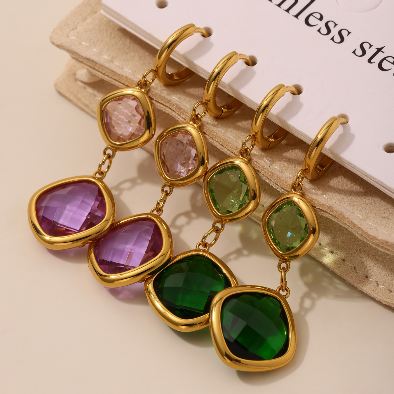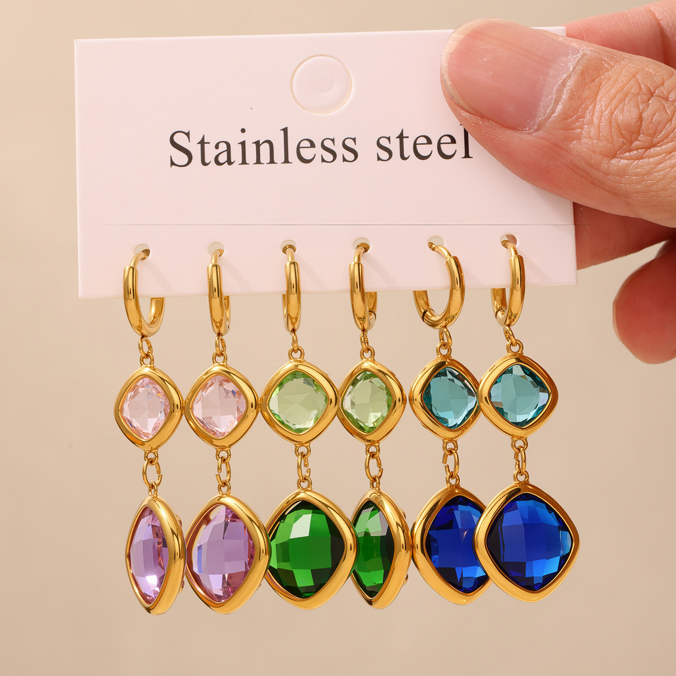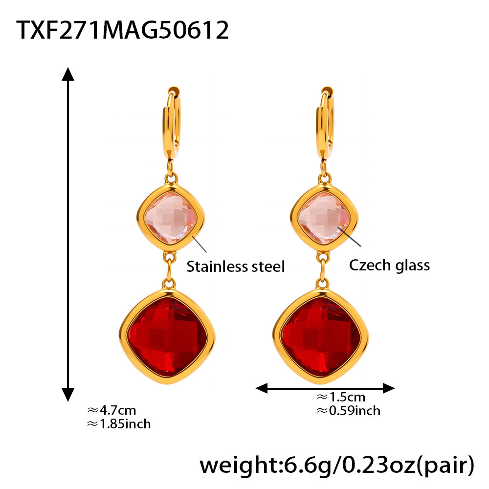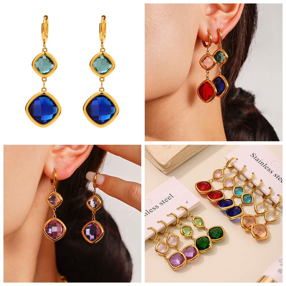 Boucle d'oreille goutte inox, acier inoxydable, acier inoxydable boucle d'oreille crochet, rectangle, pour femme & avec strass, plus de couleurs à choisir Environ 2.6 pouce, Vendu par paire