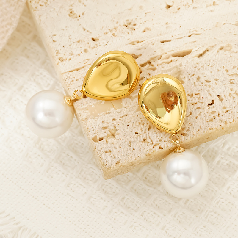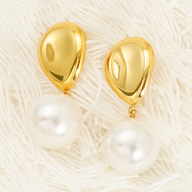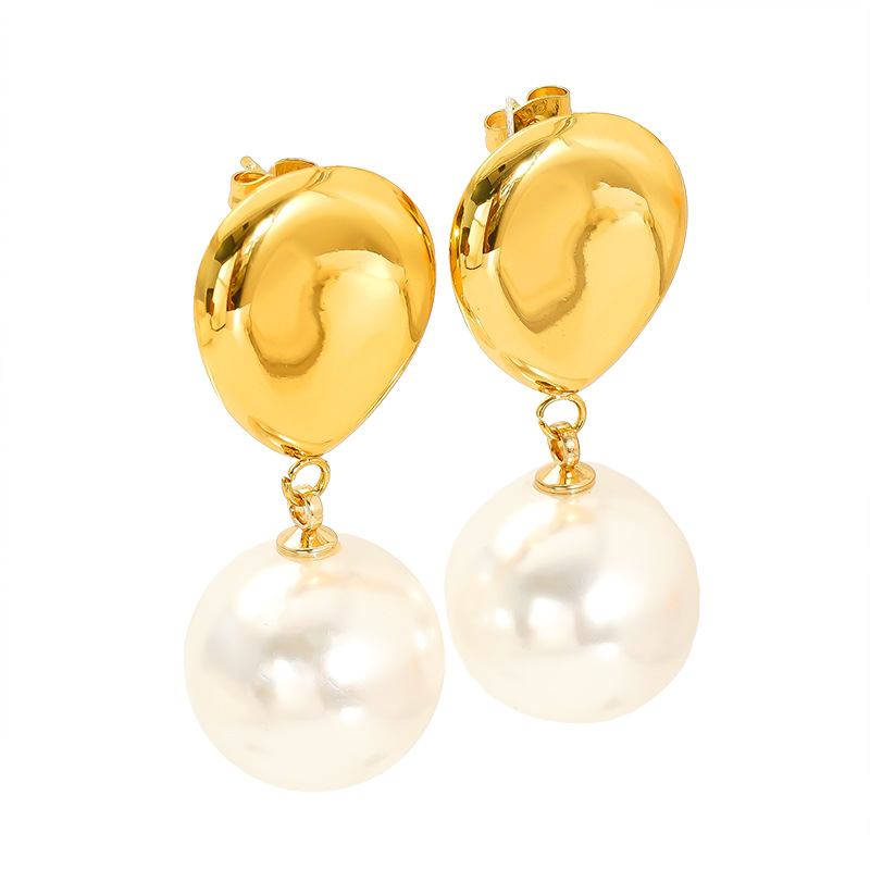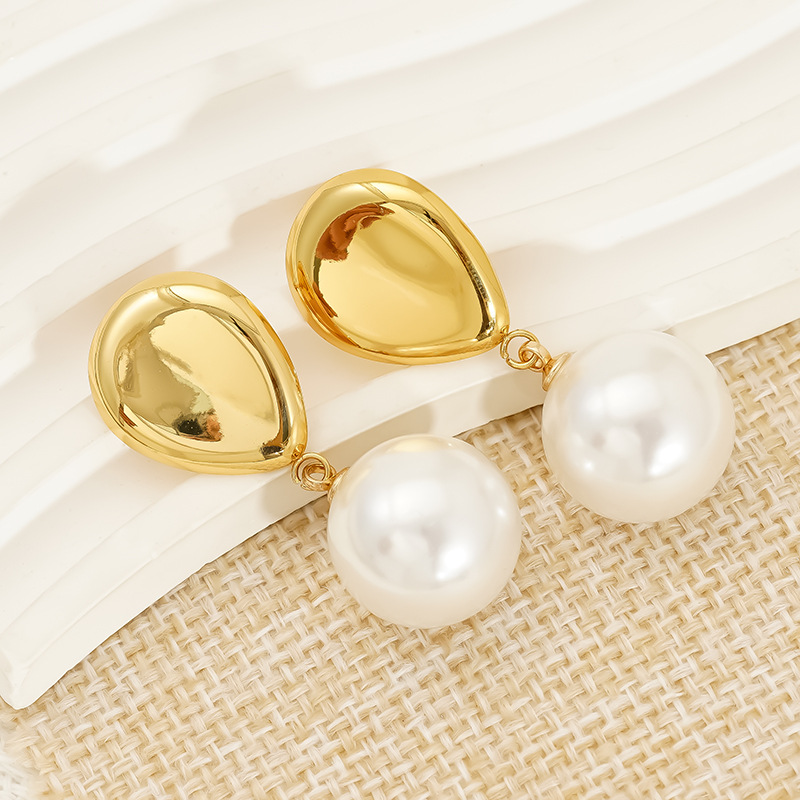 Boucle d'oreille goutte inox, Acier inoxydable 304, avec perle de plastique, Plaqué or 18K, bijoux de mode & pour femme, plus de couleurs à choisir, Vendu par paire
