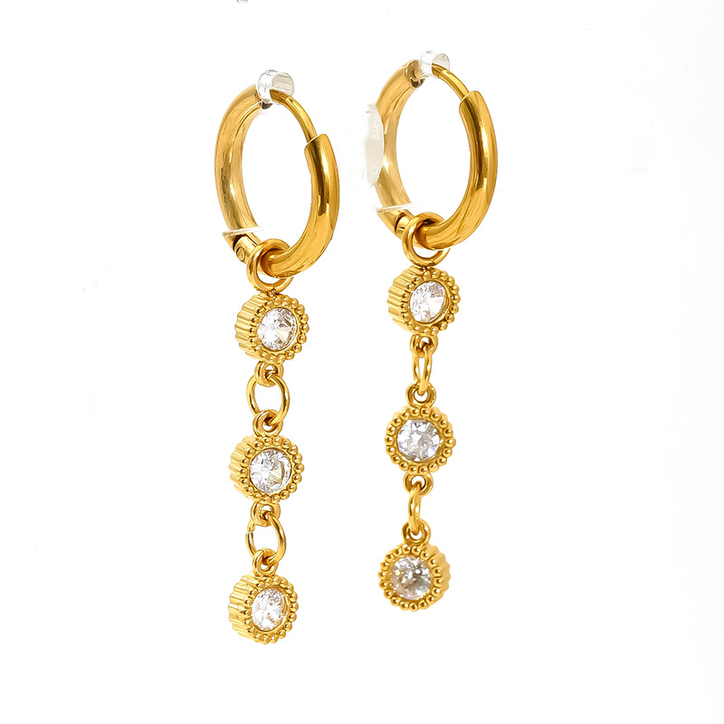 Boucle d'oreille goutte inox, Acier inoxydable 304, Plaqué or 18K, bijoux de mode & pavé de micro zircon & pour femme, plus de couleurs à choisir, Vendu par paire