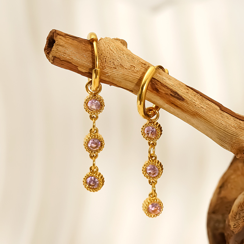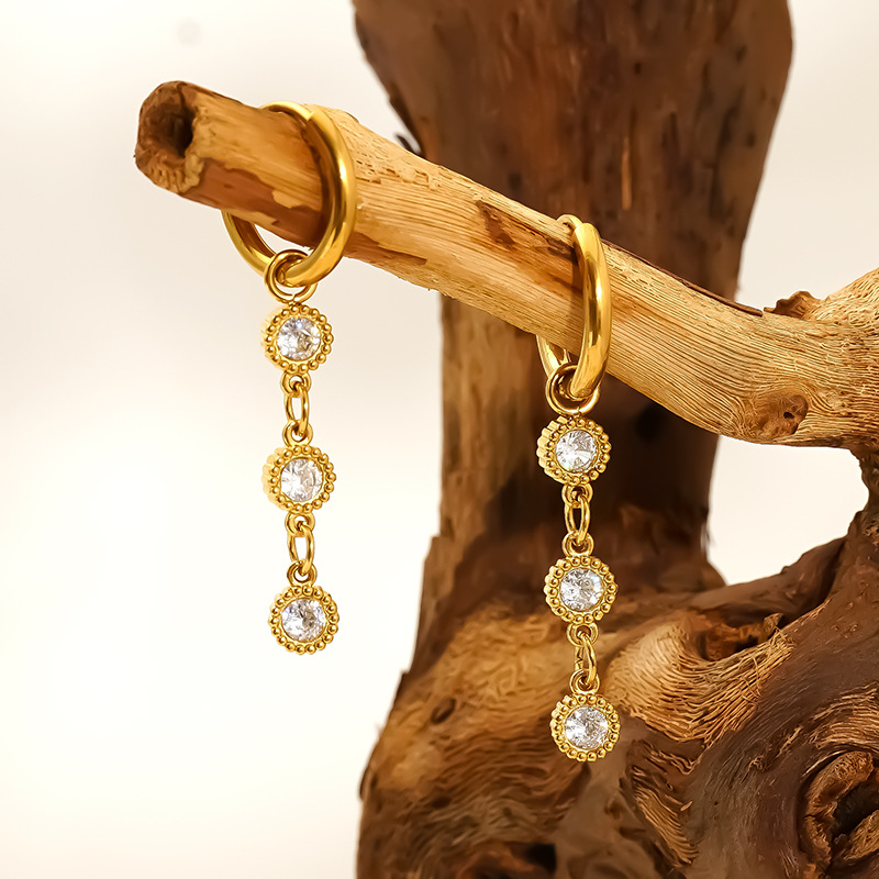 Boucle d'oreille goutte inox, acier inoxydable, avec strass, couleur originale  0.8mm, Vendu par paire