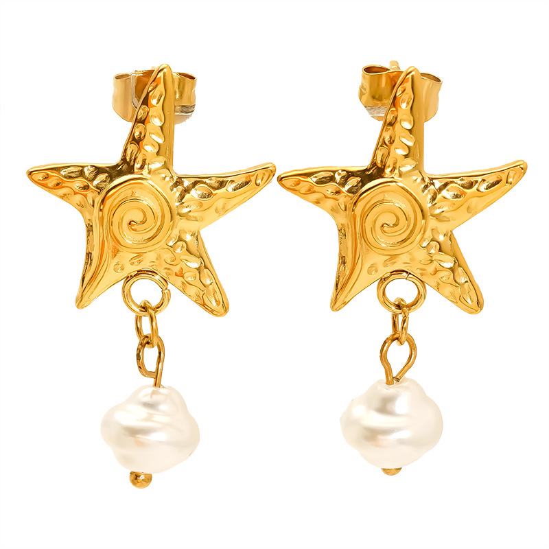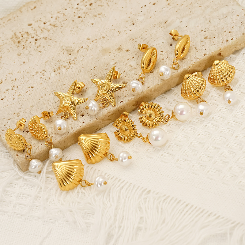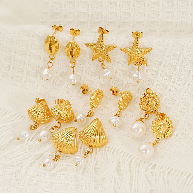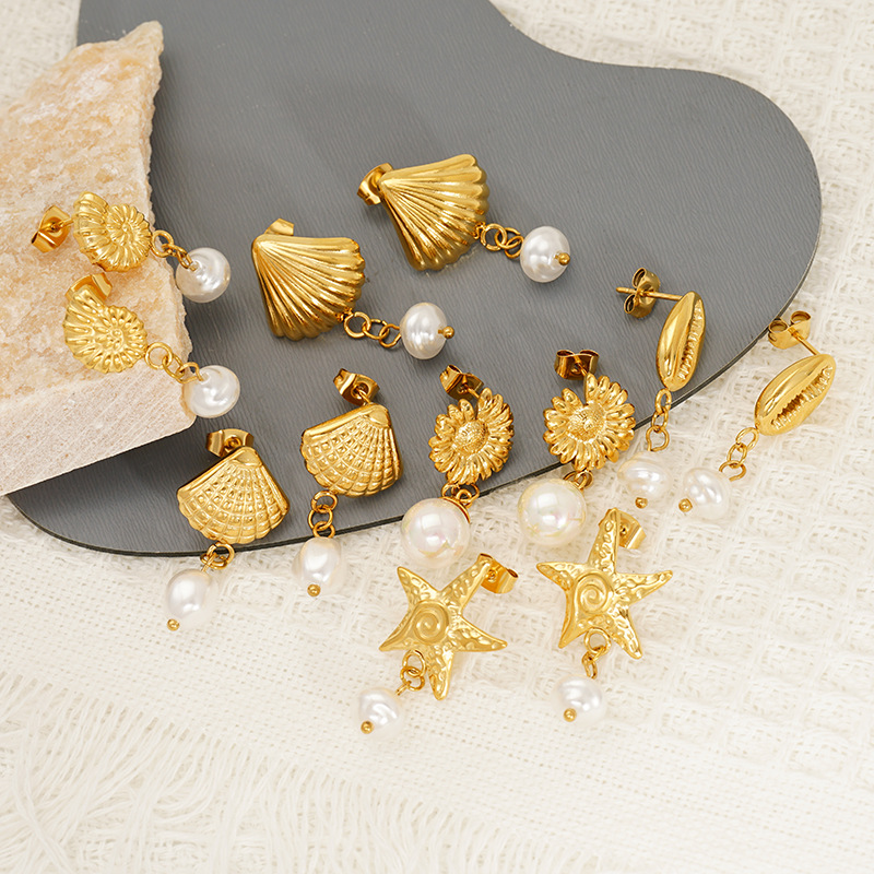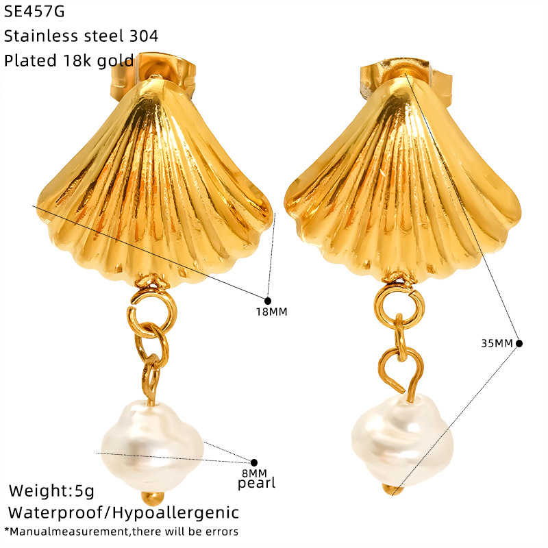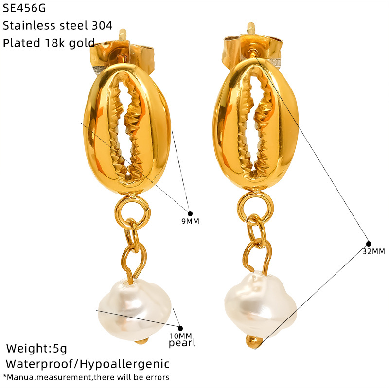 Boucle d'oreille goutte inox, Acier inoxydable 304, avec perle de plastique, Plaqué or 18K, bijoux de mode & styles différents pour le choix & pour femme, Vendu par paire