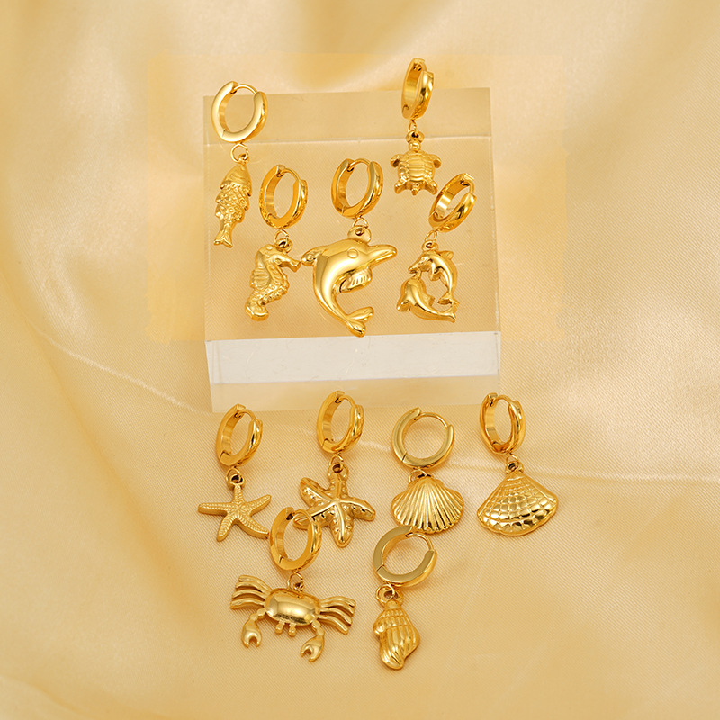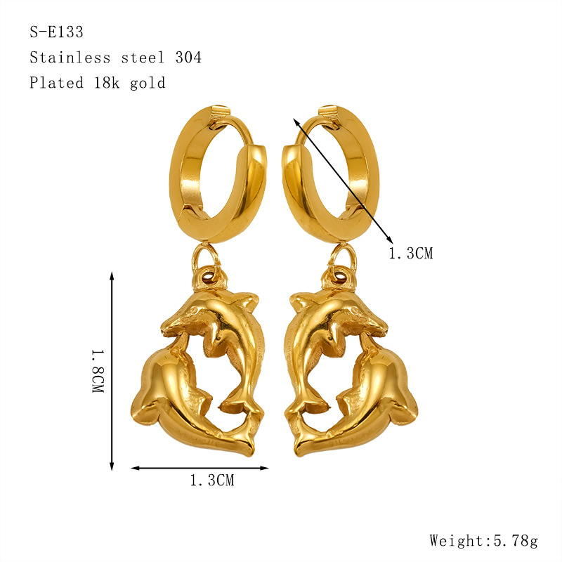 Boucle d'oreille goutte inox, Acier inoxydable 304, Plaqué or 18K, bijoux de mode & styles différents pour le choix & pour femme, Vendu par paire