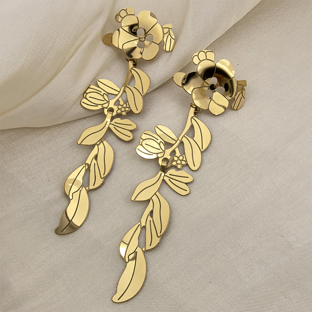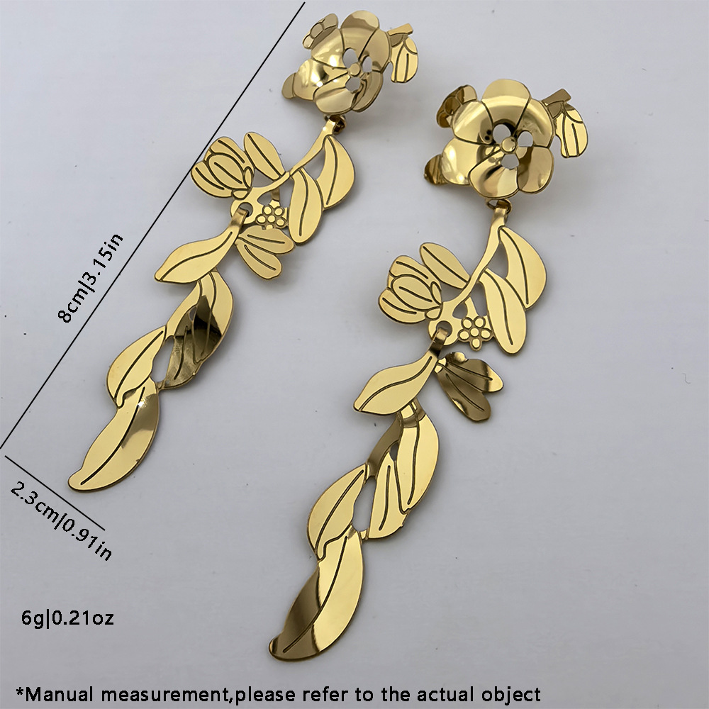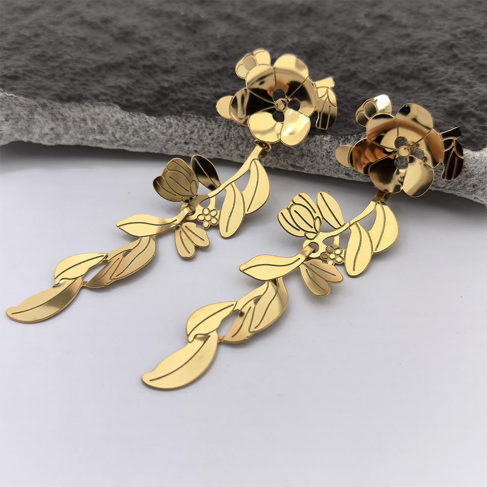 Boucle d'oreille goutte inox, Acier inoxydable 304, fleur, Plaqué d'or 18K, bijoux de mode & pour femme & creux, Vendu par paire