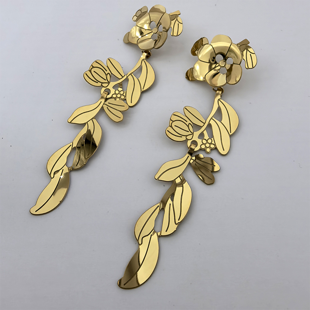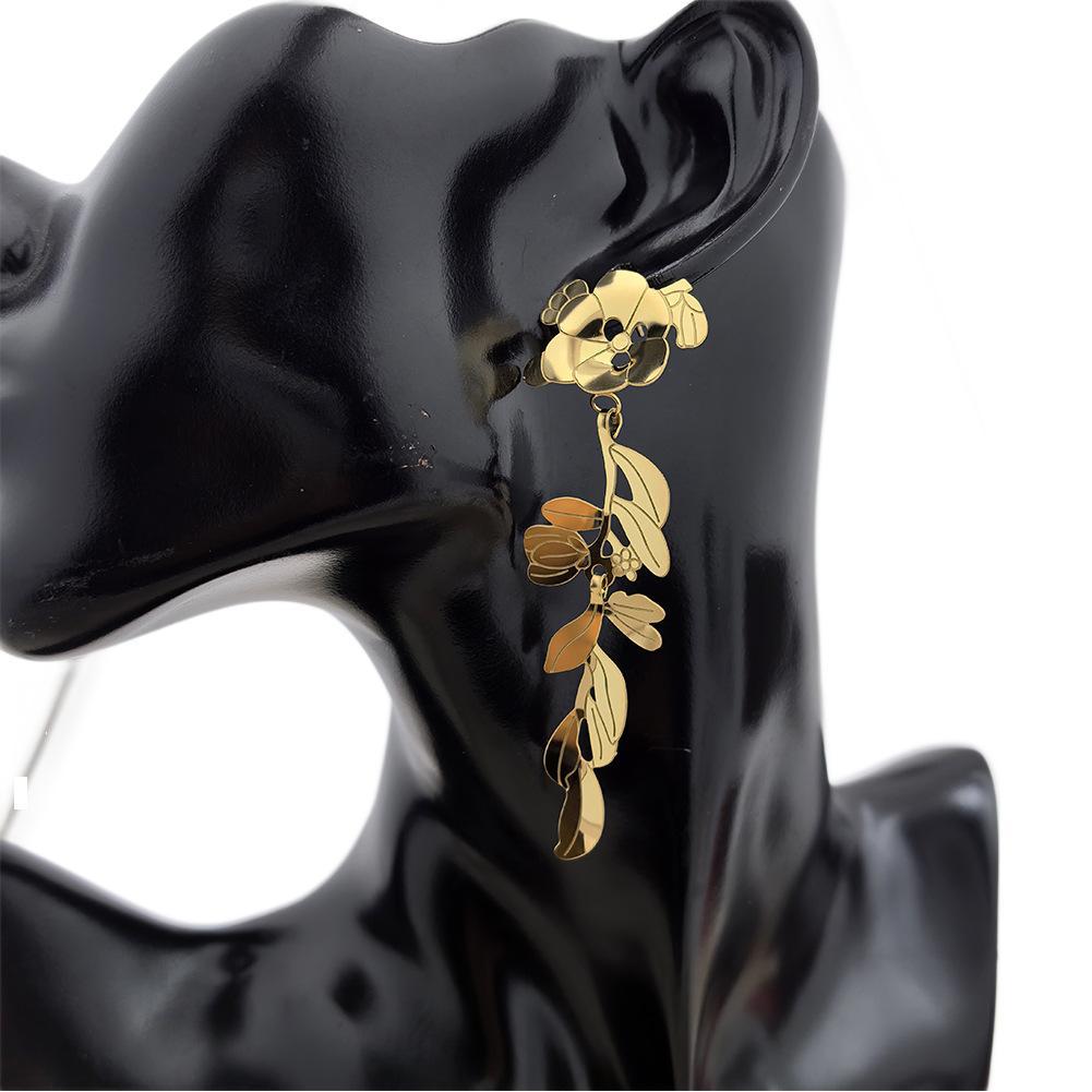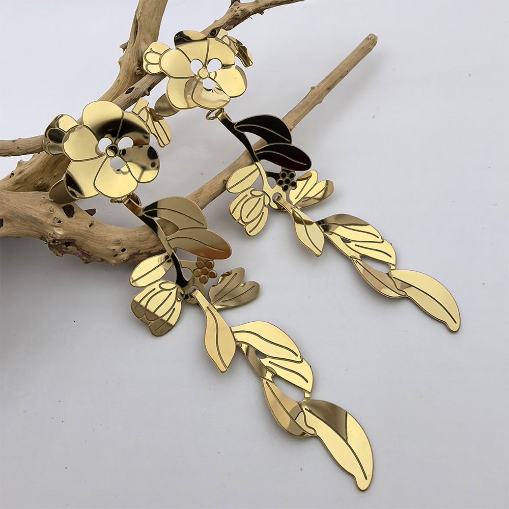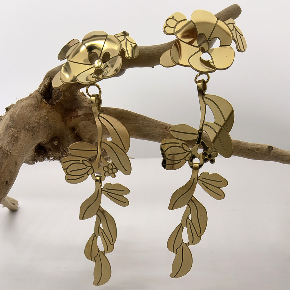 Boucle d'oreille goutte inox, Acier inoxydable 304, fleur, Plaqué d'or 18K, bijoux de mode & pour femme & creux, Vendu par paire