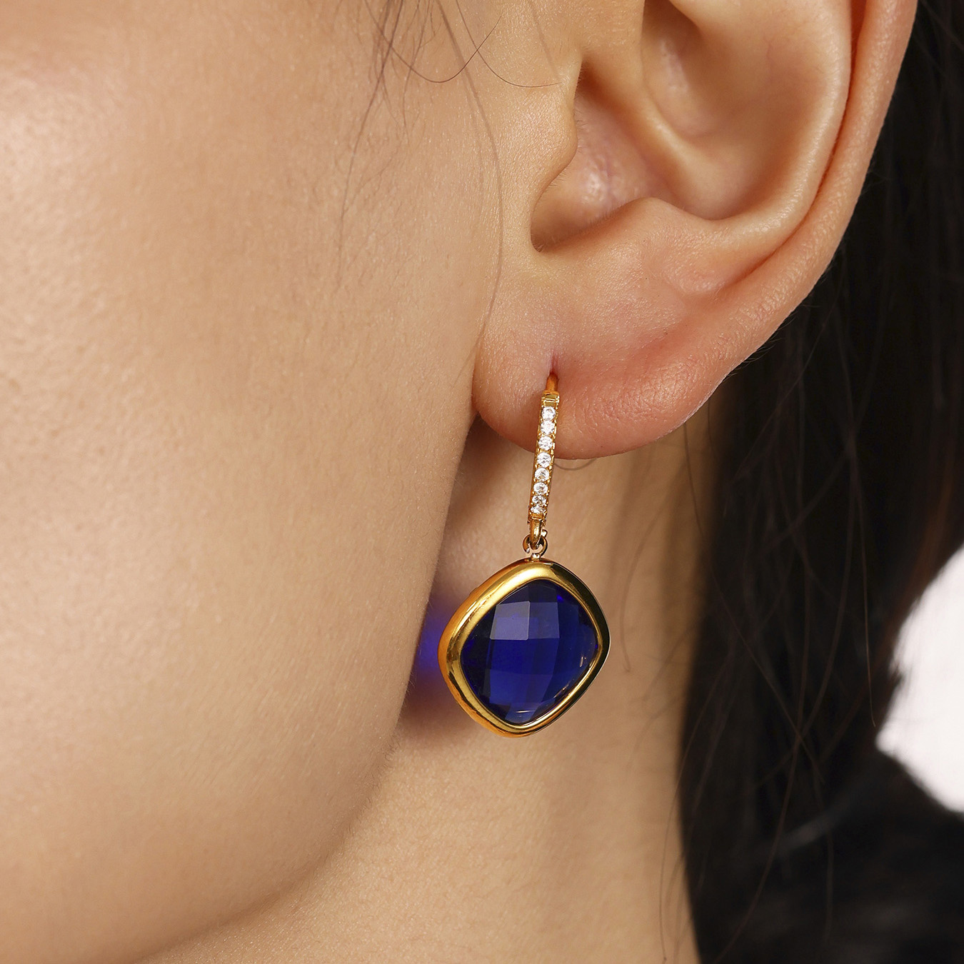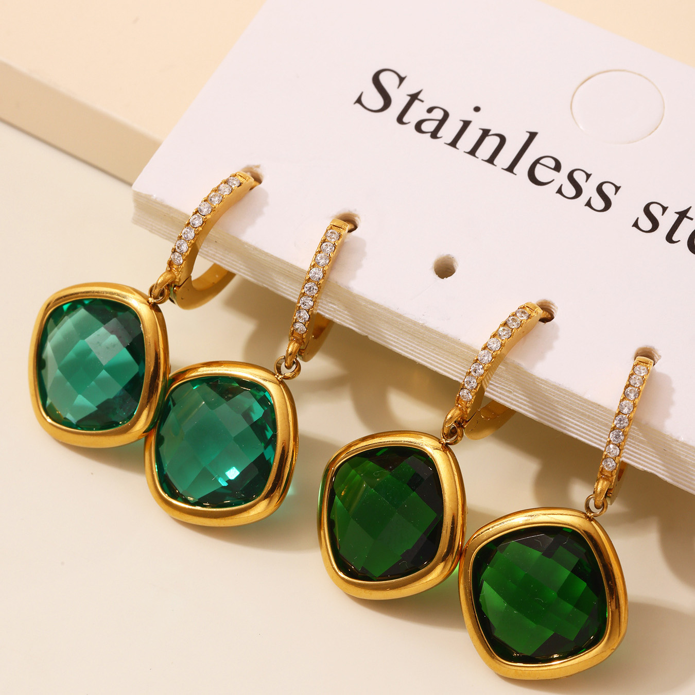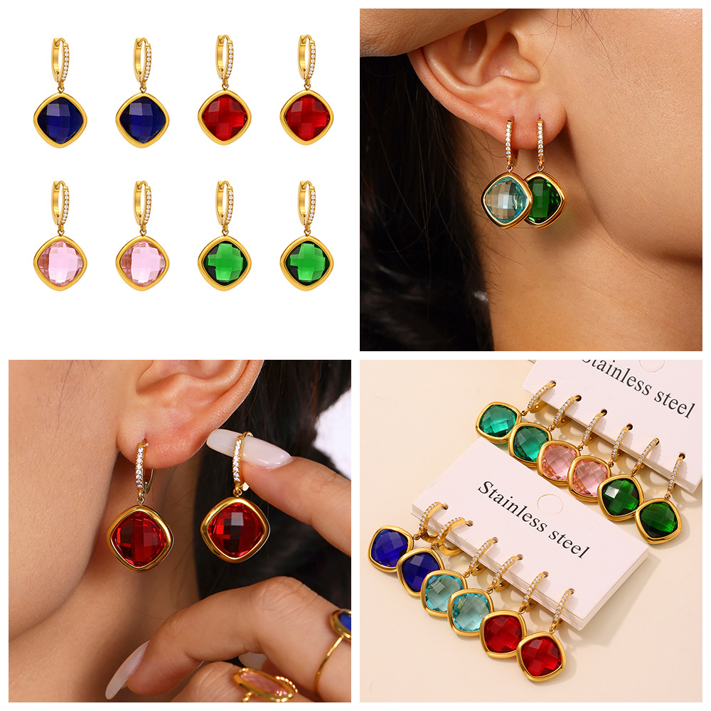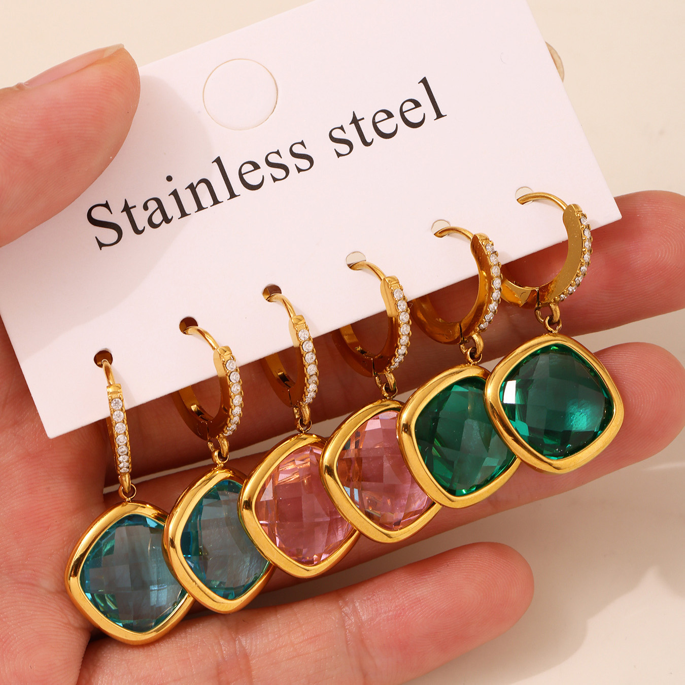 Boucle d'oreille goutte inox, acier inoxydable, acier inoxydable boucle d'oreille crochet, rectangle, pour femme & avec strass, plus de couleurs à choisir Environ 2.6 pouce, Vendu par paire