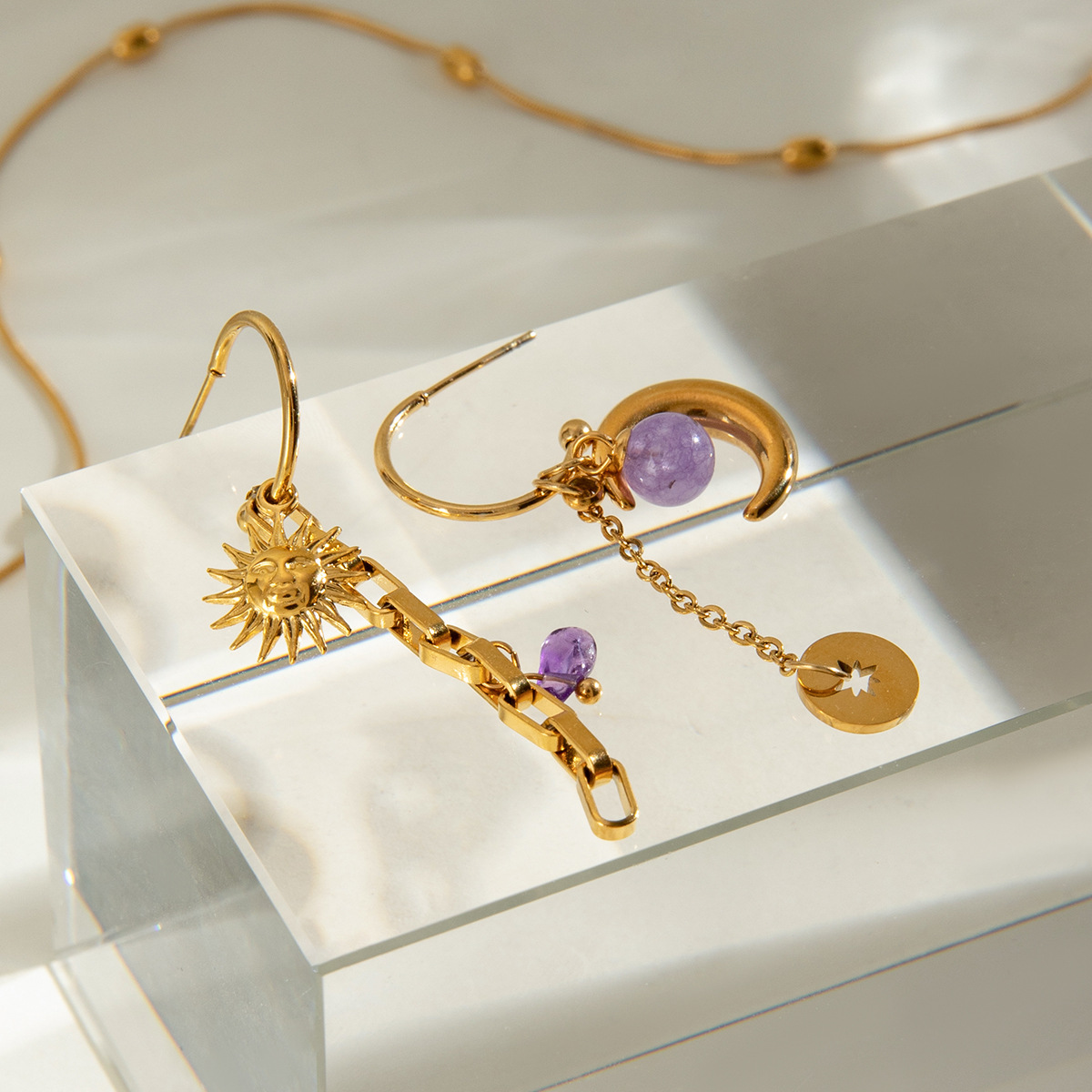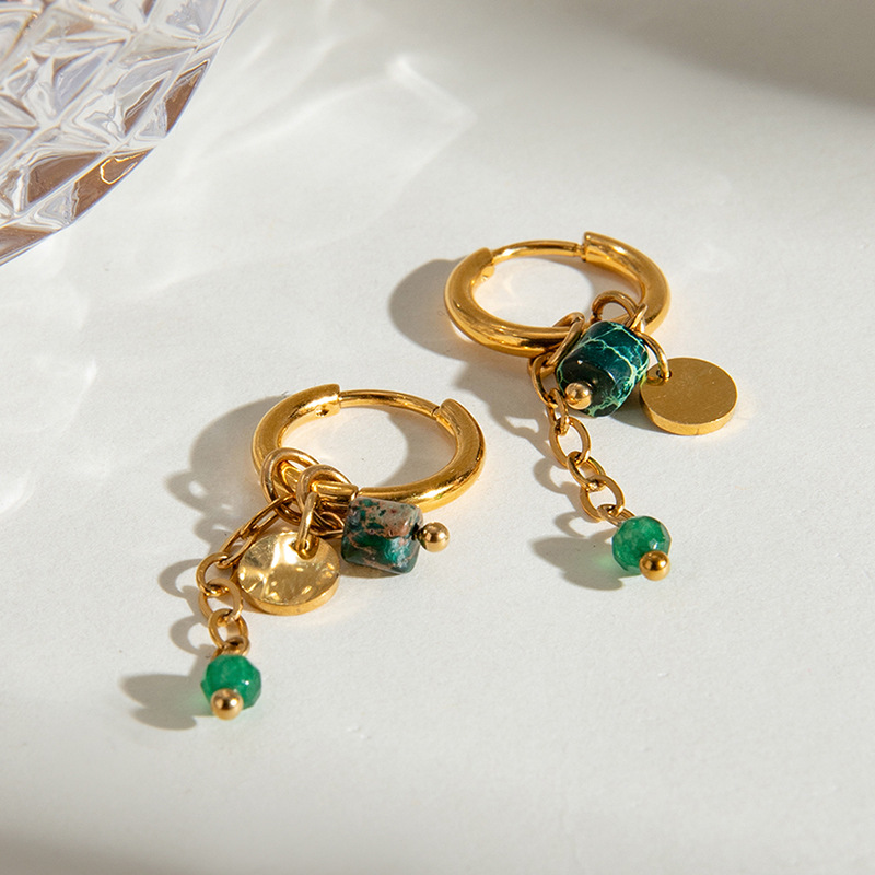 Boucle d'oreille goutte inox, Acier inoxydable 304, avec Pierre naturelle, Placage, bijoux de mode & styles différents pour le choix & pour femme, doré, Vendu par paire
