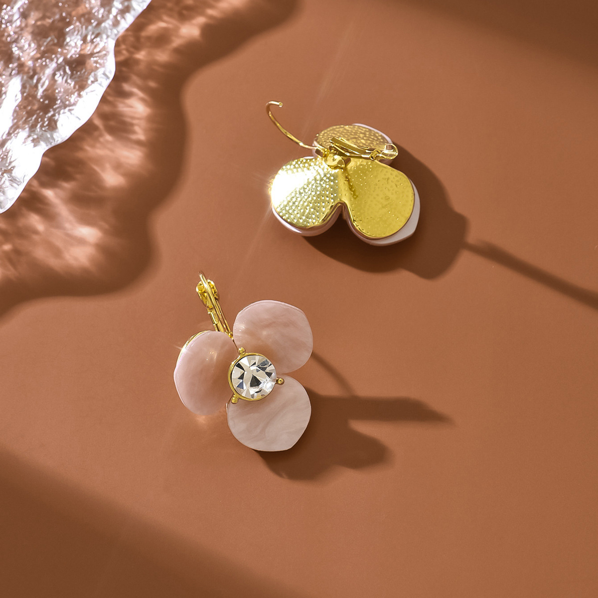 laiton boucle d'oreille leverback, fleur, Placage, avec strass, plus de couleurs à choisir Vendu par paire