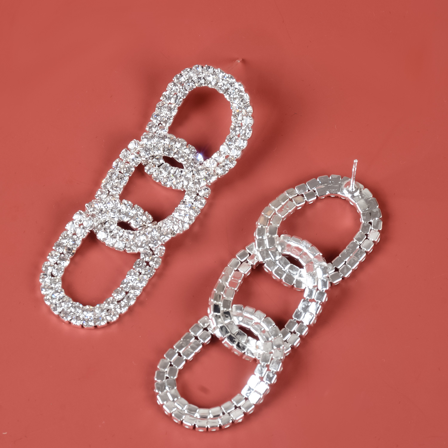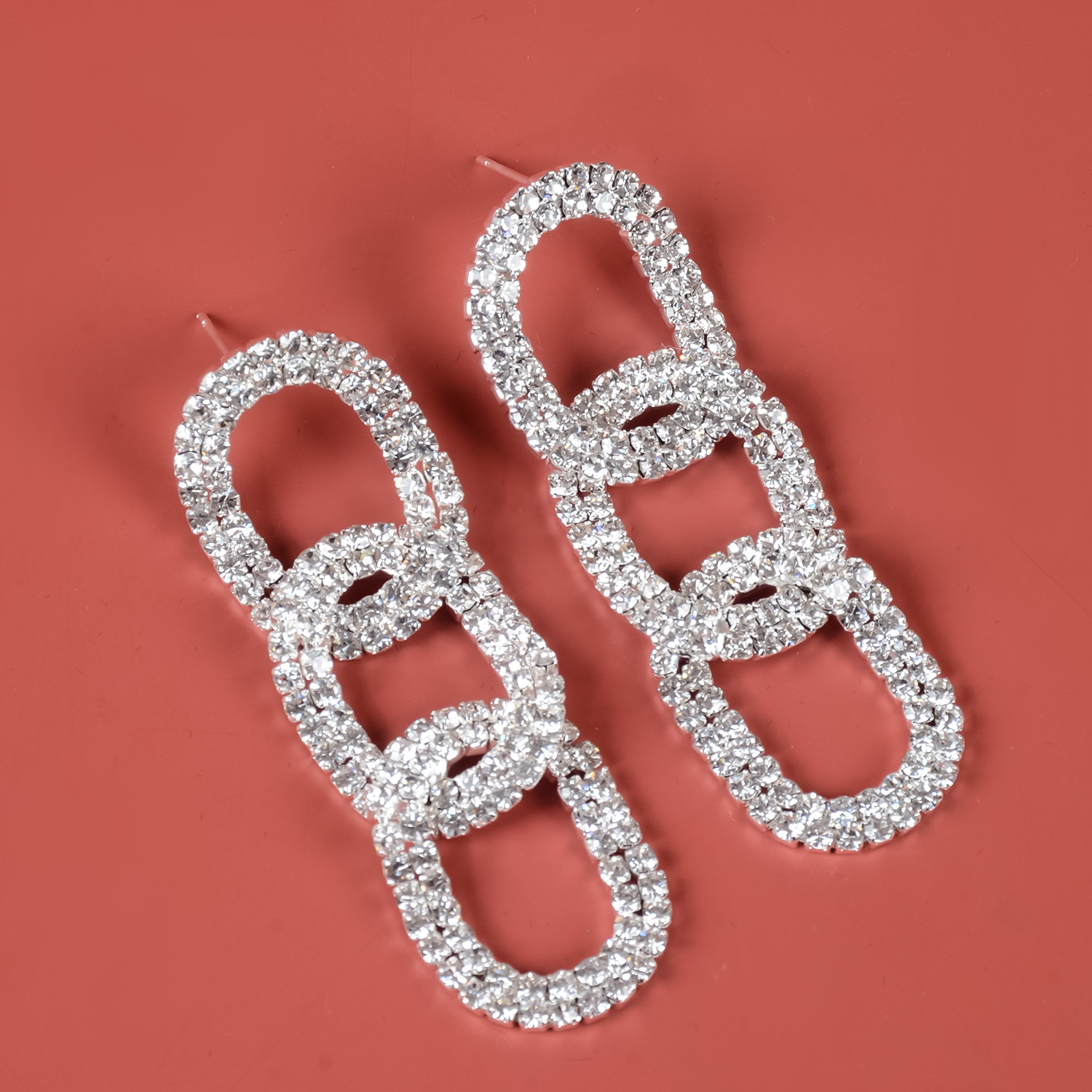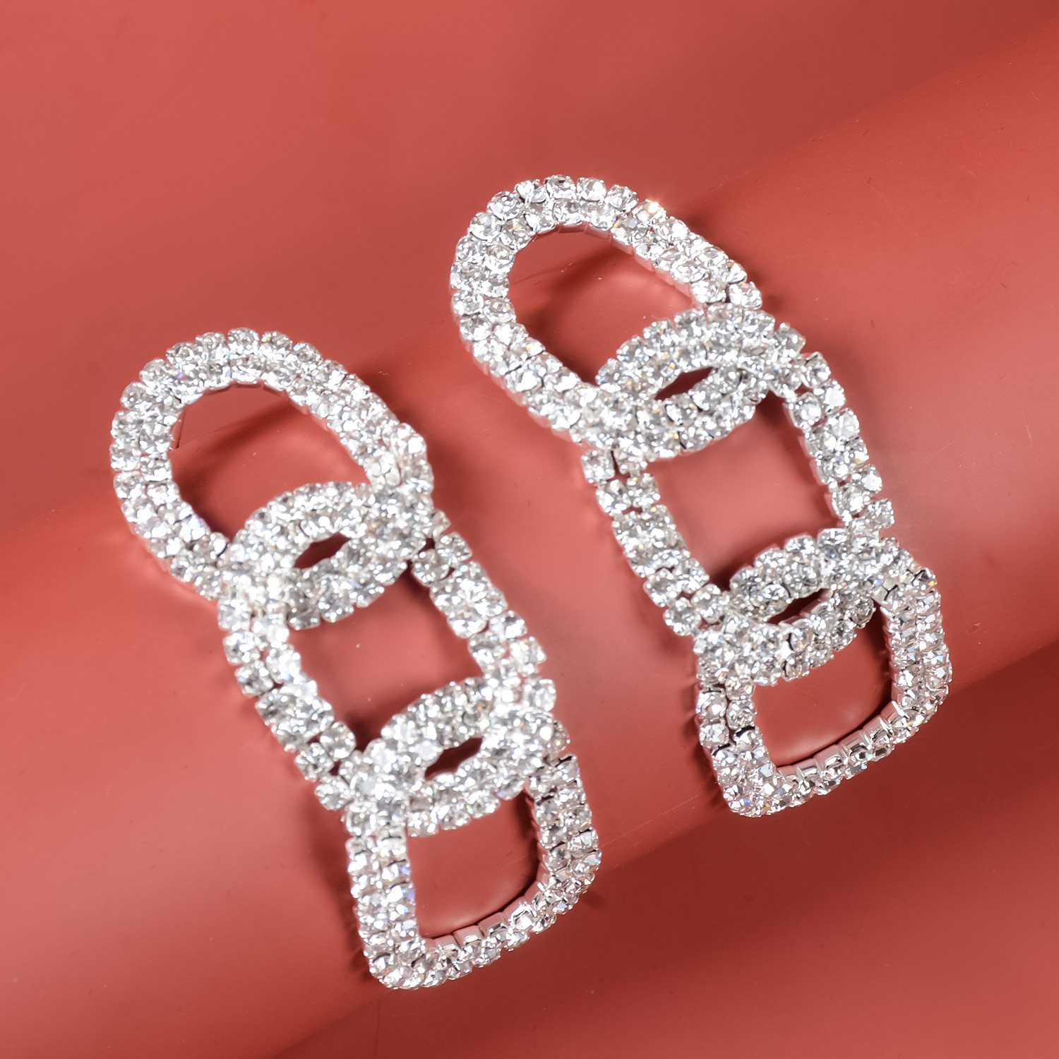Boucle d'oreille goutte laiton strass, fer boucle d'oreille crochet, Placage de couleur platine, avec strass Environ 5.24 pouce, Vendu par paire