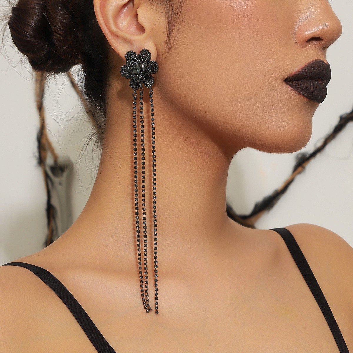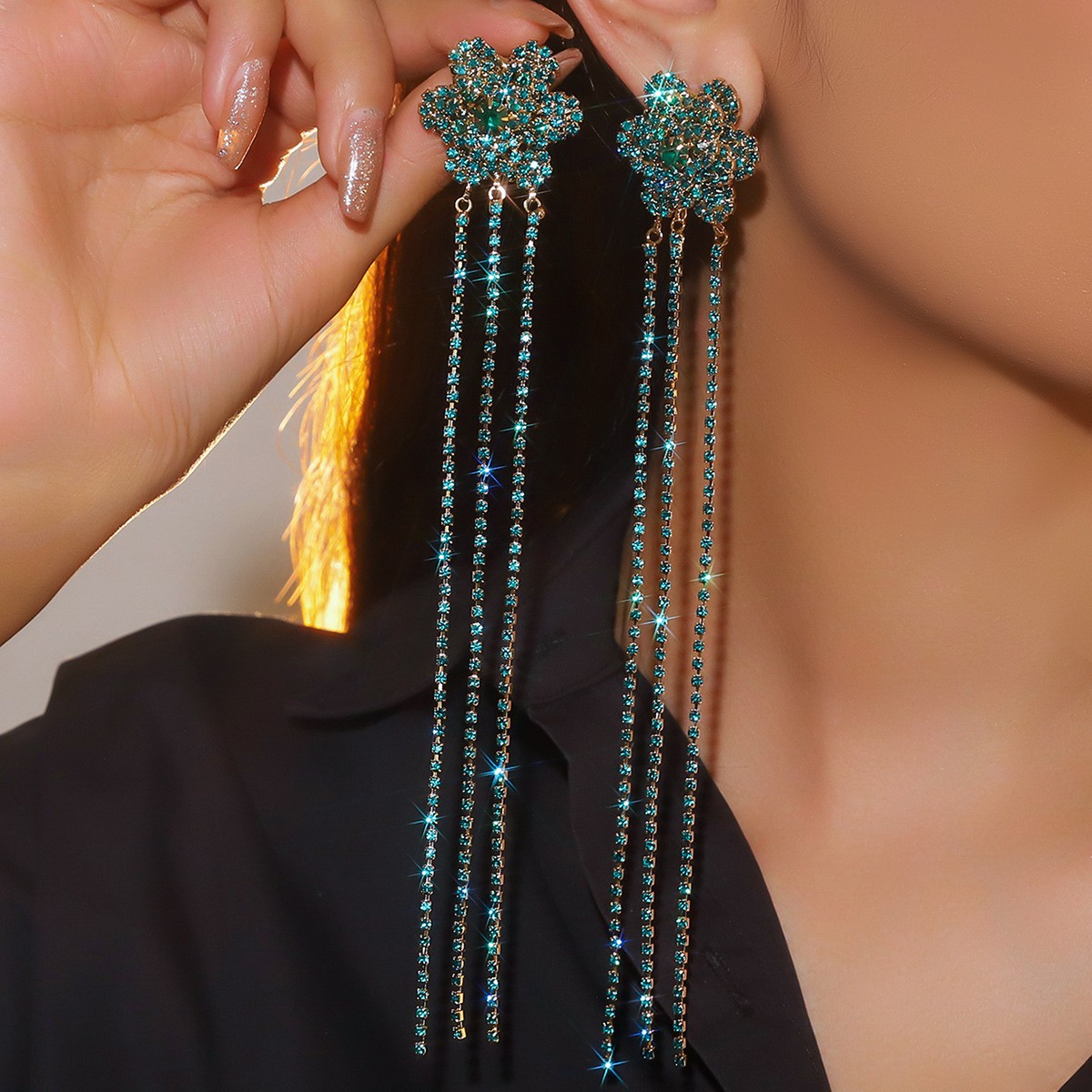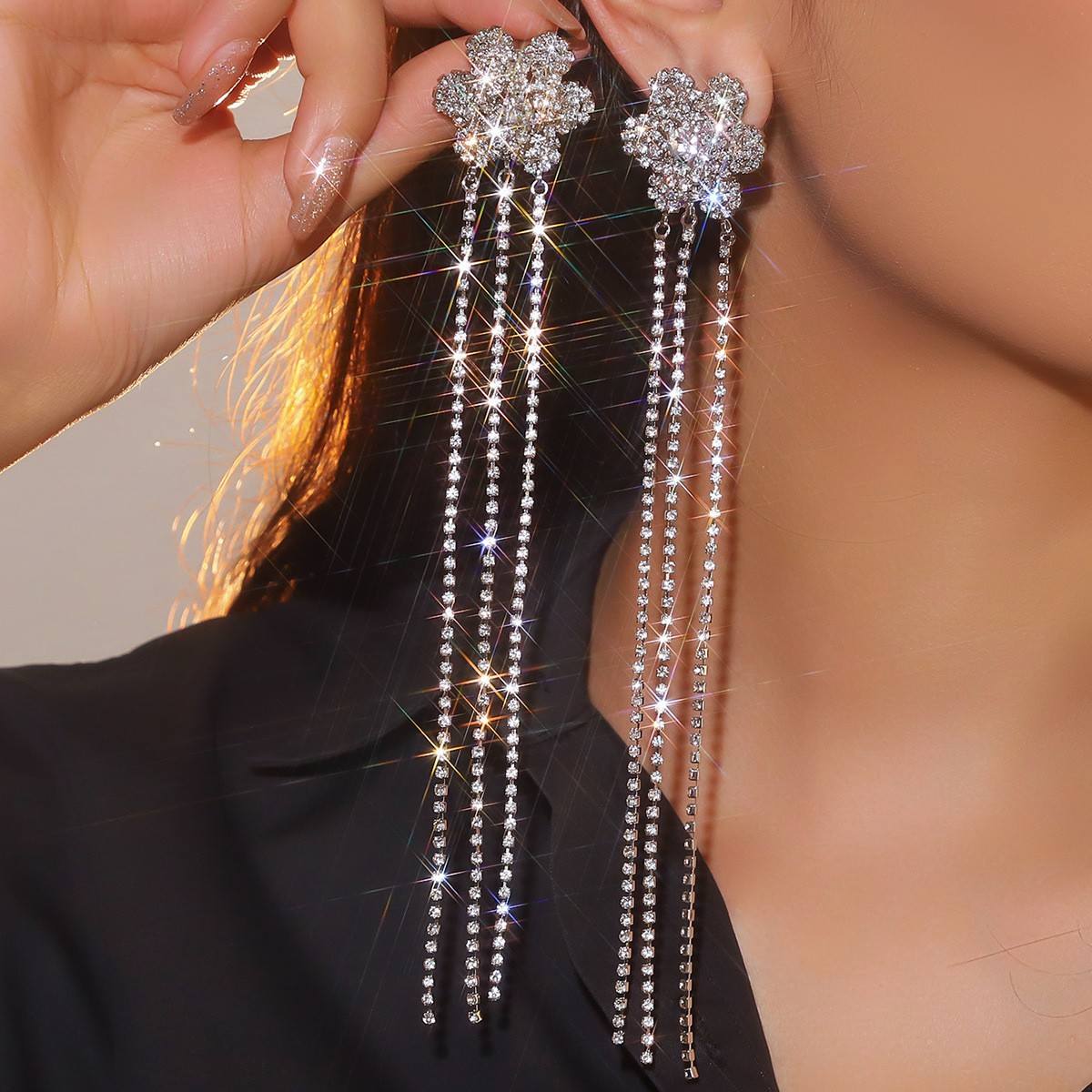 Boucle d'oreille goutte laiton strass, fer boucle d'oreille crochet, Placage de couleur platine, avec strass Environ 5.24 pouce, Vendu par paire