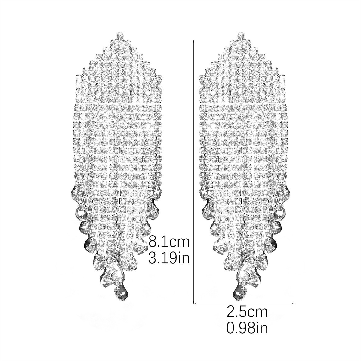 Boucle d'oreille goutte laiton strass, fer boucle d'oreille crochet, Placage de couleur platine, avec strass Environ 5.24 pouce, Vendu par paire