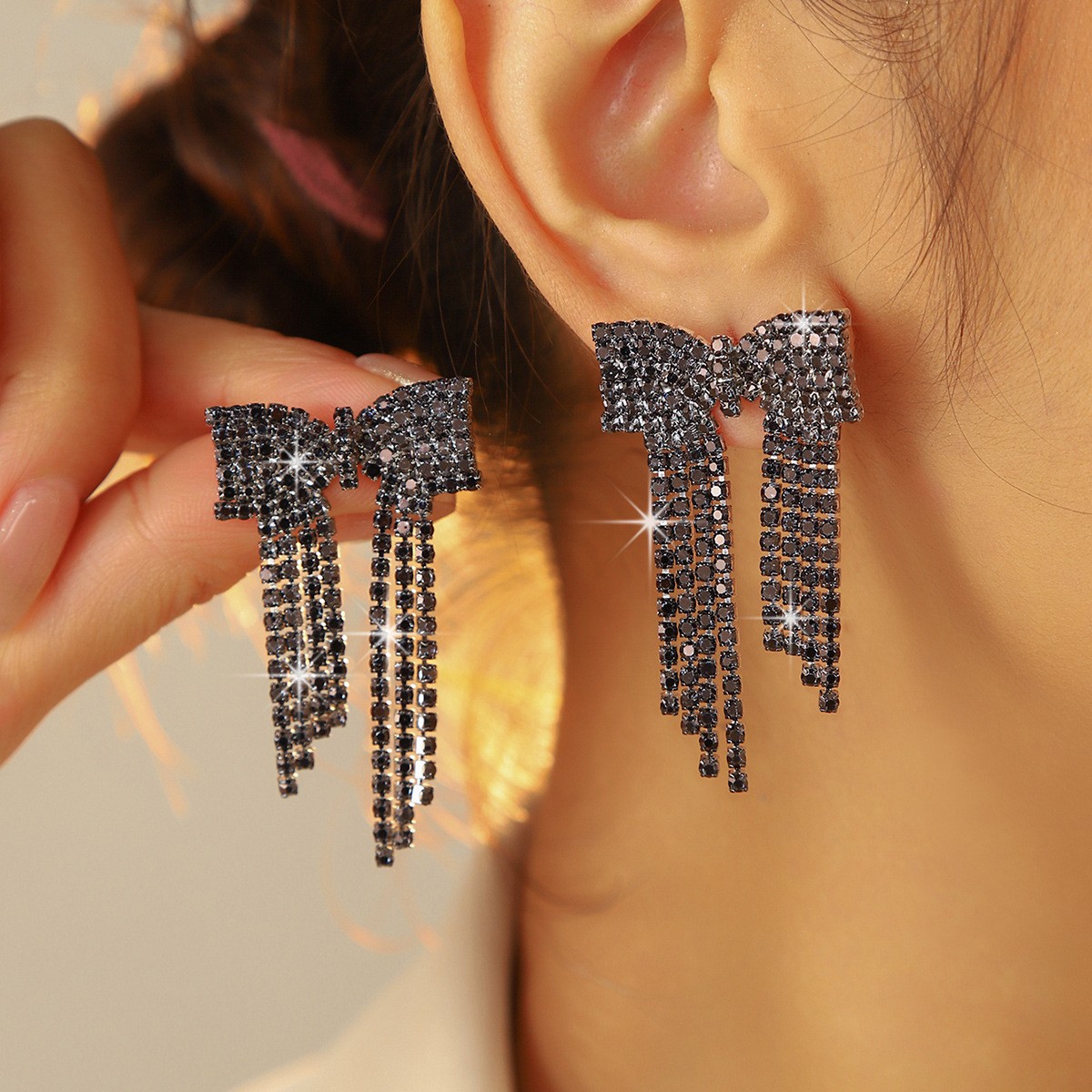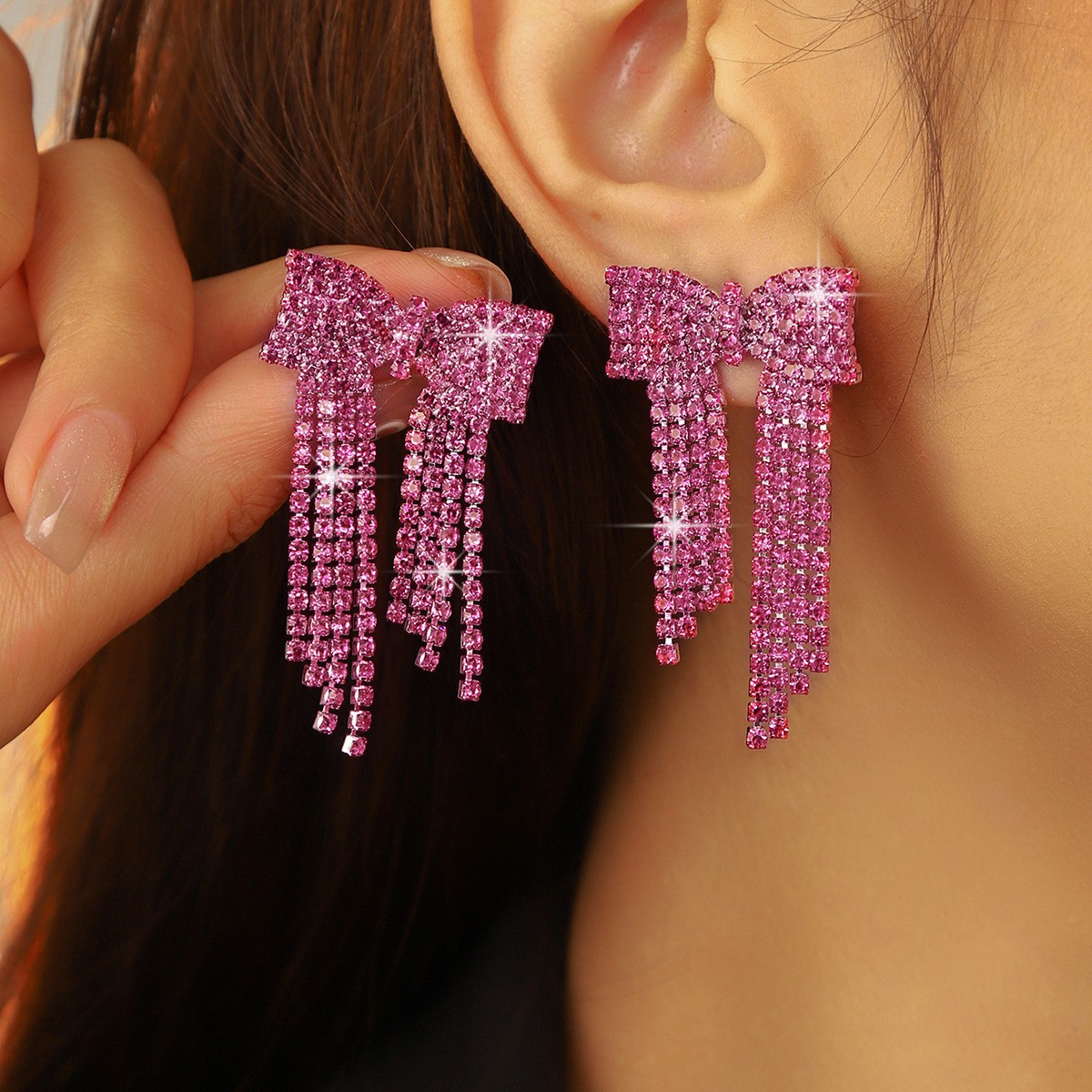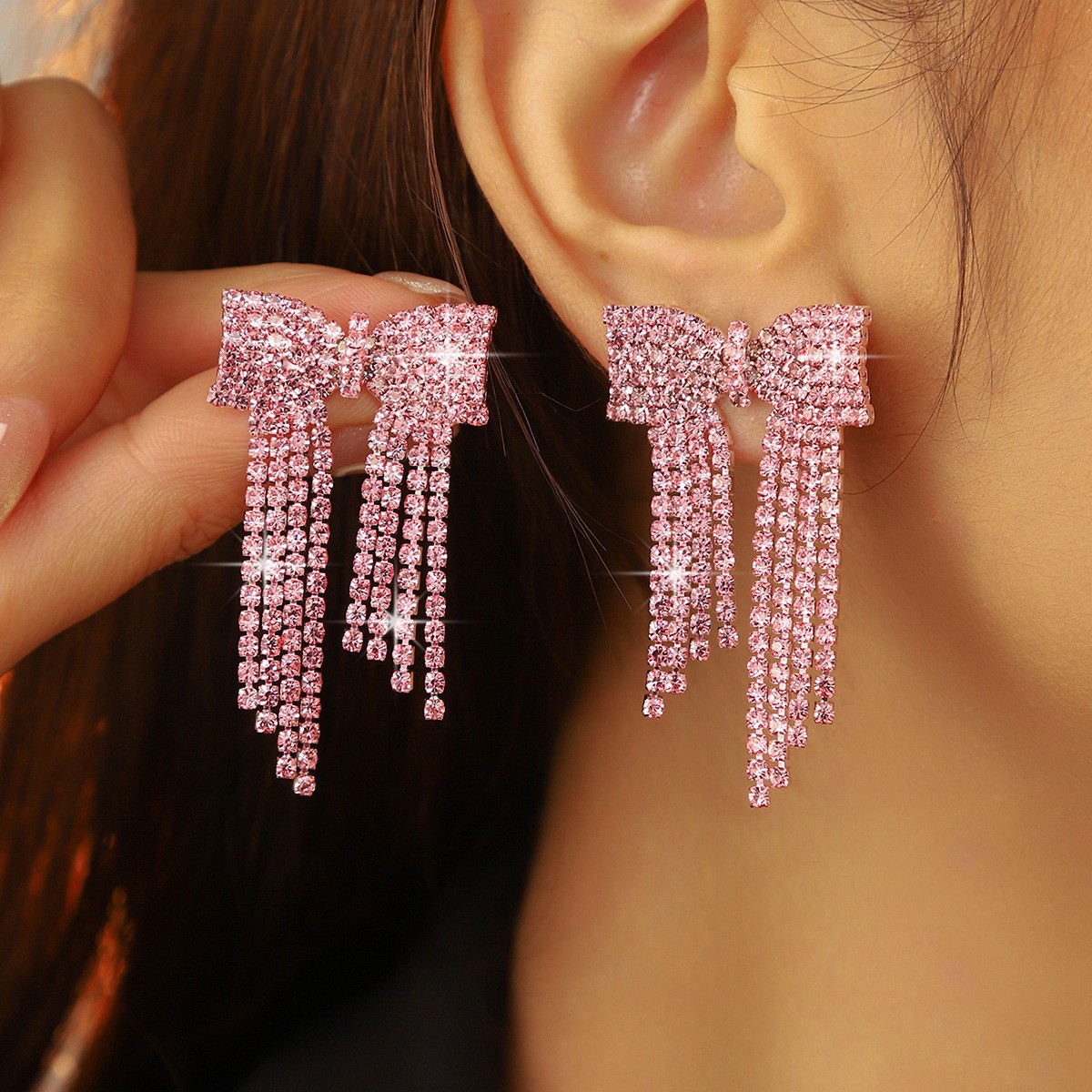 Boucle d'oreille goutte laiton strass, Noeud papillon, bijoux de mode & pour femme & avec strass, plus de couleurs à choisir, Vendu par paire