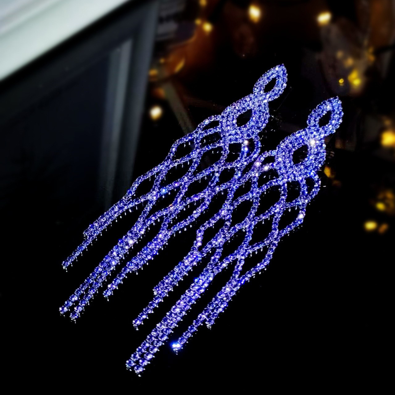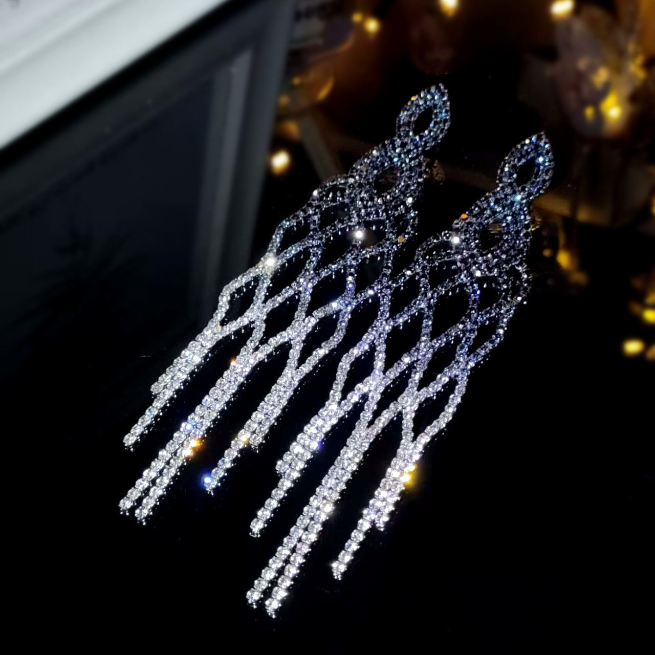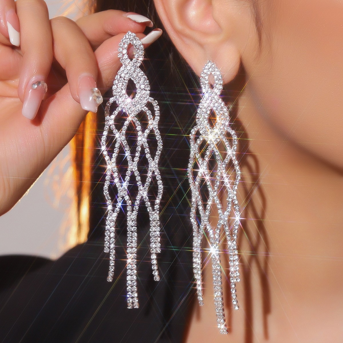 Boucle d'oreille goutte laiton strass, fer boucle d'oreille crochet, Placage de couleur platine, avec strass Environ 5.24 pouce, Vendu par paire