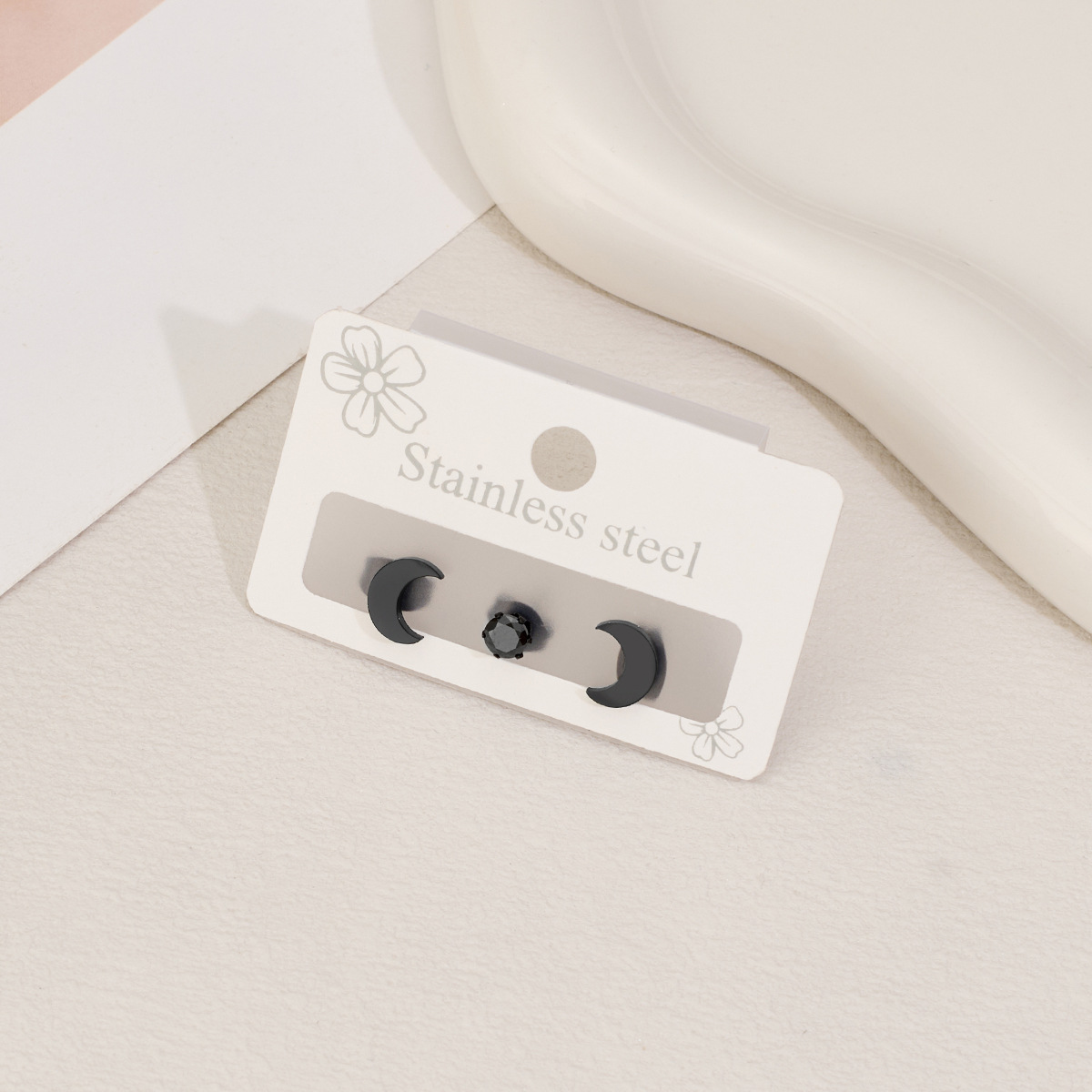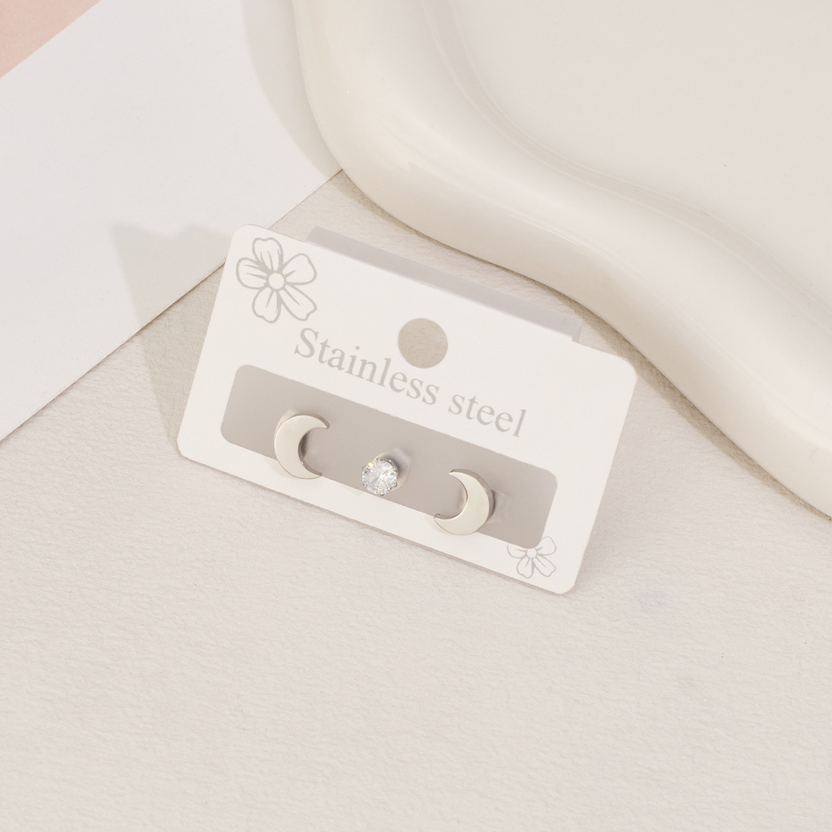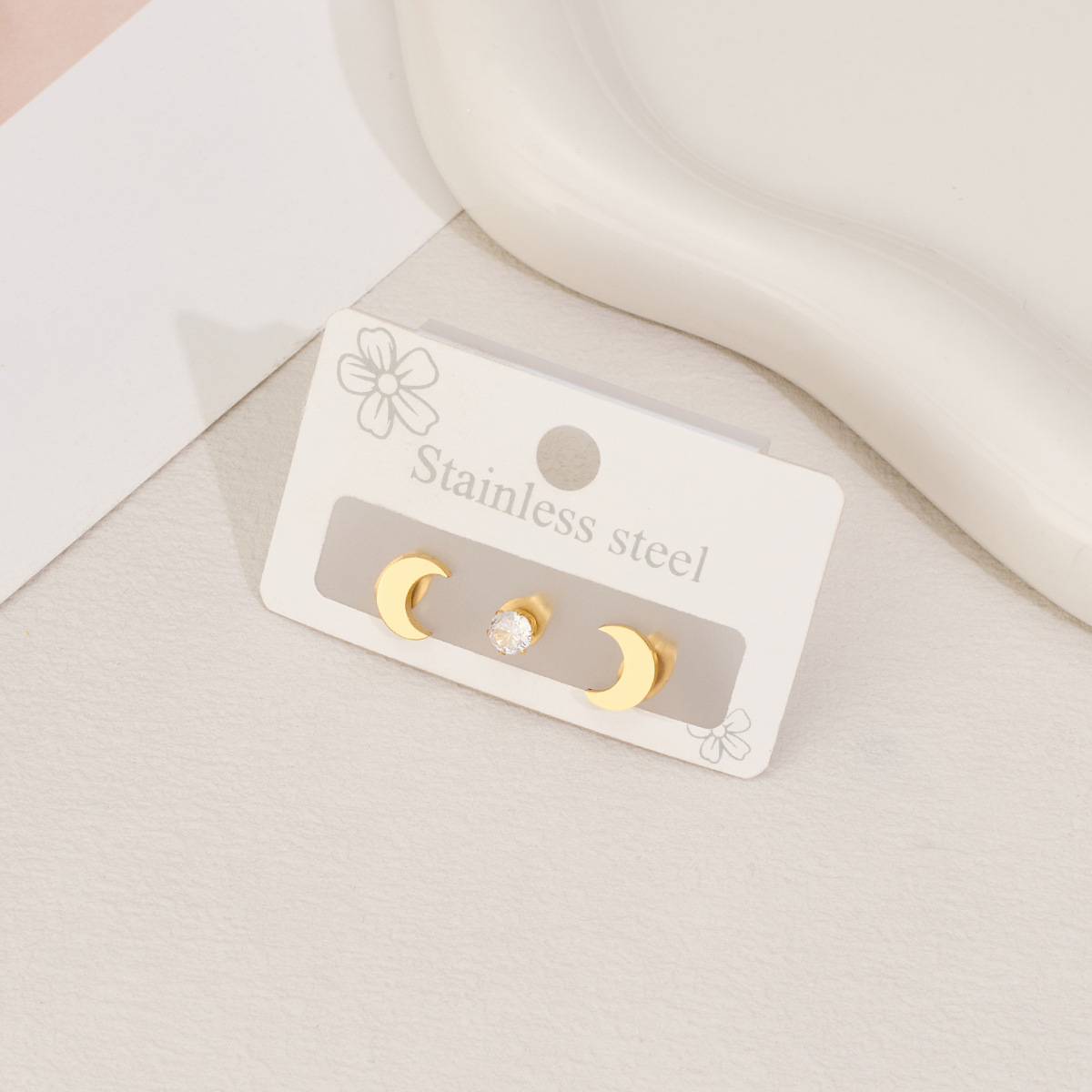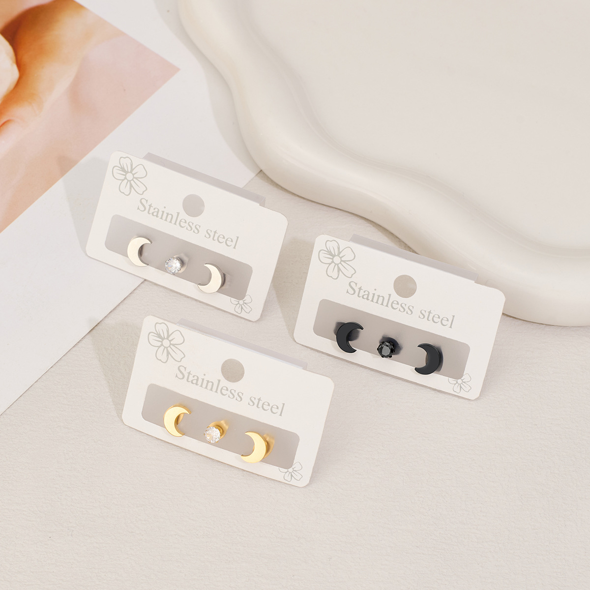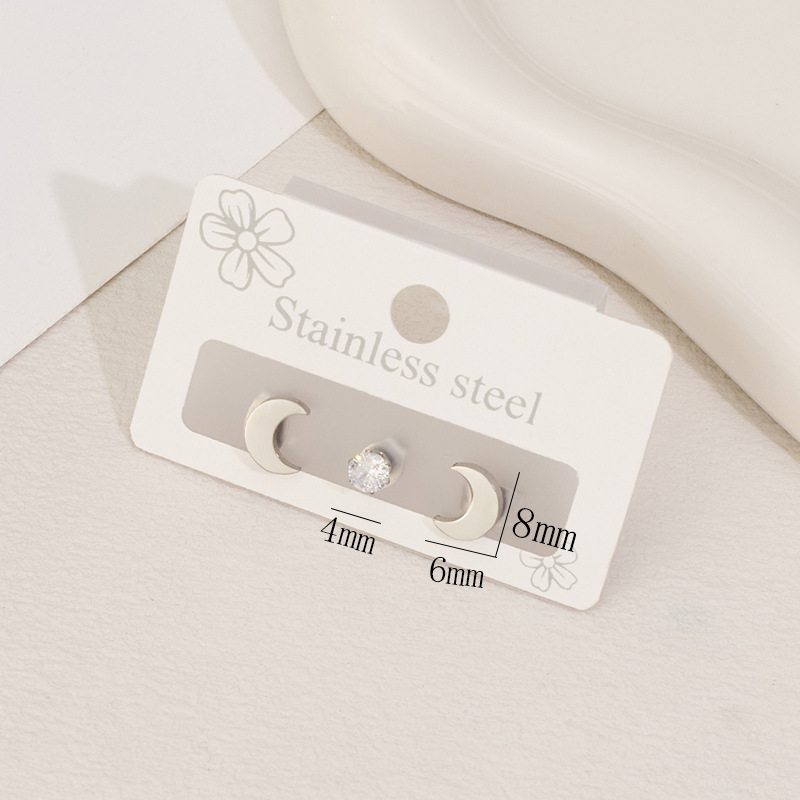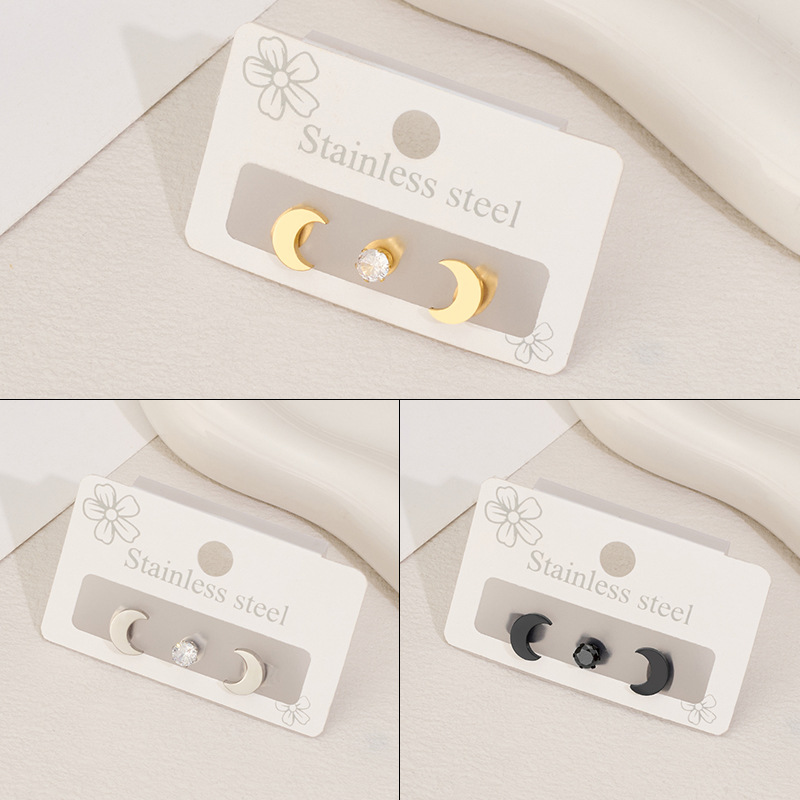 Boucle en acier inoxydable zircons cubiques, Acier inoxydable 304, avec zircon cubique, lune, Placage, trois pièces & bijoux de mode & unisexe, plus de couleurs à choisir, Vendu par fixé