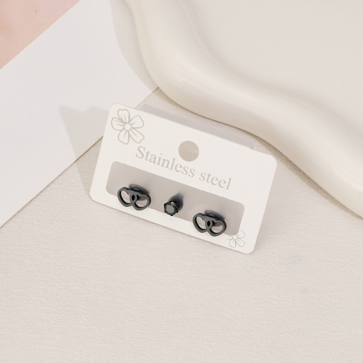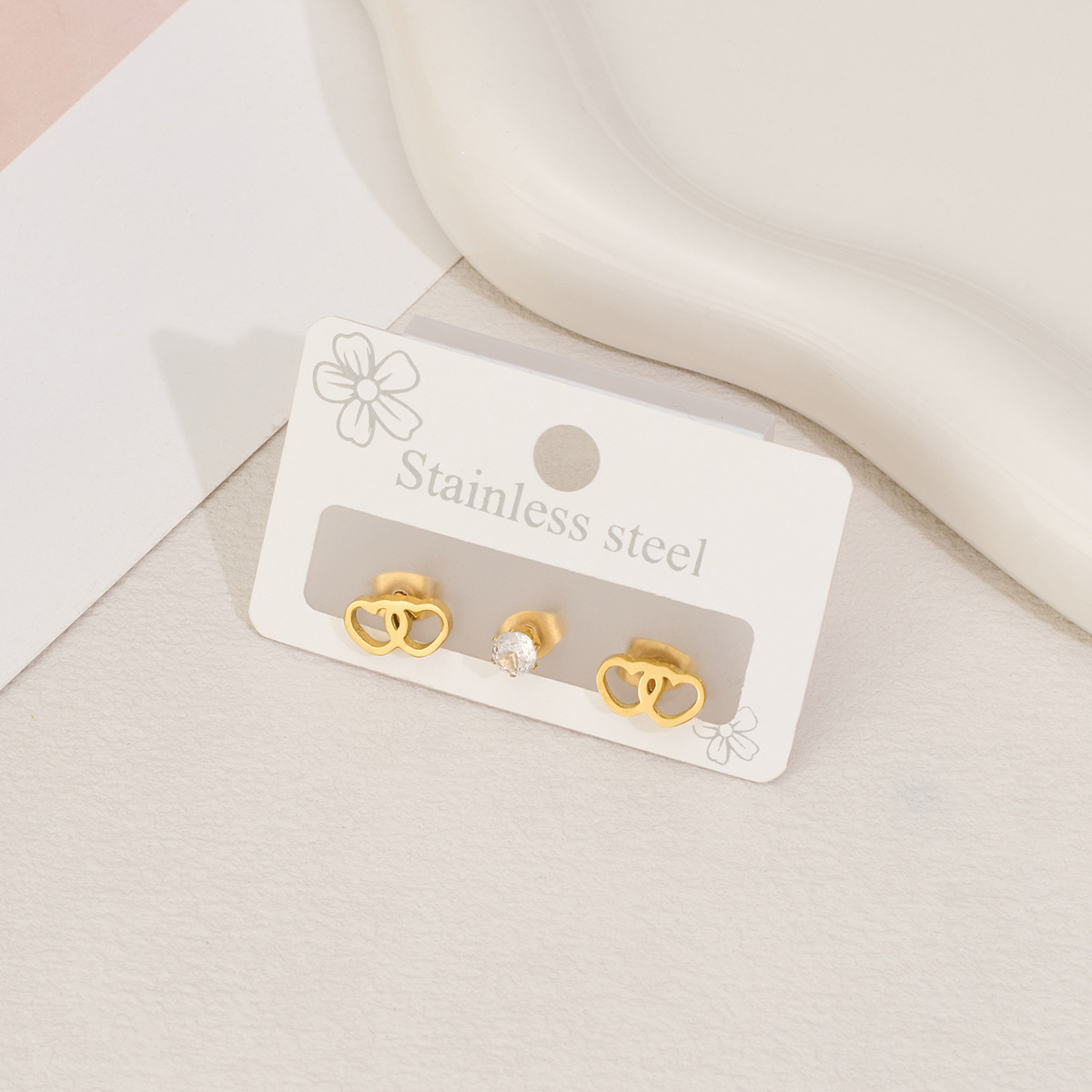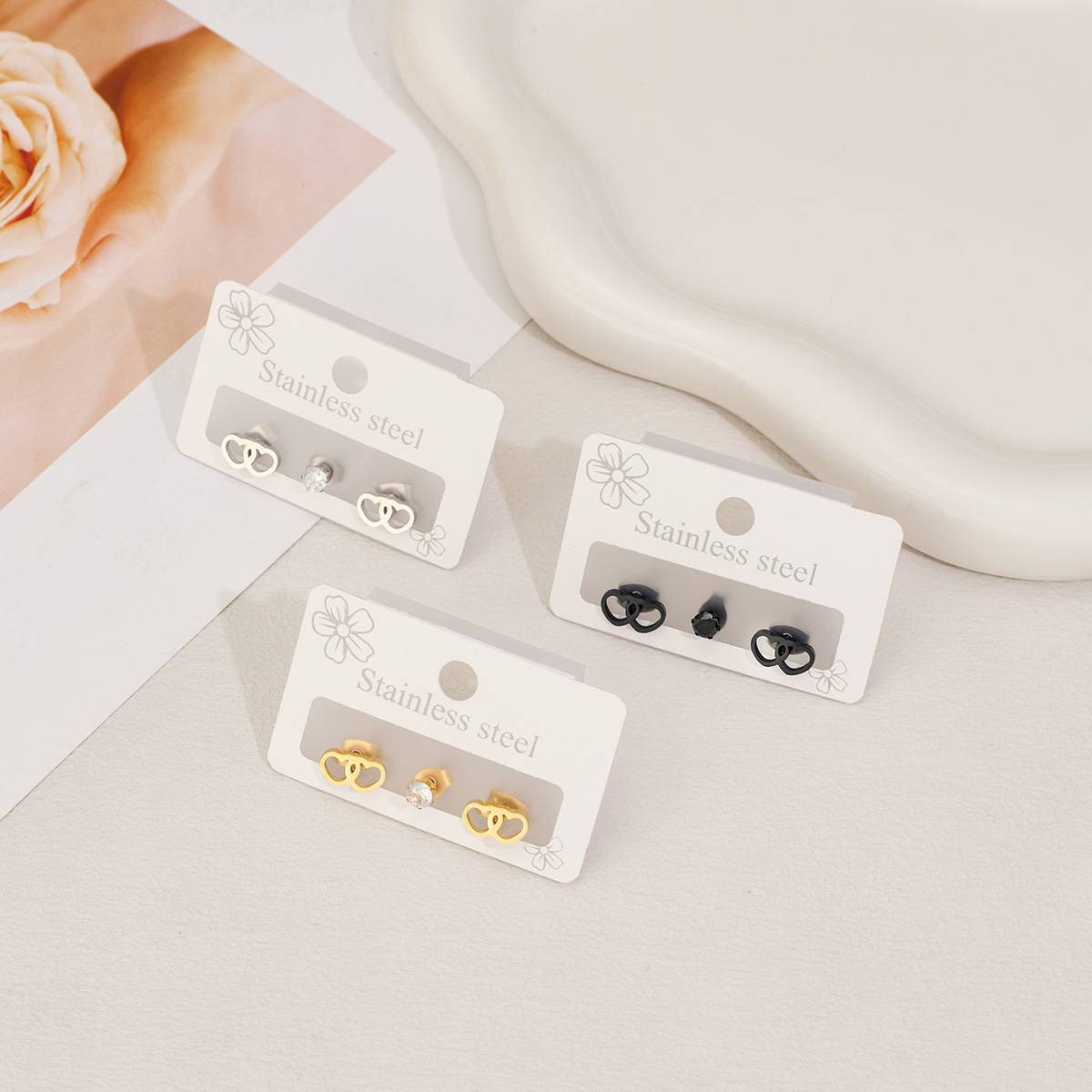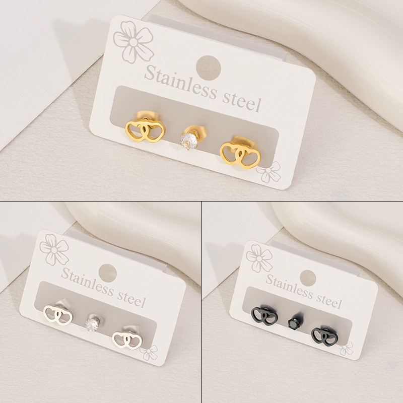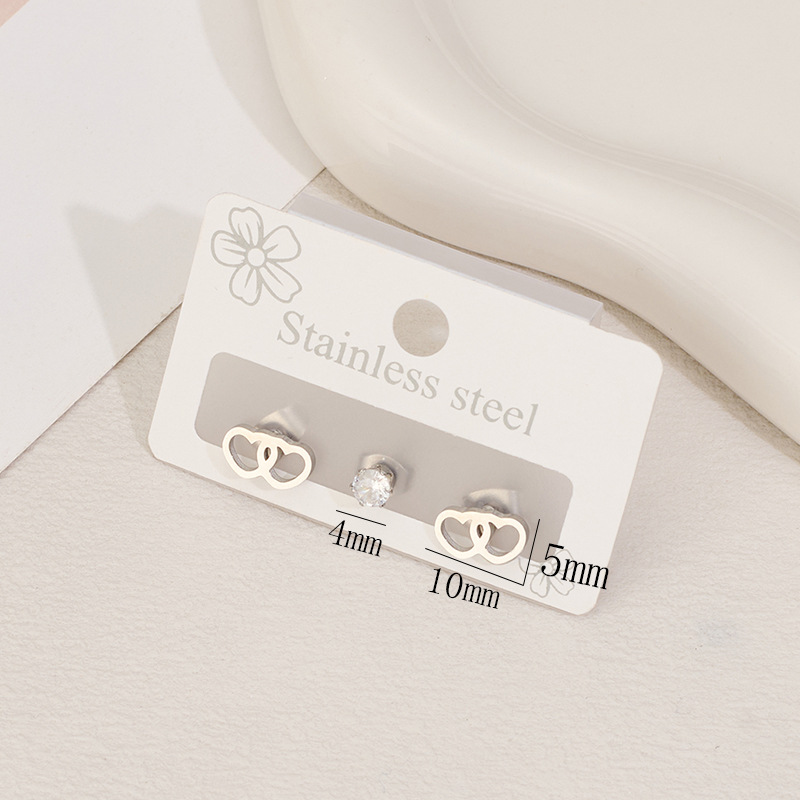 Boucle en acier inoxydable zircons cubiques, Acier inoxydable 304, avec zircon cubique, coeur, Placage, trois pièces & unisexe & creux, plus de couleurs à choisir, Vendu par fixé