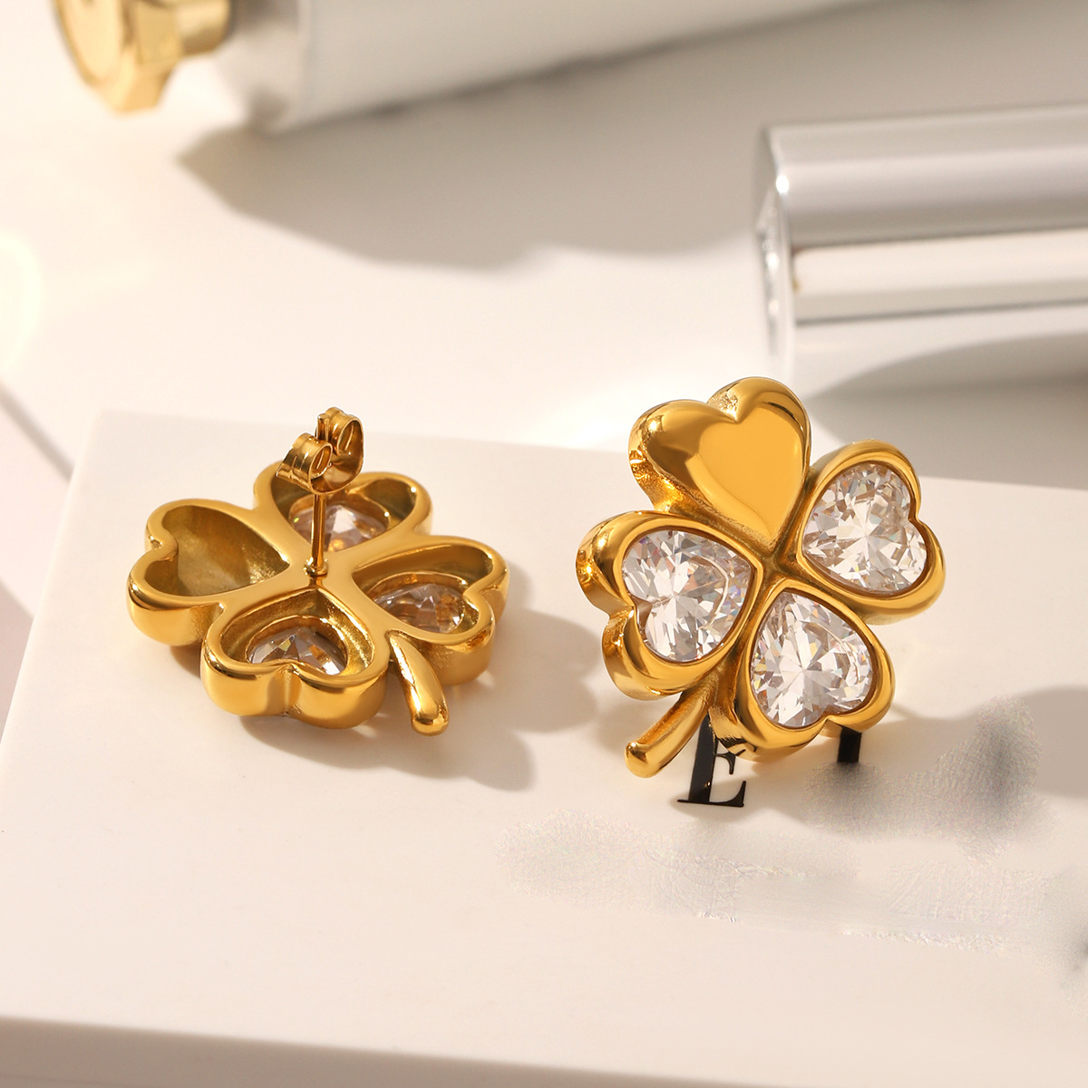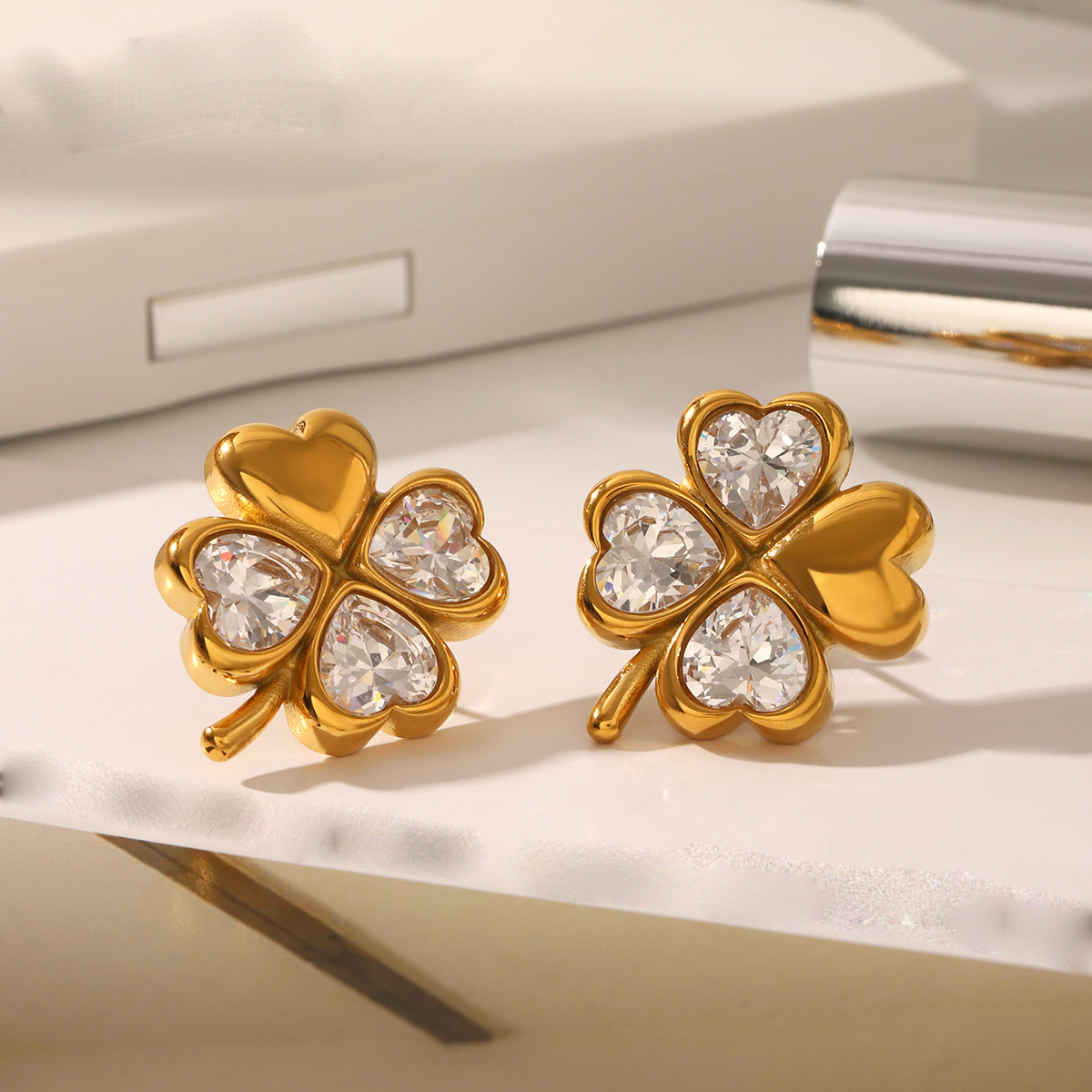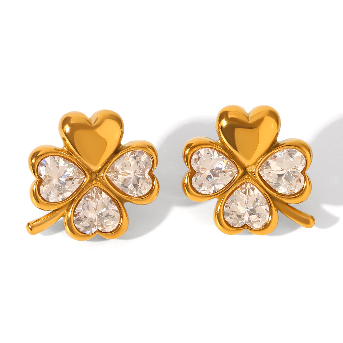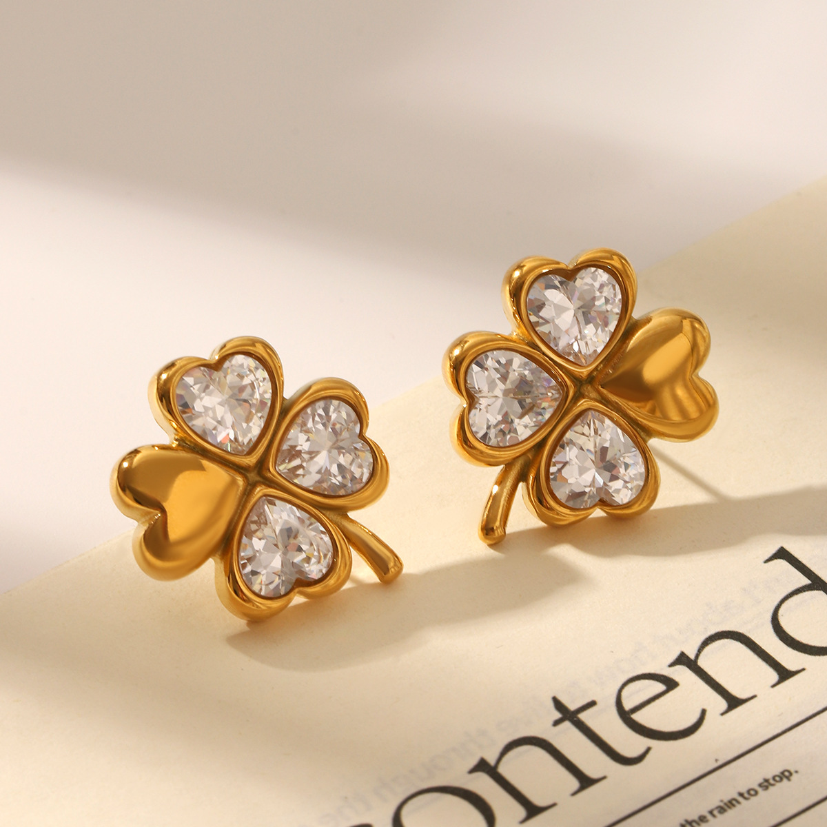Boucle en acier inoxydable zircons cubiques, Acier inoxydable 304, avec zircon cubique, Placage, bijoux de mode & styles différents pour le choix & pour femme, doré, Vendu par paire