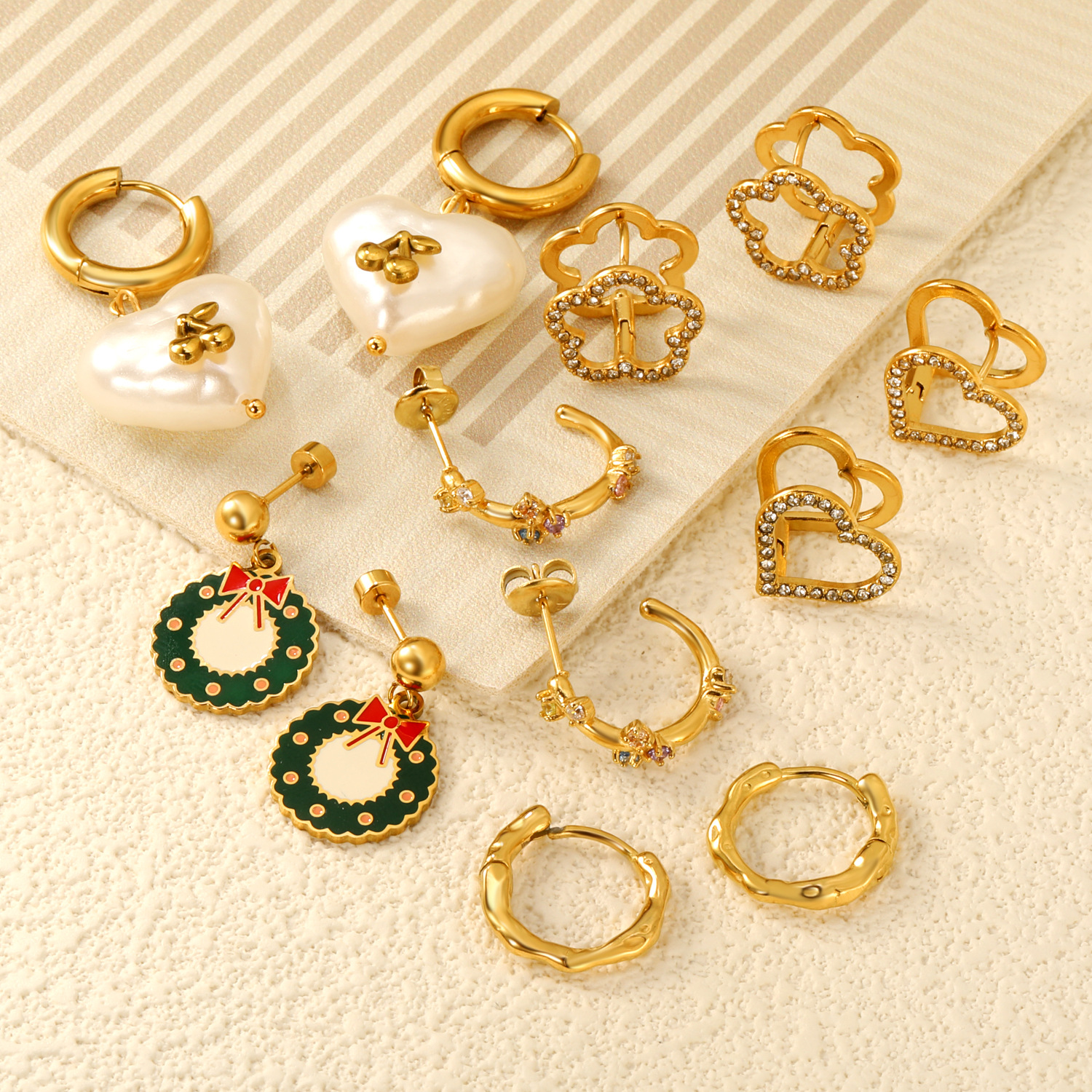Boucle en acier inoxydable zircons cubiques, Acier inoxydable 304, Placage, pavé de micro zircon & pour femme & creux, doré, Vendu par paire