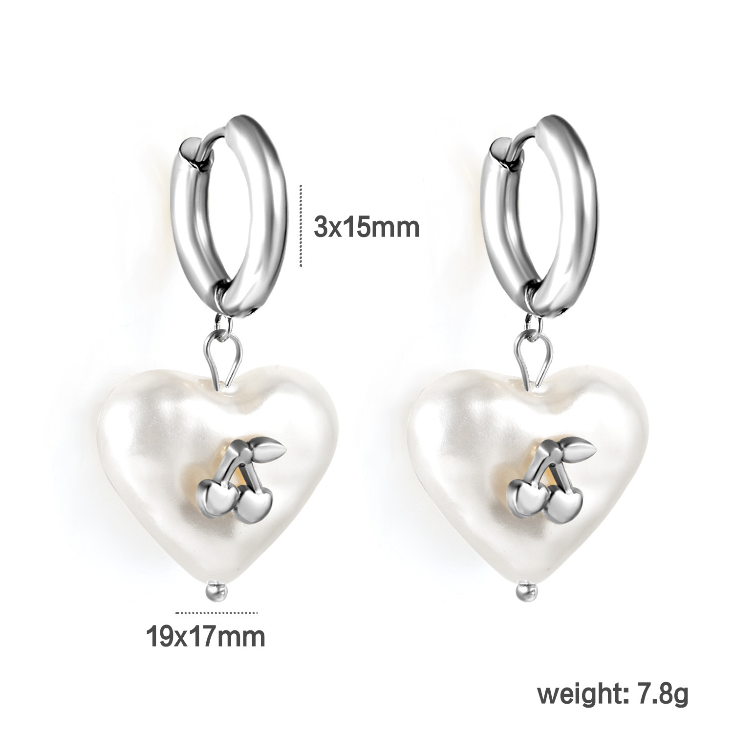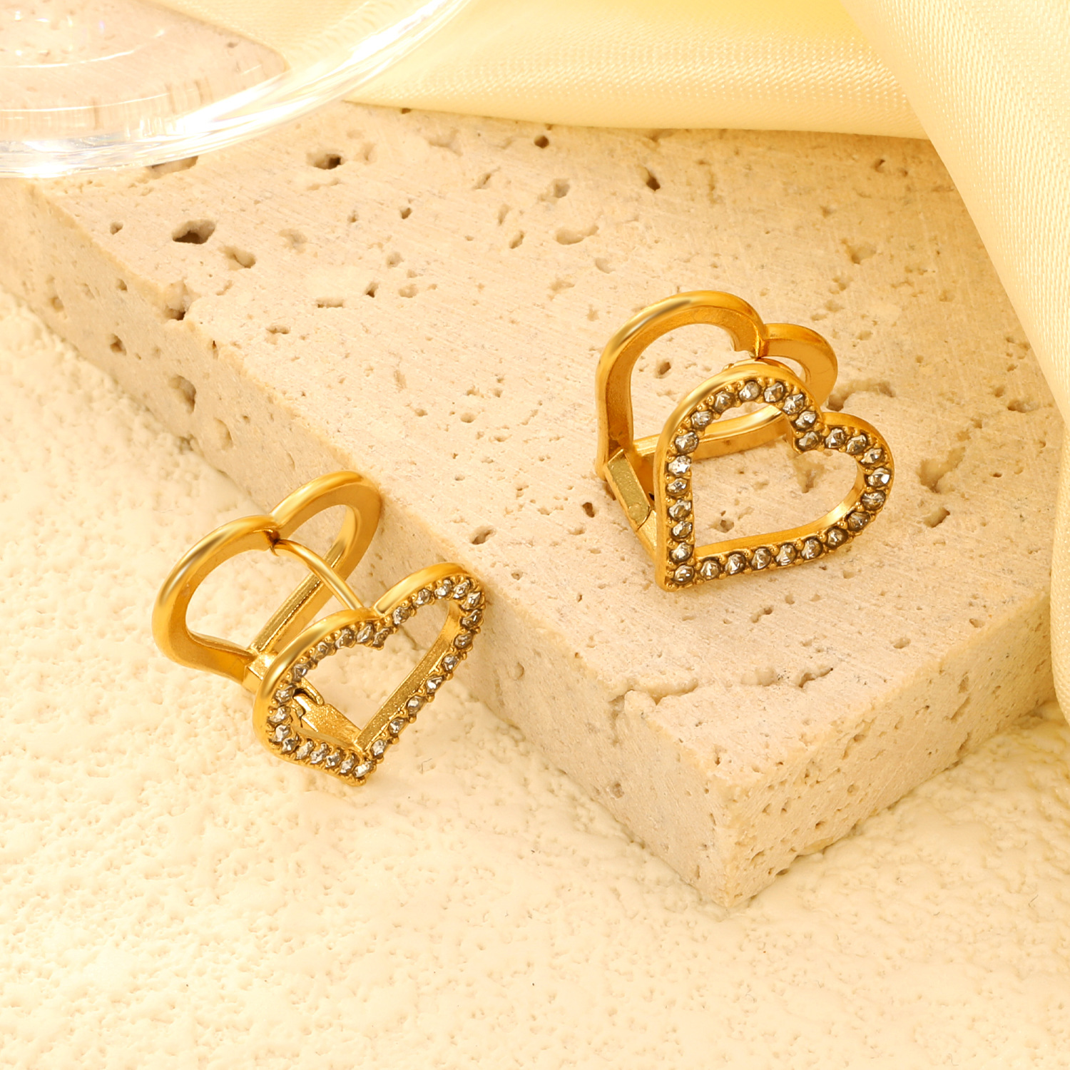 Boucle en acier inoxydable zircons cubiques, avec zircon cubique, acier inoxydable puce boucle d'oreille, coeur Vendu par paire