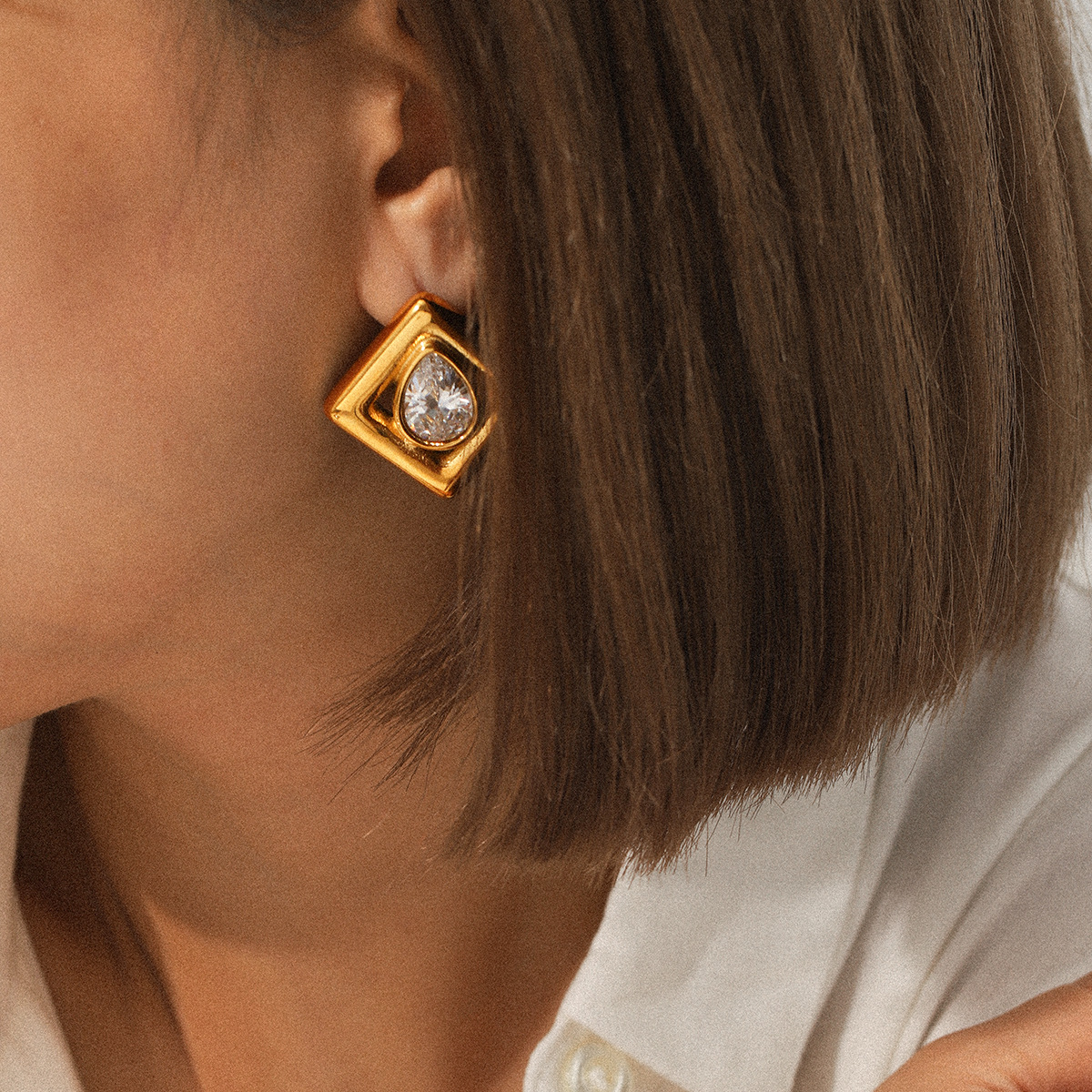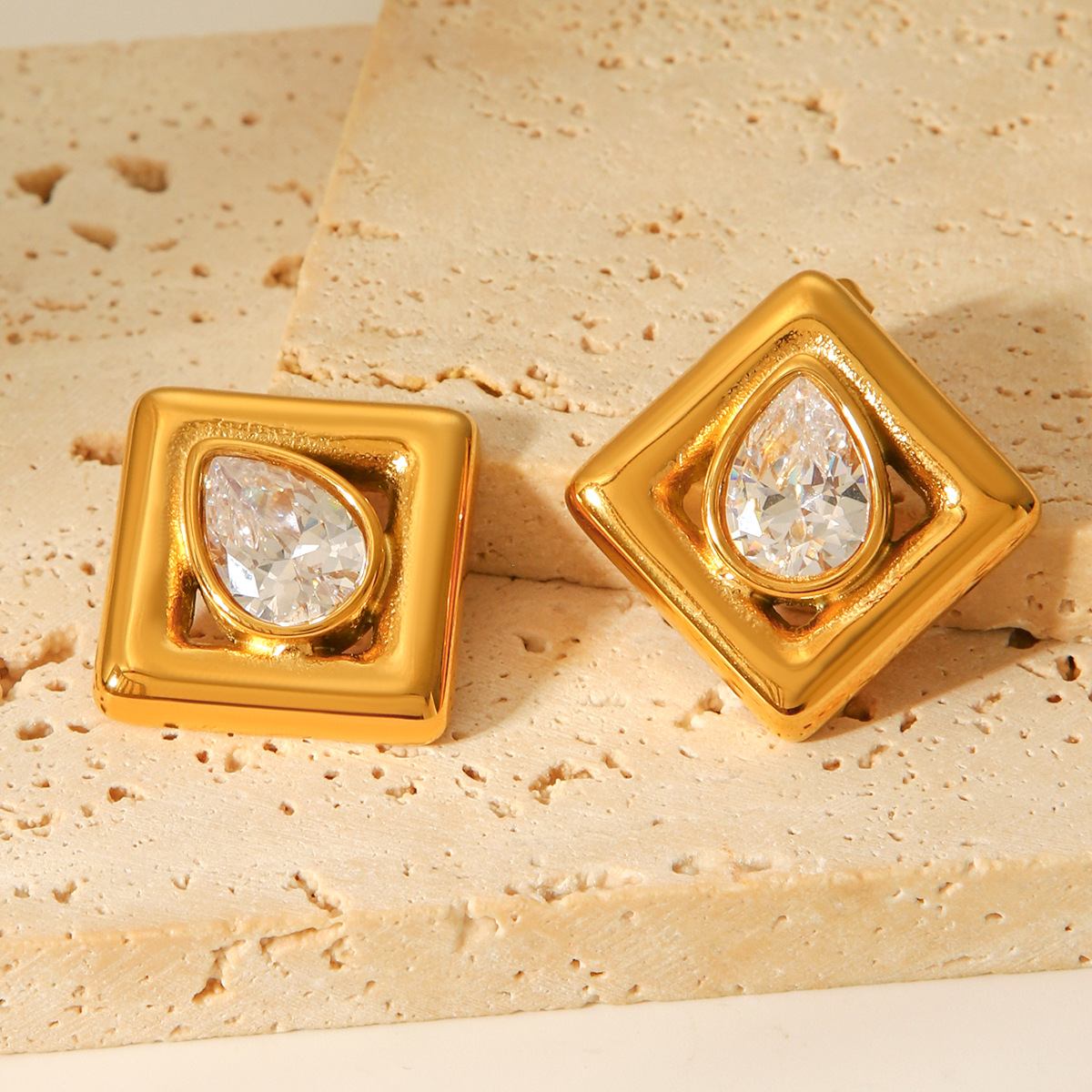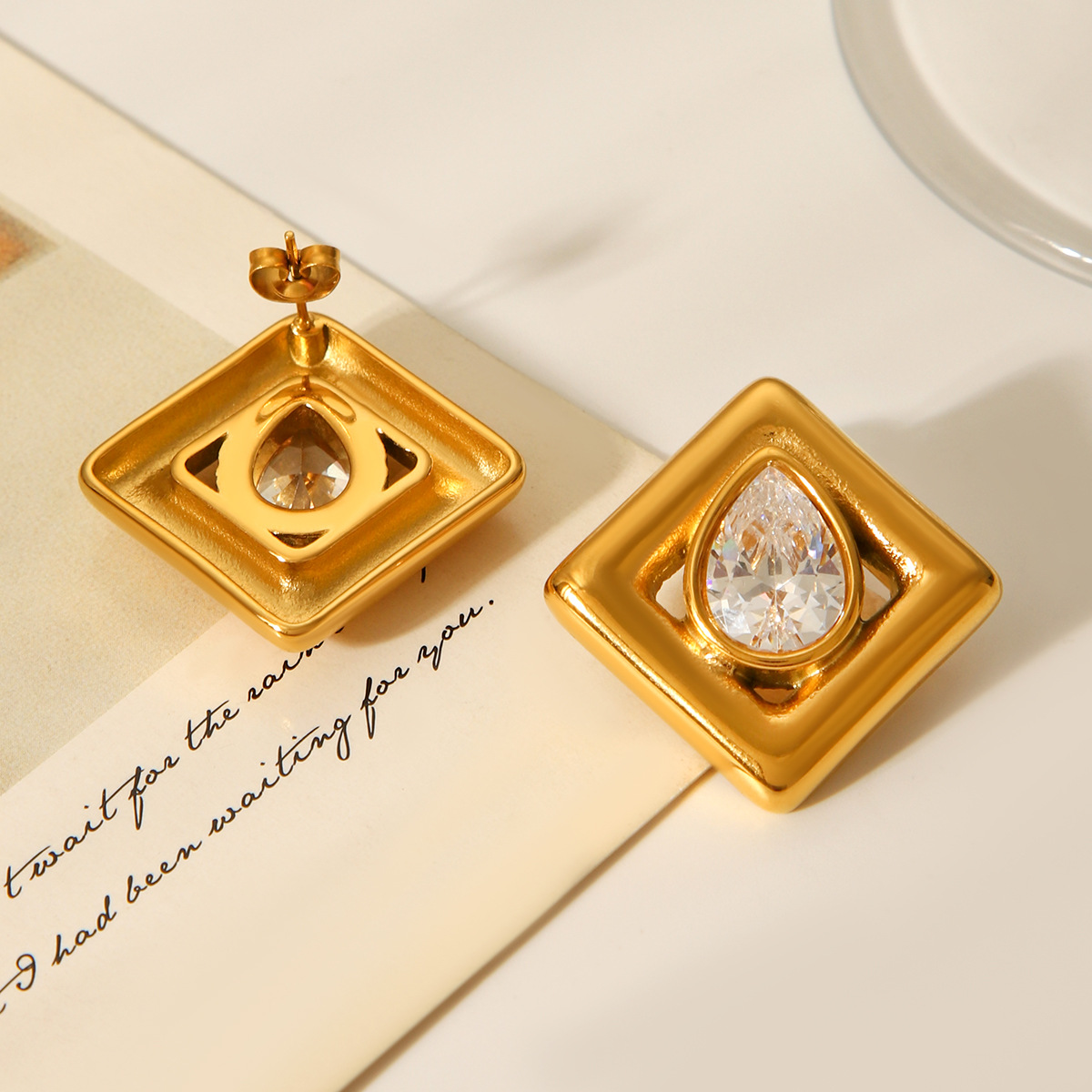 Boucle en acier inoxydable zircons cubiques, avec zircon cubique, acier inoxydable puce boucle d'oreille, cadre, plus de couleurs à choisir Vendu par lot