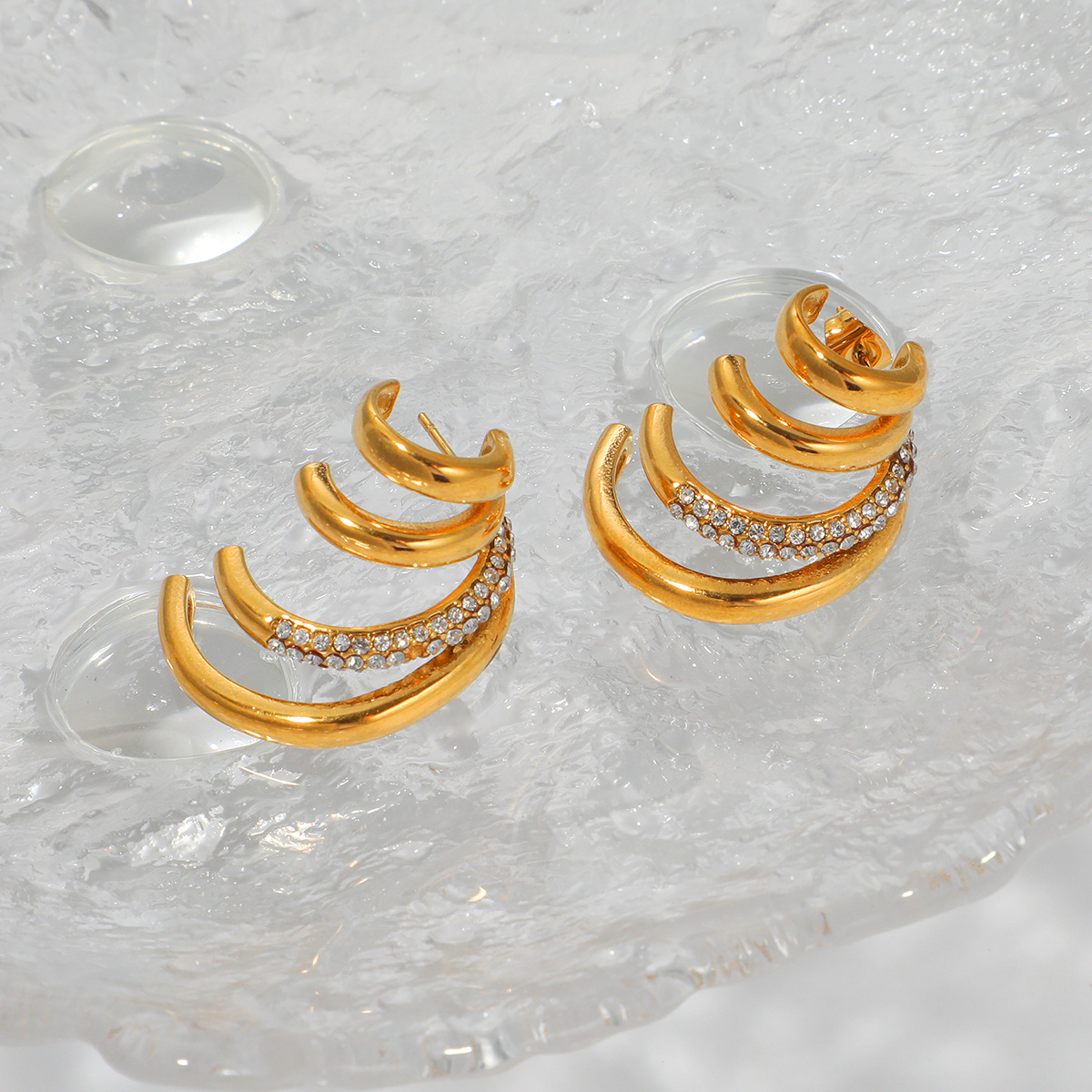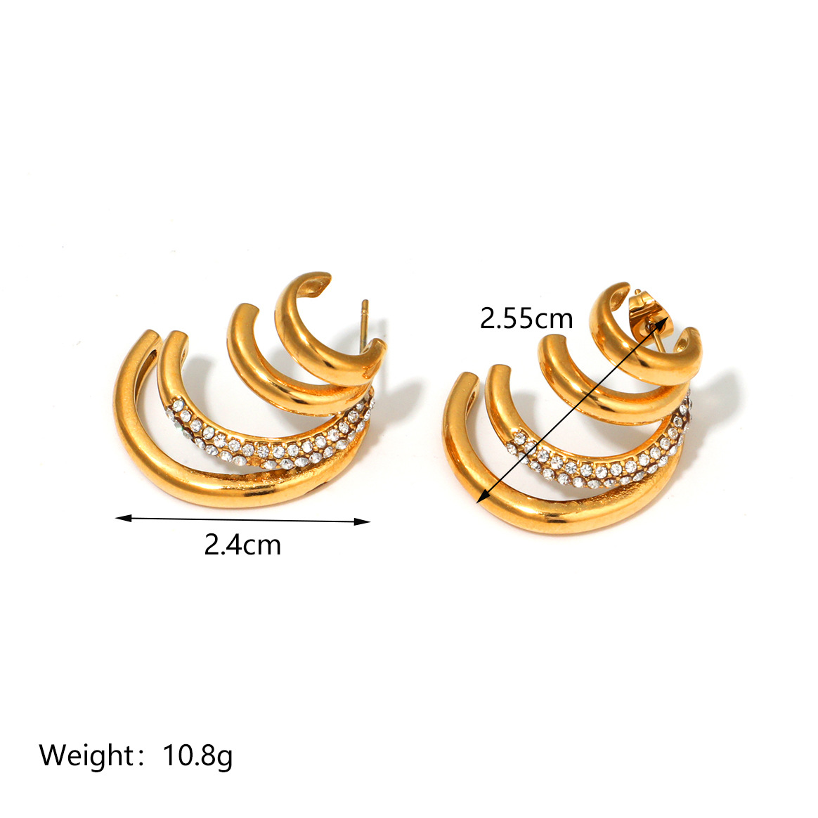 Boucle en acier inoxydable zircons cubiques, Acier inoxydable 304, Plaqué or 18K, pavé de micro zircon & pour femme & creux, Vendu par paire