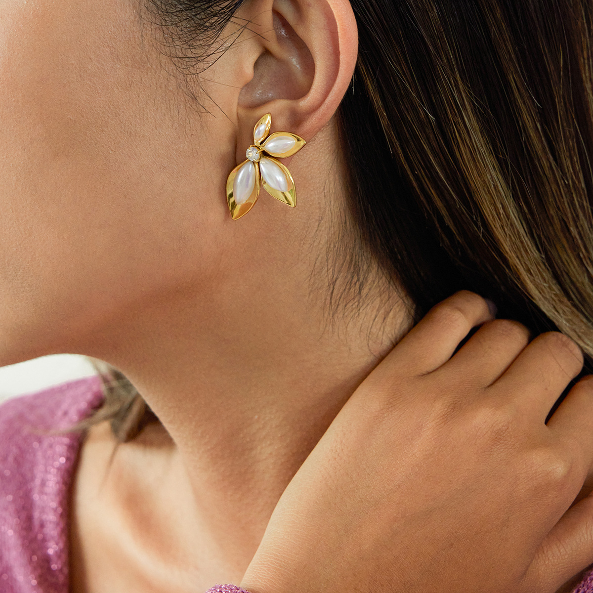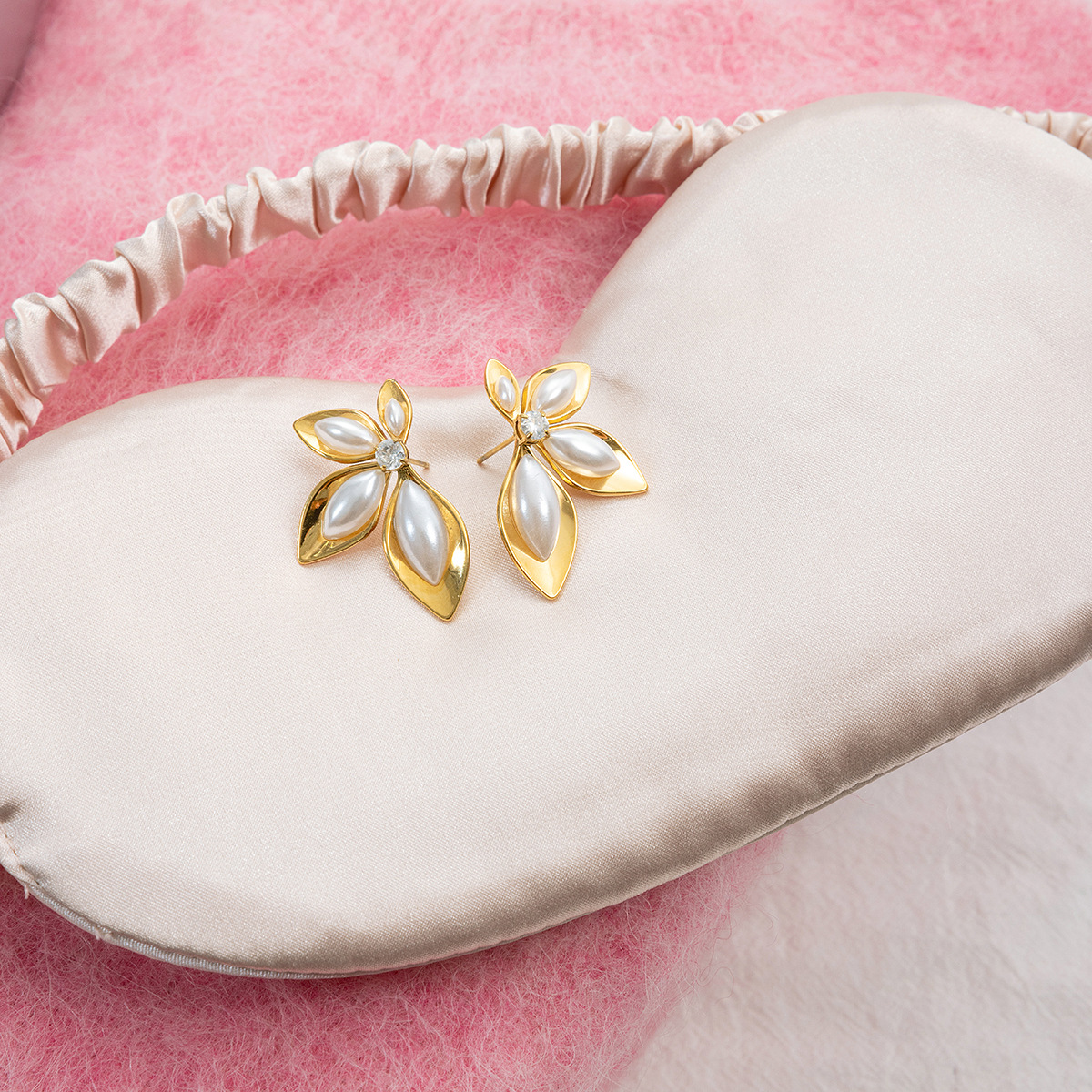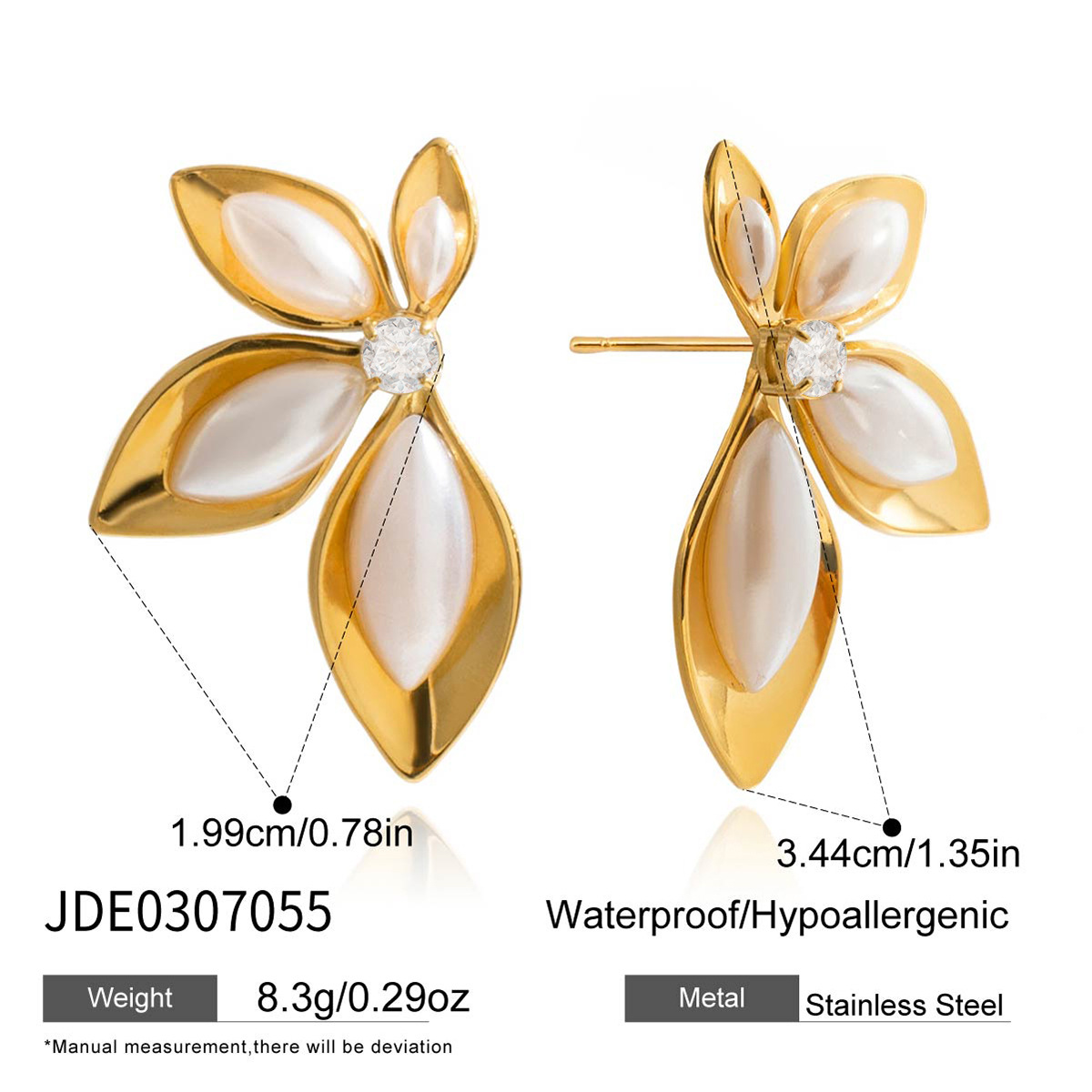 Boucle en acier inoxydable zircons cubiques, Acier inoxydable 304, avec Plastique ABS perle, Placage de couleur d'or, bijoux de mode & pavé de micro zircon, plus de couleurs à choisir, Vendu par paire