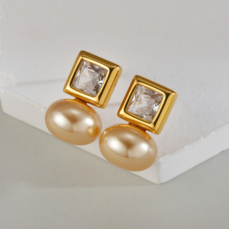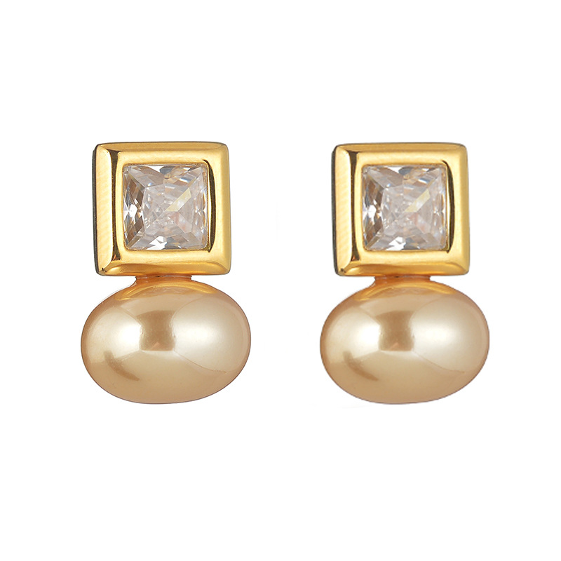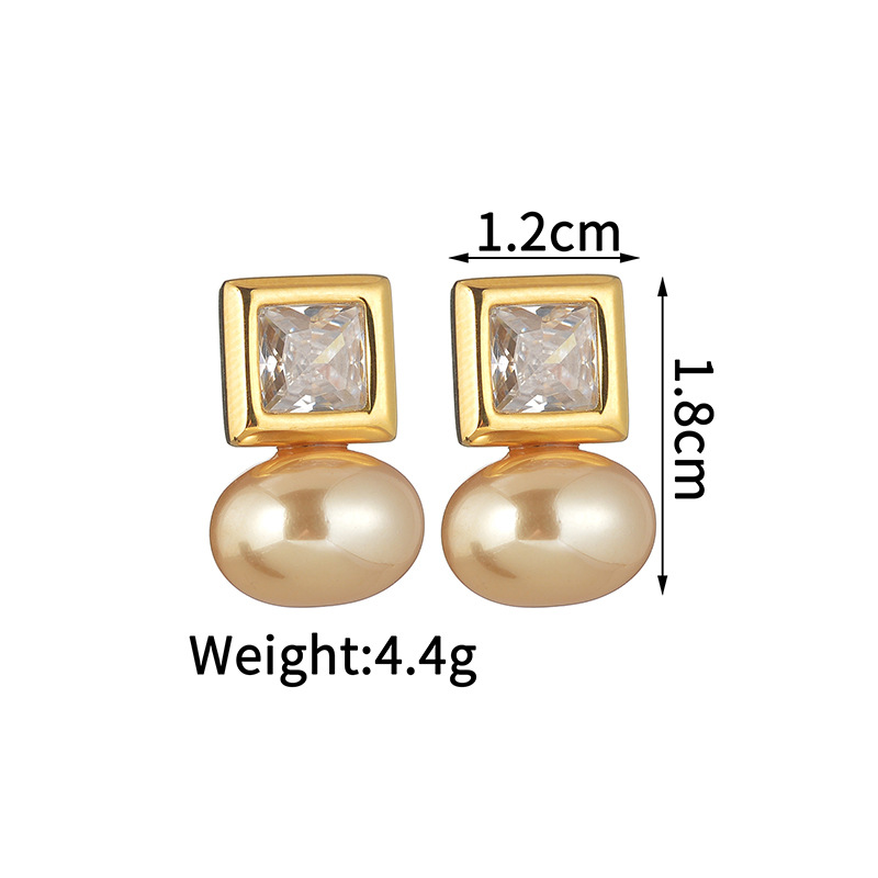 Boucle en acier inoxydable zircons cubiques, Acier inoxydable 304, avec zircon cubique & perle de plastique, Placage, bijoux de mode & pour femme, doré, Vendu par paire