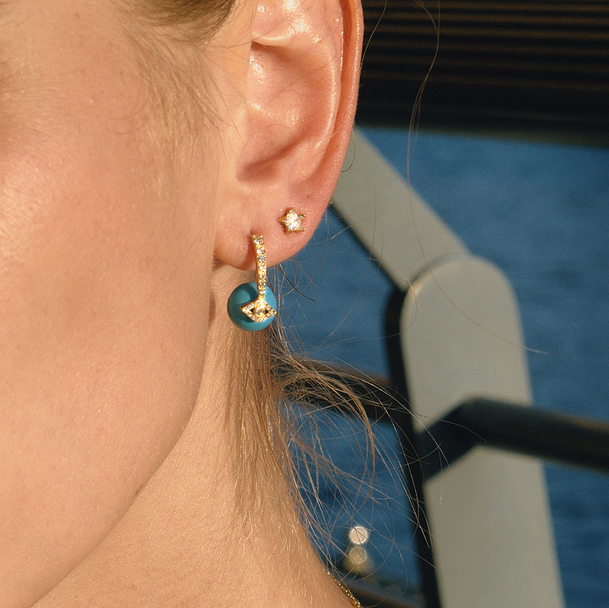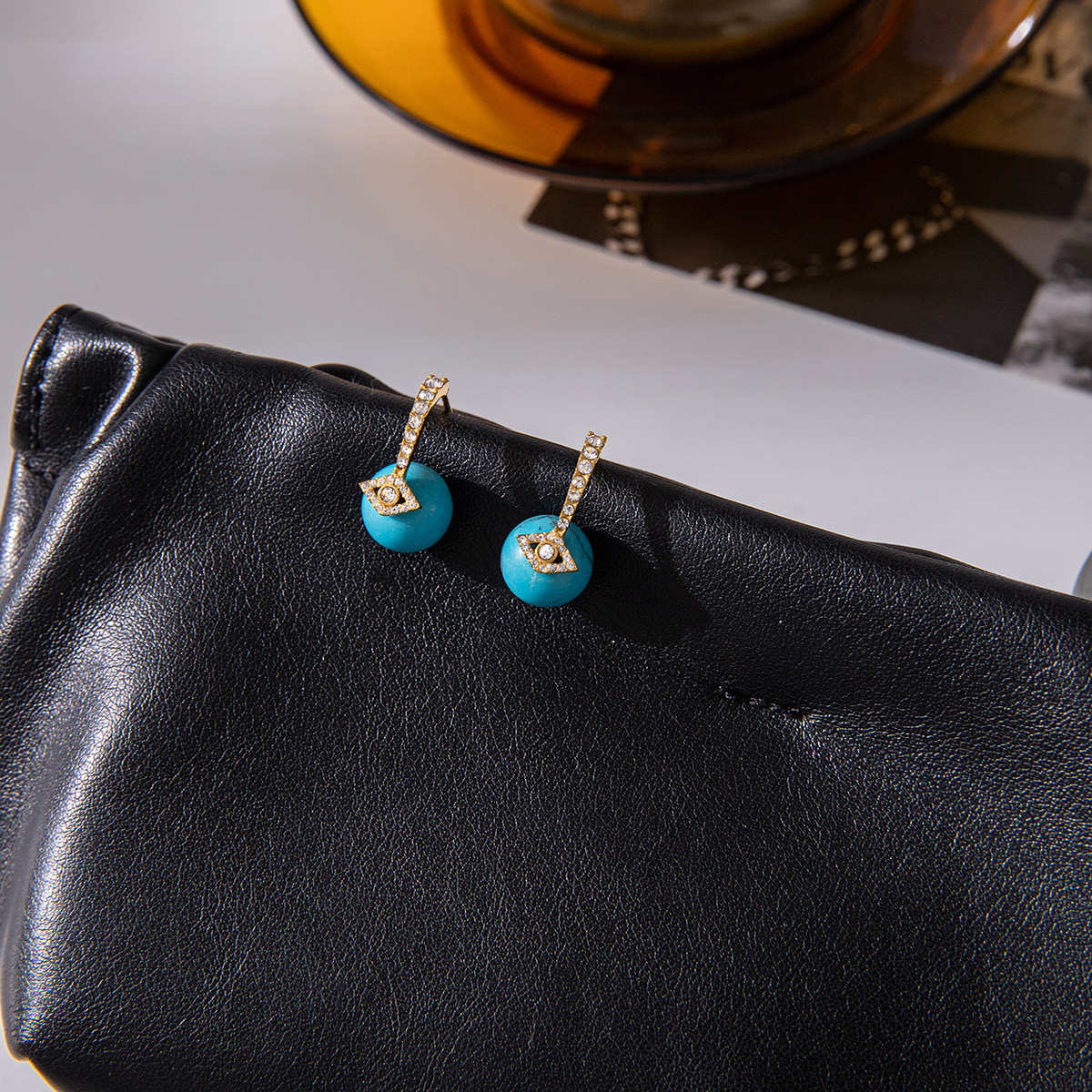 Boucle en acier inoxydable zircons cubiques, Acier inoxydable 304, avec turquoise synthétique, Plaqué or 18K, bijoux de mode & pavé de micro zircon & pour femme, Vendu par paire