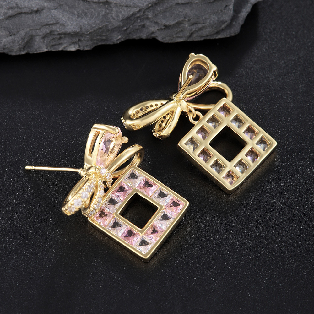 Boucle en acier inoxydable, Acier inoxydable 304, Placage, pavé de micro zircon & pour femme & creux, doré, Vendu par paire