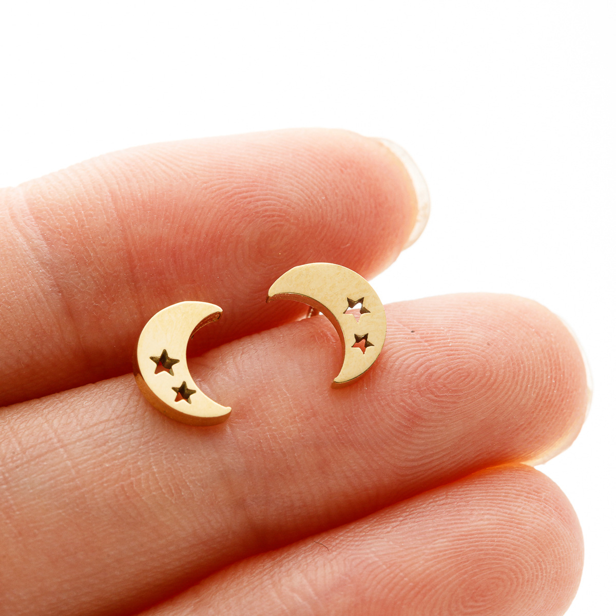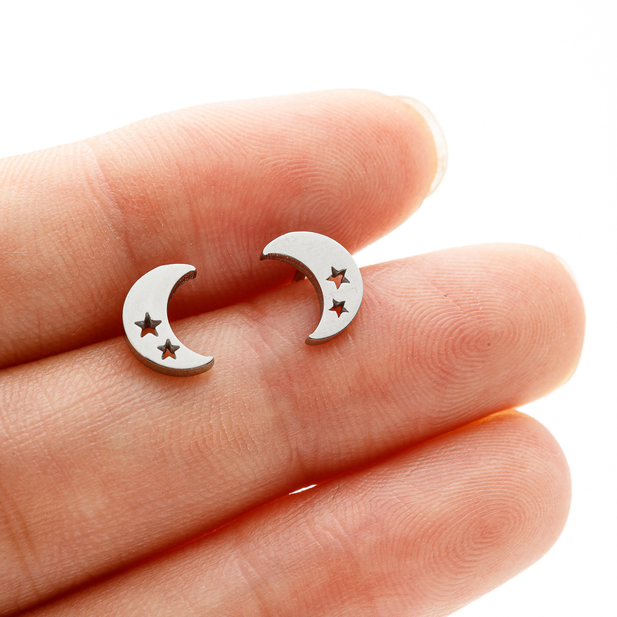 Boucle en acier inoxydable, Acier inoxydable 304, lune, Placage, bijoux de mode & unisexe & creux, plus de couleurs à choisir, Vendu par paire