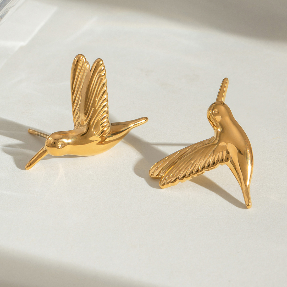 Boucle en acier inoxydable, Acier inoxydable 304, oiseau, Placage de couleur d'or, bijoux de mode, doré, Vendu par paire