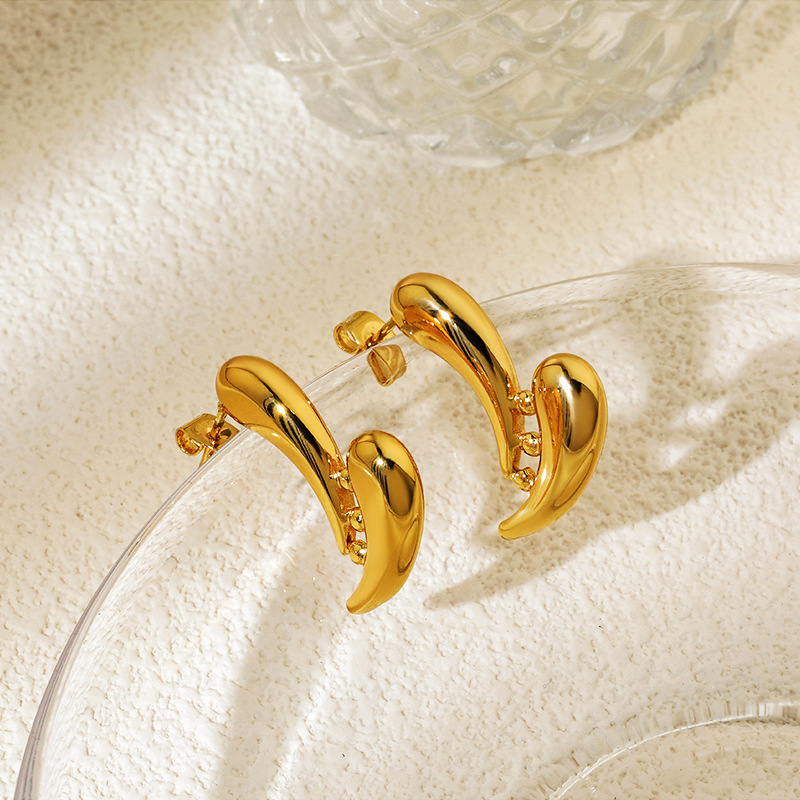 Boucle en acier inoxydable, Acier inoxydable 304, larme, Plaqué or 18K, bijoux de mode & pour femme, Vendu par paire