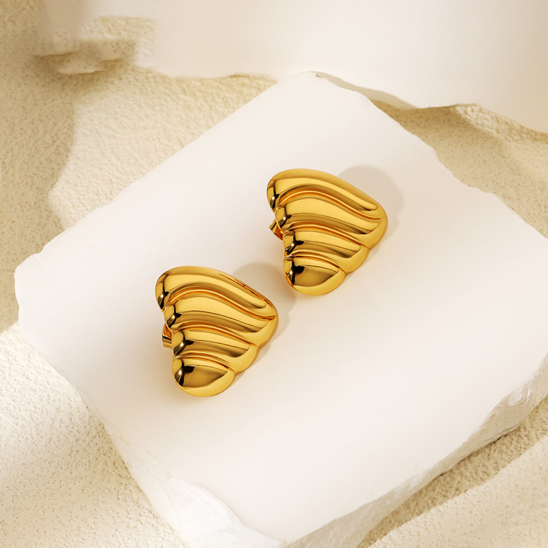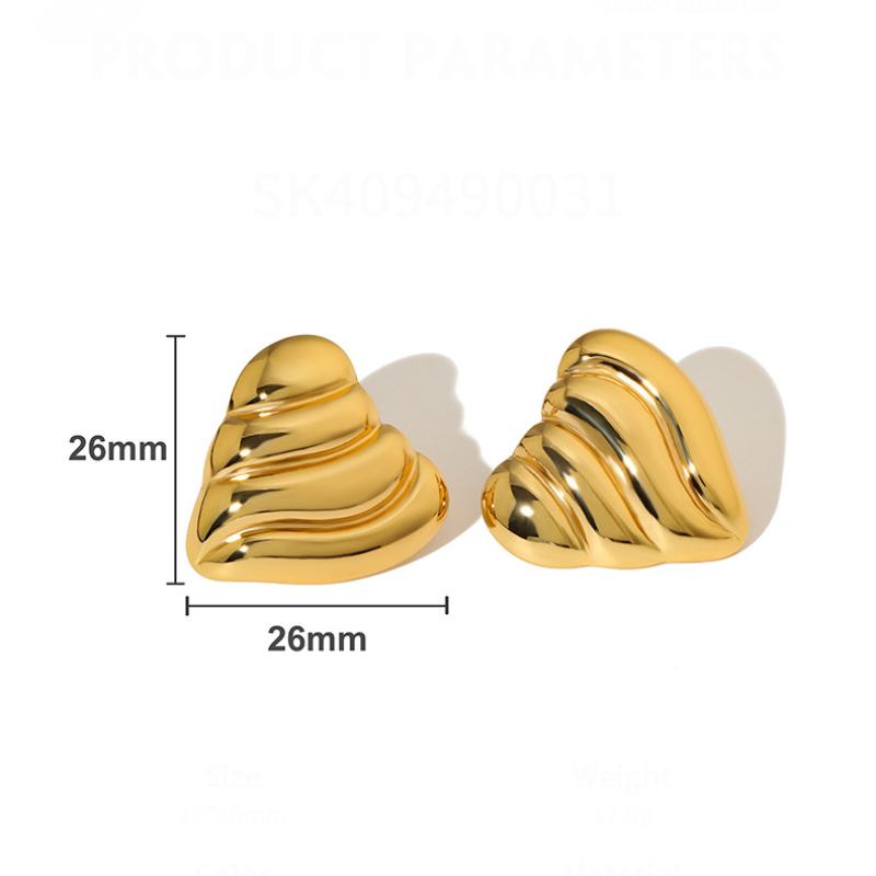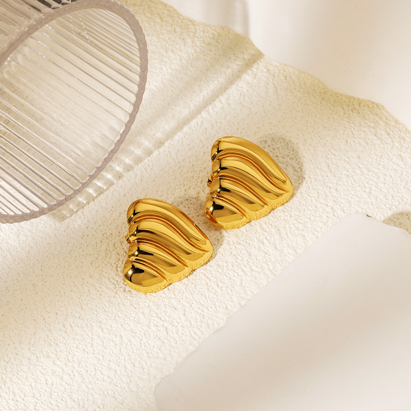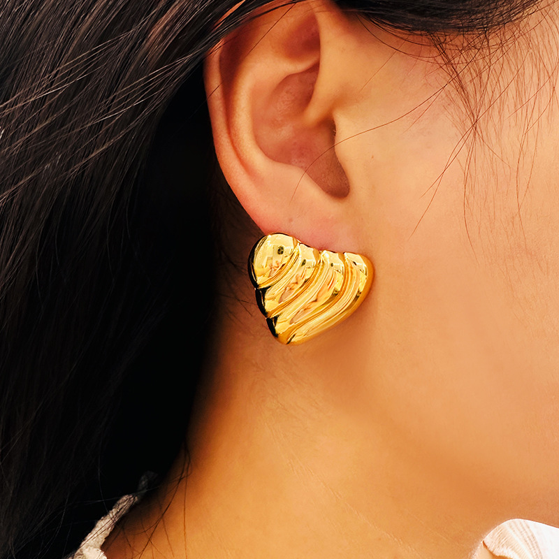 Boucle en acier inoxydable, Acier inoxydable 304, coeur, Plaqué or 18K, bijoux de mode & pour femme, Vendu par paire