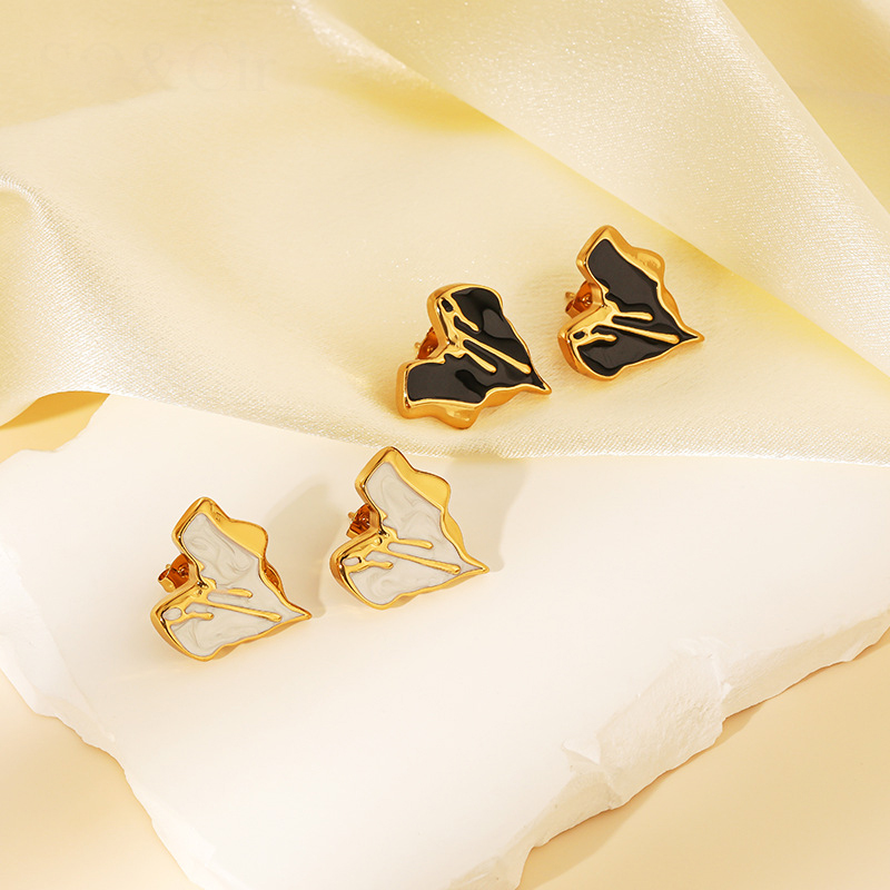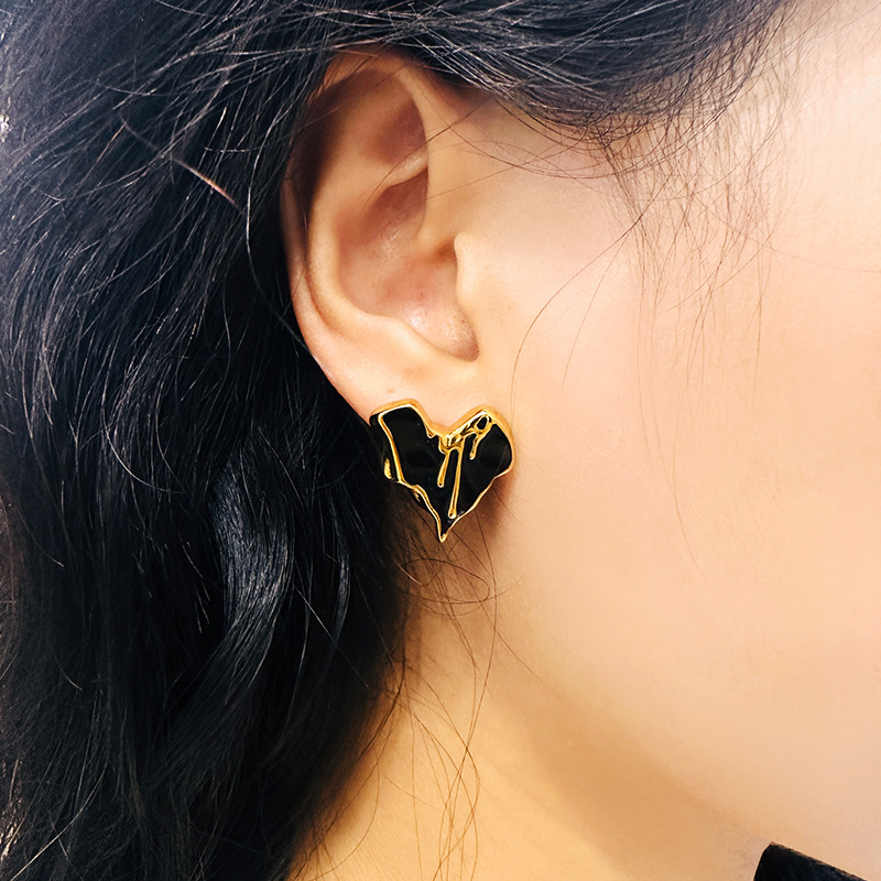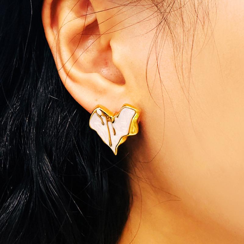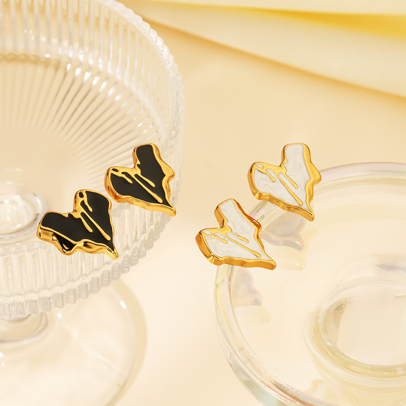 Boucle en acier inoxydable, Acier inoxydable 304, coeur, Placage de couleur d'or, bijoux de mode & pour femme & émail, plus de couleurs à choisir, Vendu par paire