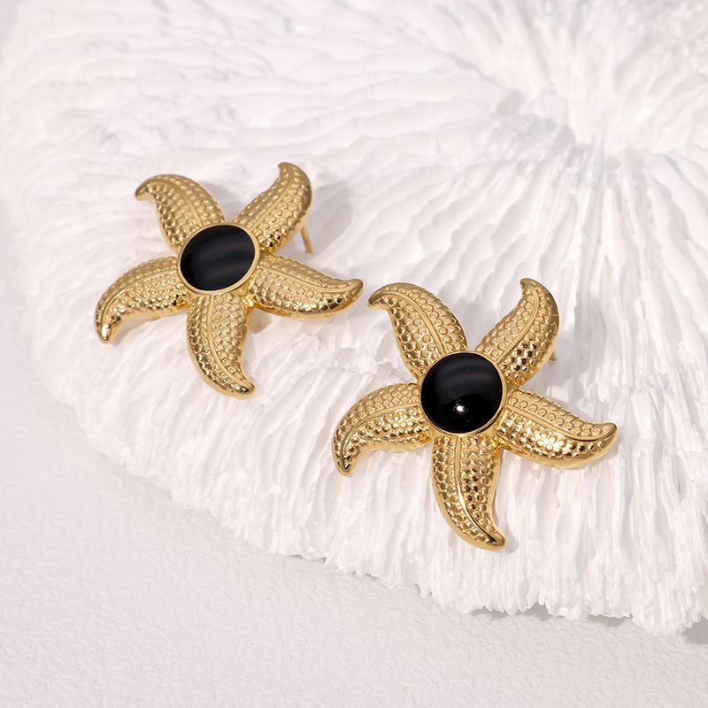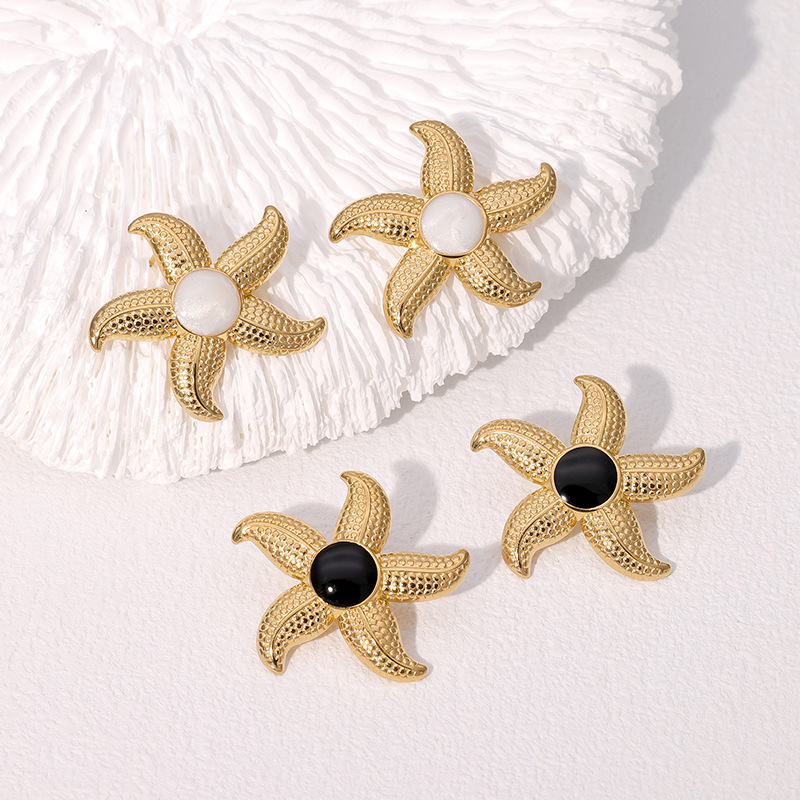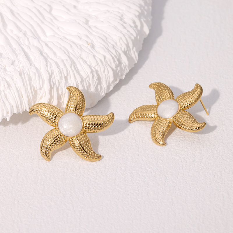Boucle en acier inoxydable, Acier inoxydable 304, avec Acrylique, étoile de mer, Placage de couleur d'or, bijoux de mode & pour femme, plus de couleurs à choisir, Vendu par paire