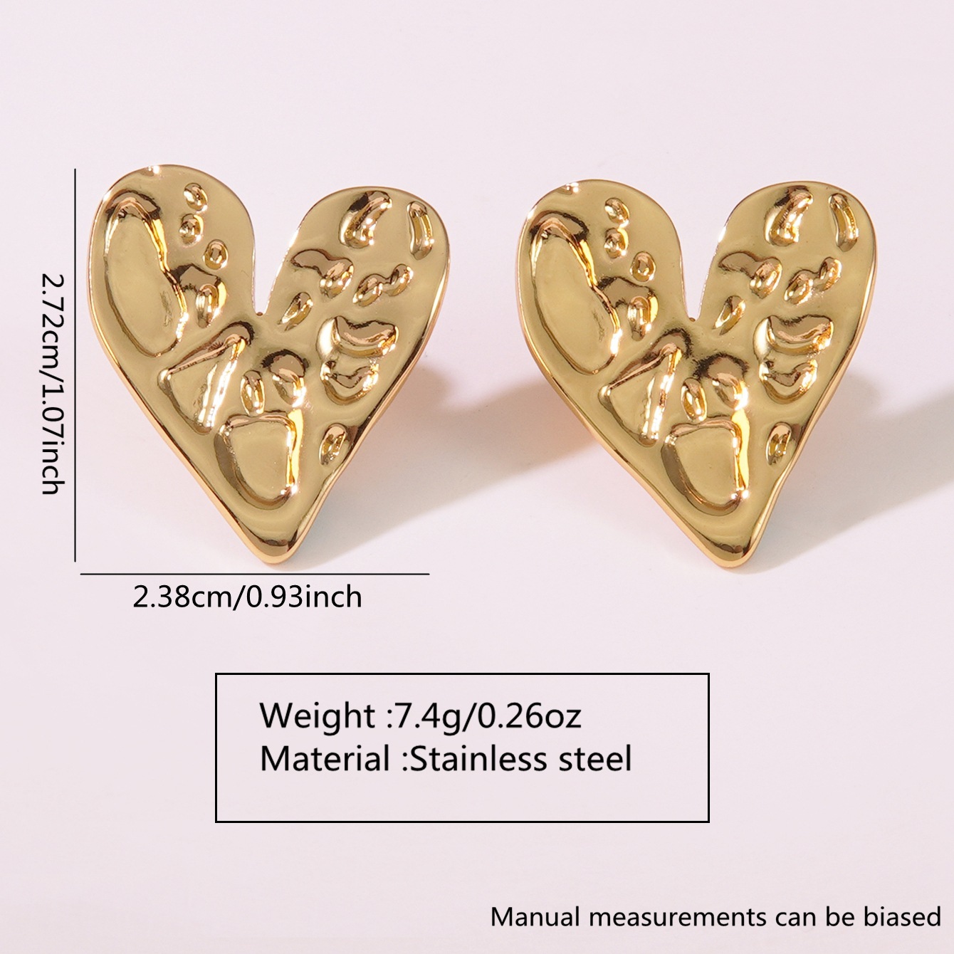 Boucle en acier inoxydable, acier inoxydable puce boucle d'oreille, coeur Vendu par paire