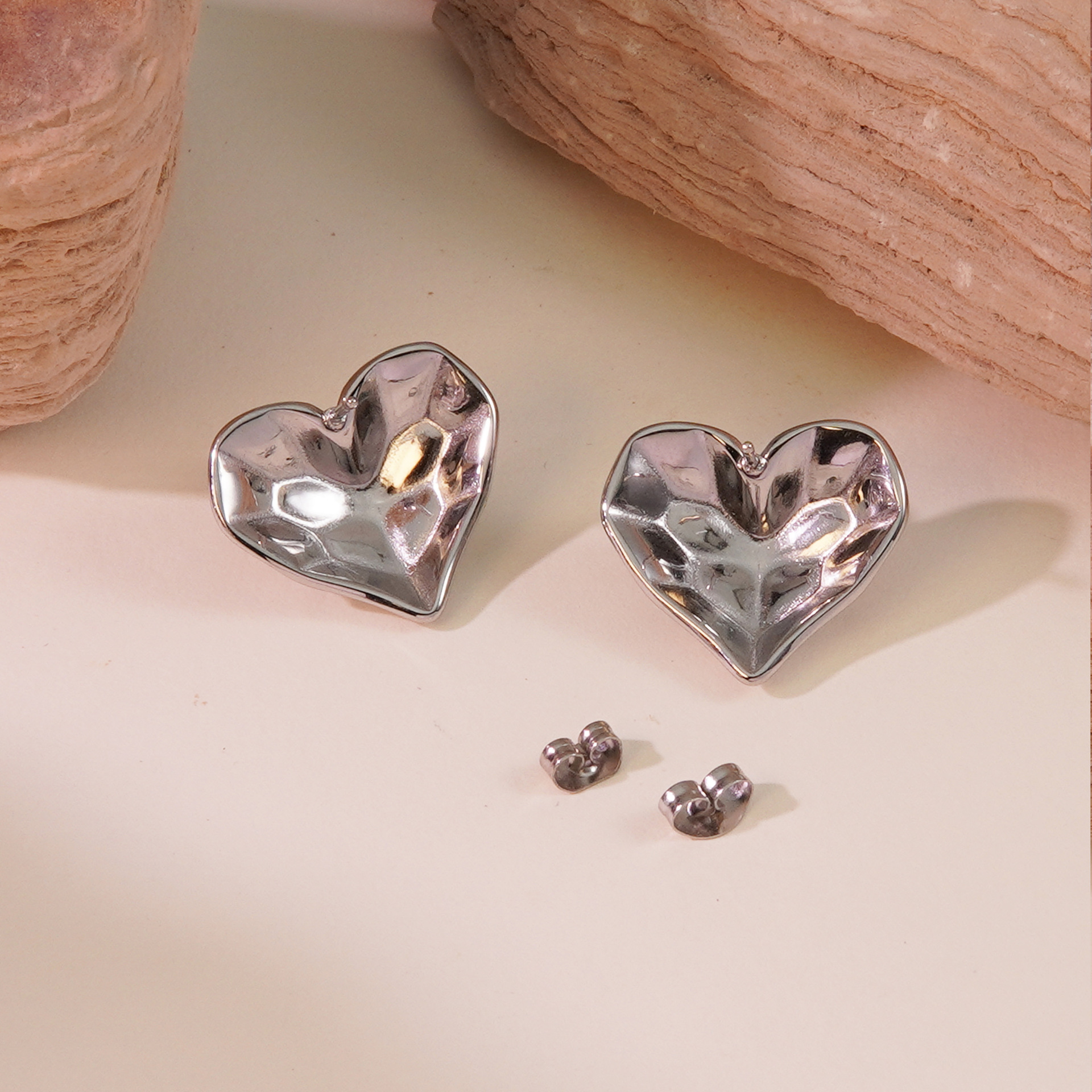 Boucle en acier inoxydable, acier inoxydable puce boucle d'oreille, coeur Vendu par paire