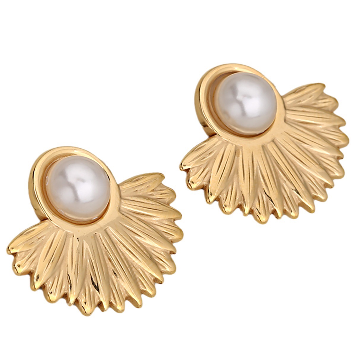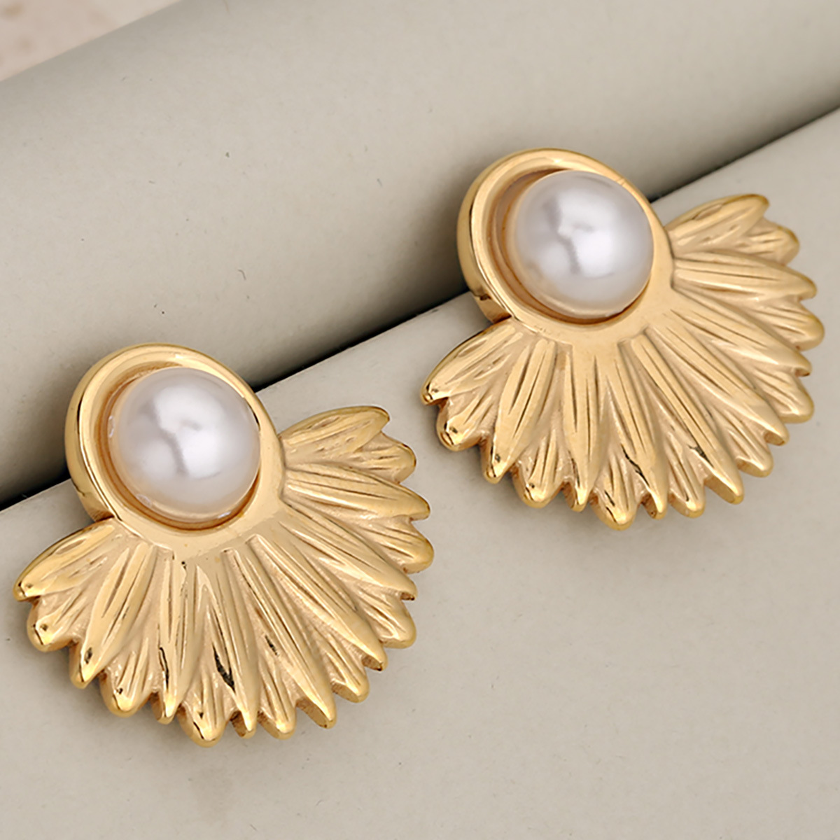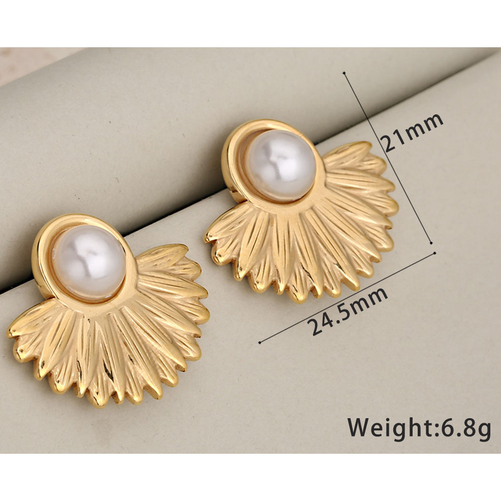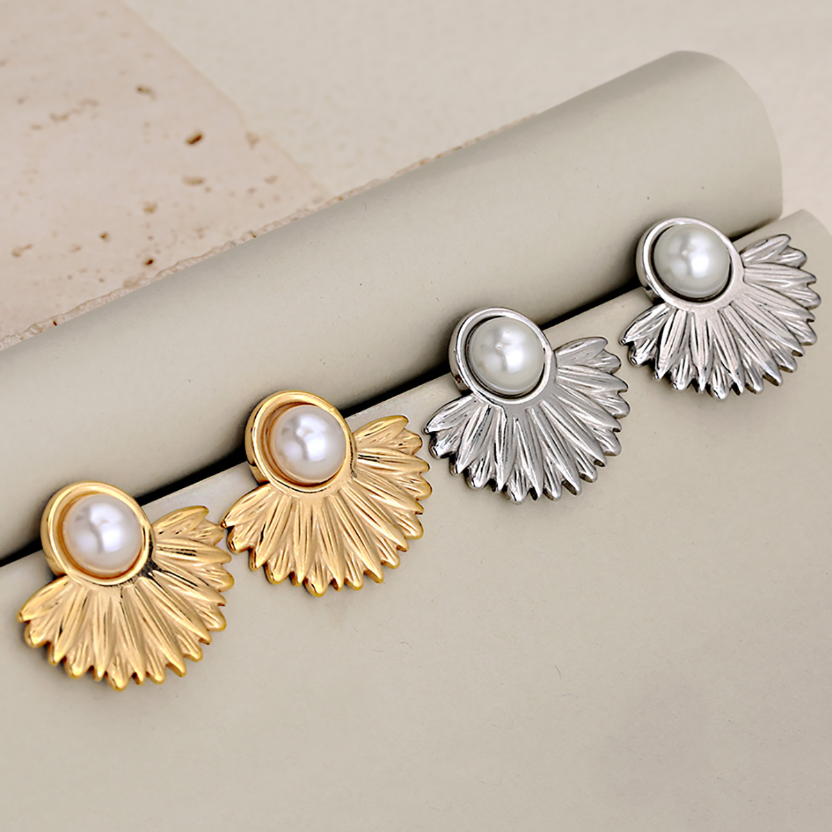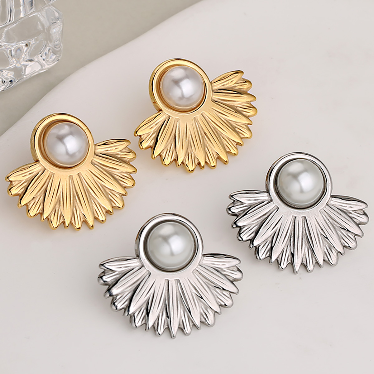 Boucle en acier inoxydable, Acier inoxydable 304, avec perle de plastique, éventail, Placage, bijoux de mode & pour femme, plus de couleurs à choisir, Vendu par paire