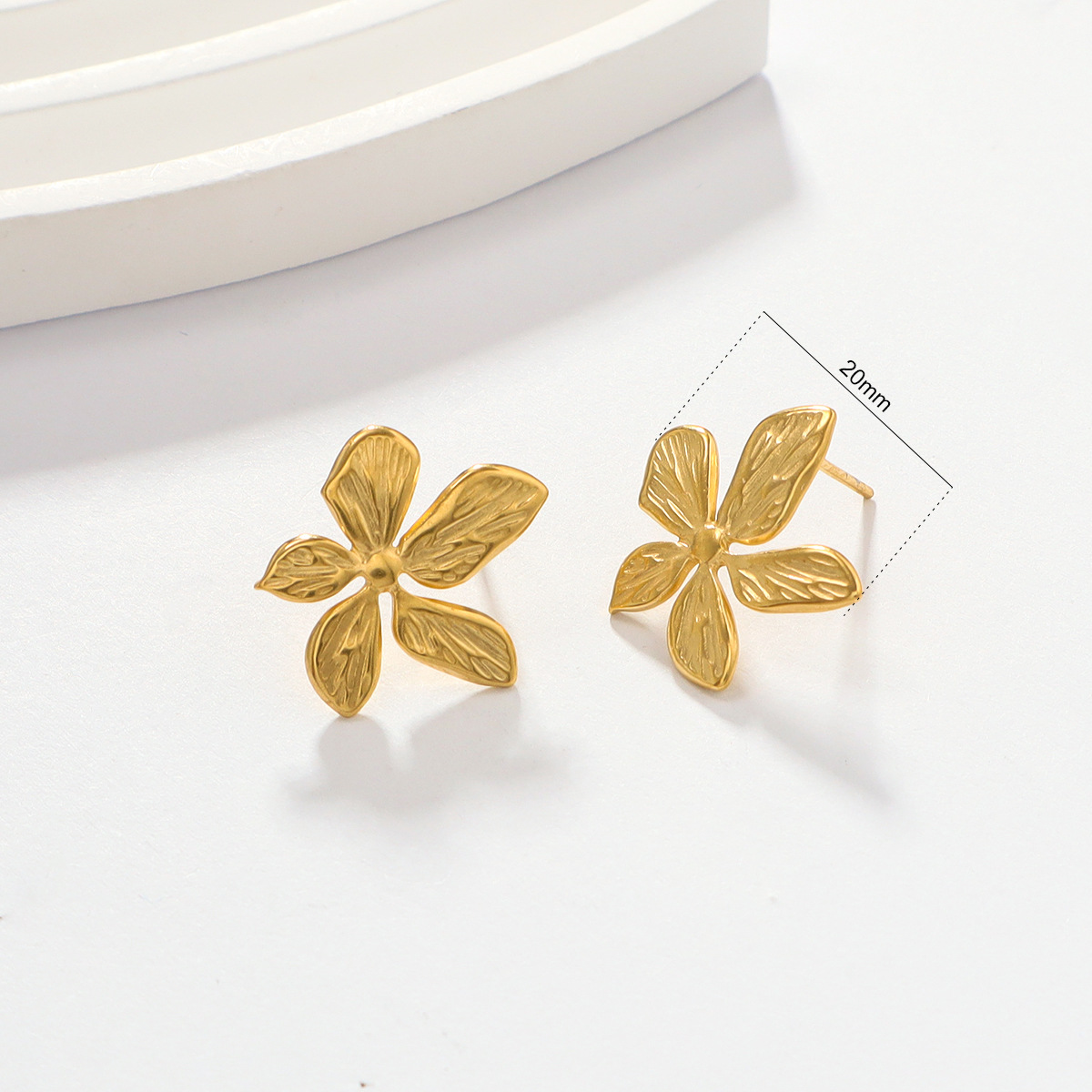 Boucle en acier inoxydable, Acier inoxydable 304, fleur, Placage de couleur d'or, bijoux de mode, doré, 20mm, Vendu par paire