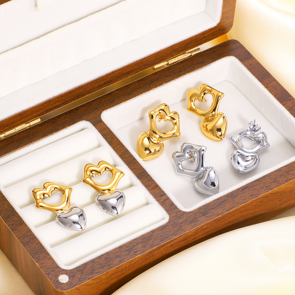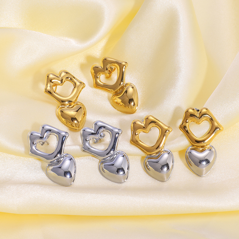 Boucle en acier inoxydable, acier inoxydable puce boucle d'oreille, coeur Vendu par paire