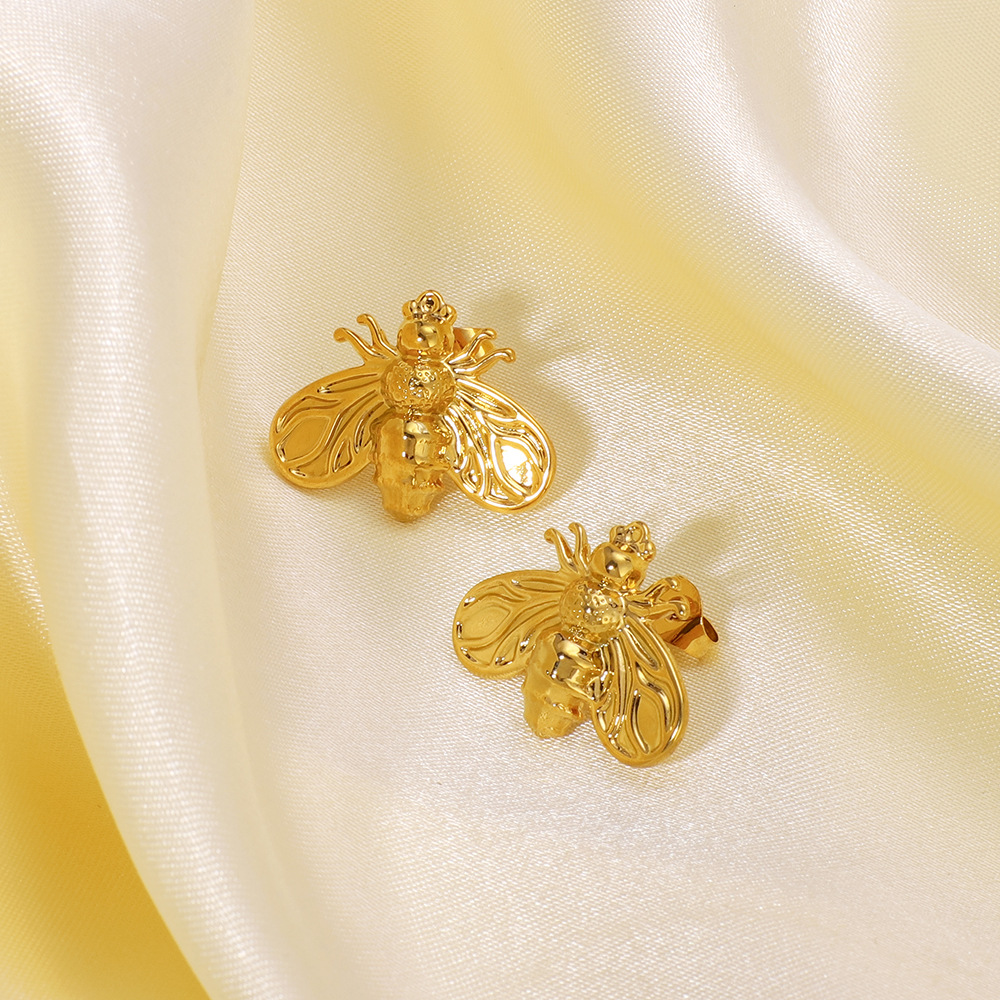 Boucle en acier inoxydable, Acier inoxydable 304, abeille, Placage de couleur d'or, bijoux de mode, doré, 22x17mm, Vendu par paire