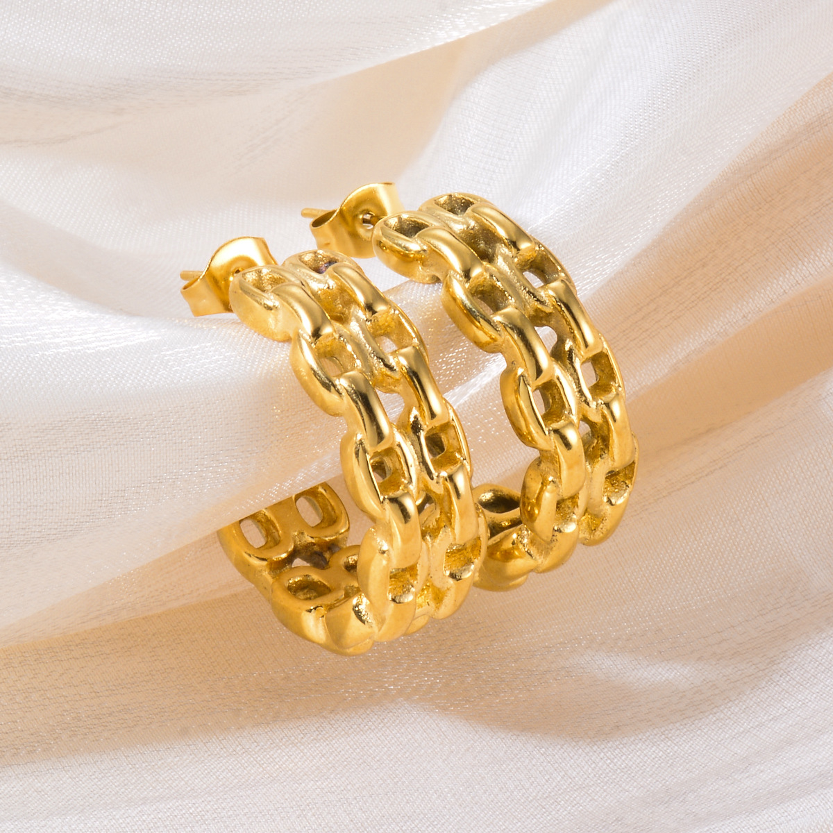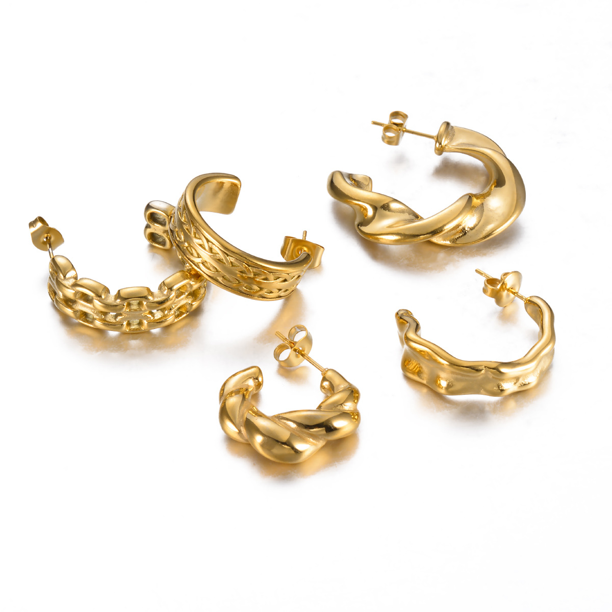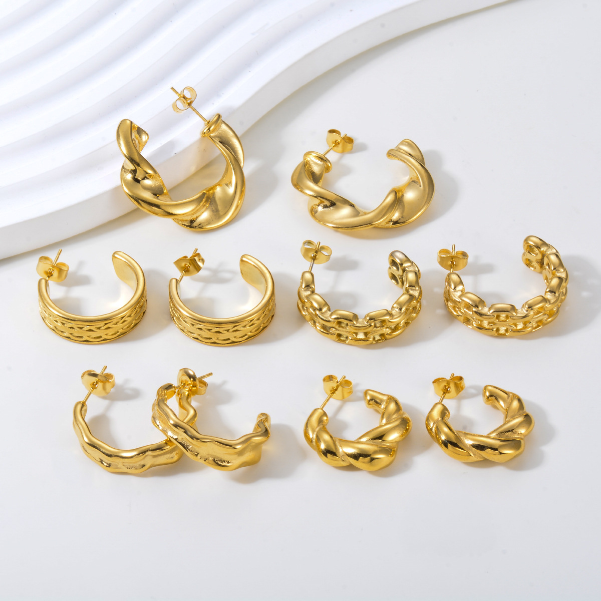 Boucle en acier inoxydable, Acier inoxydable 304, Placage de couleur d'or, styles différents pour le choix & pour femme, plus de couleurs à choisir, Vendu par paire