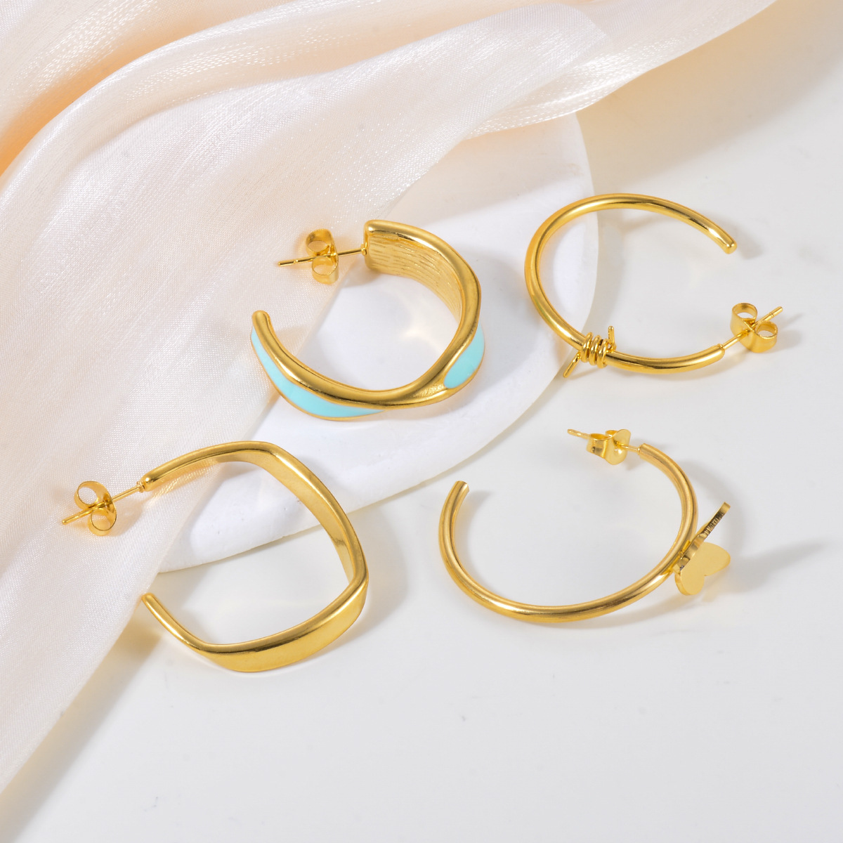 Boucle en acier inoxydable, Acier inoxydable 304, Placage de couleur d'or, styles différents pour le choix & pour femme & émail, plus de couleurs à choisir, Vendu par paire