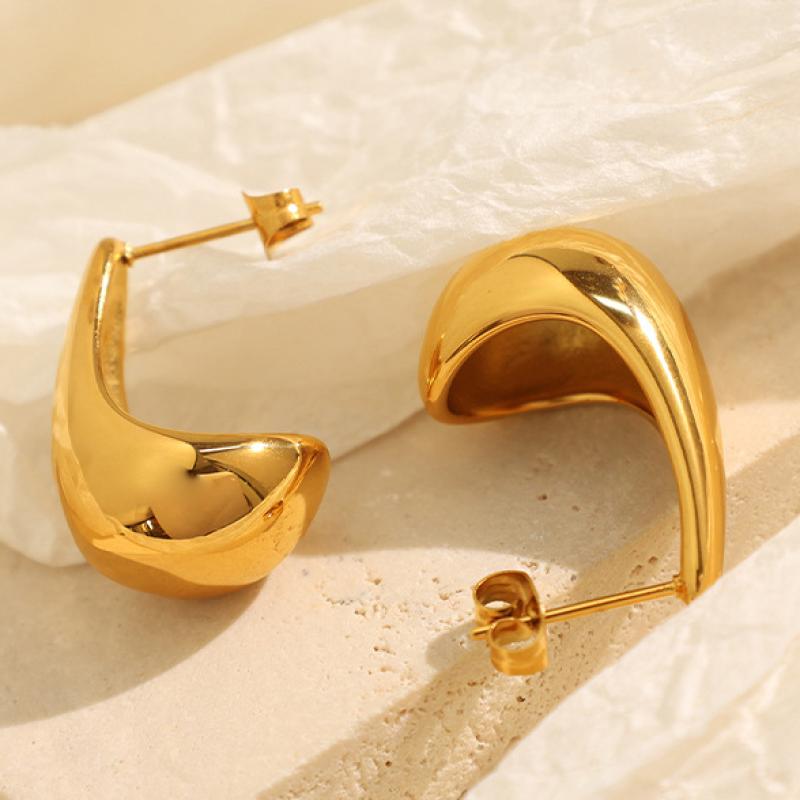 Boucle en acier inoxydable, Acier inoxydable 304, larme, Plaqué or 18K, bijoux de mode & pour femme, Vendu par paire